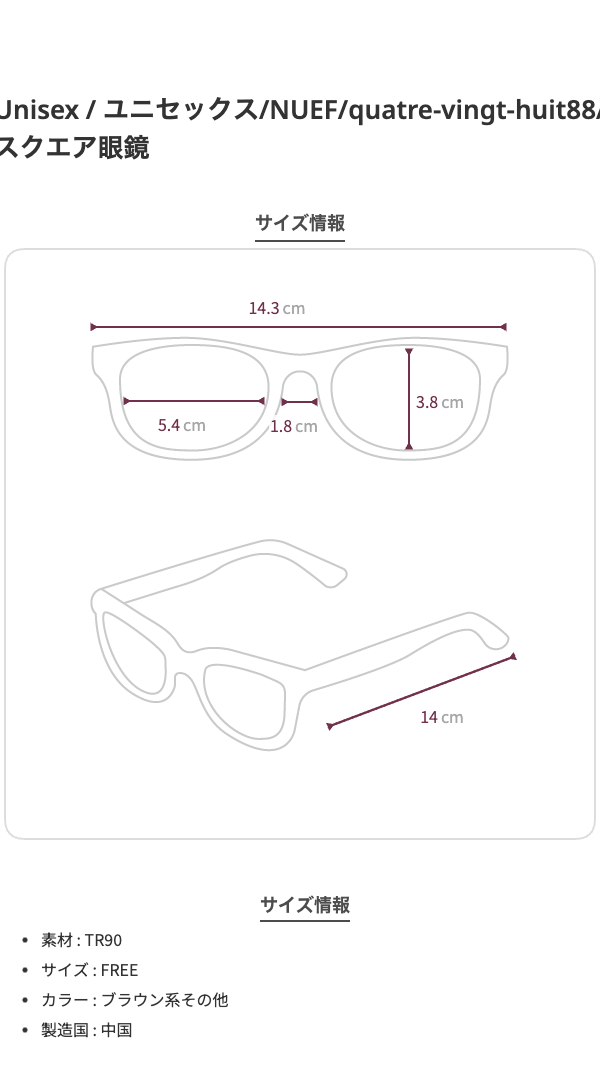 - テンプル内のサイズ情報と実測は異なる場合があります。