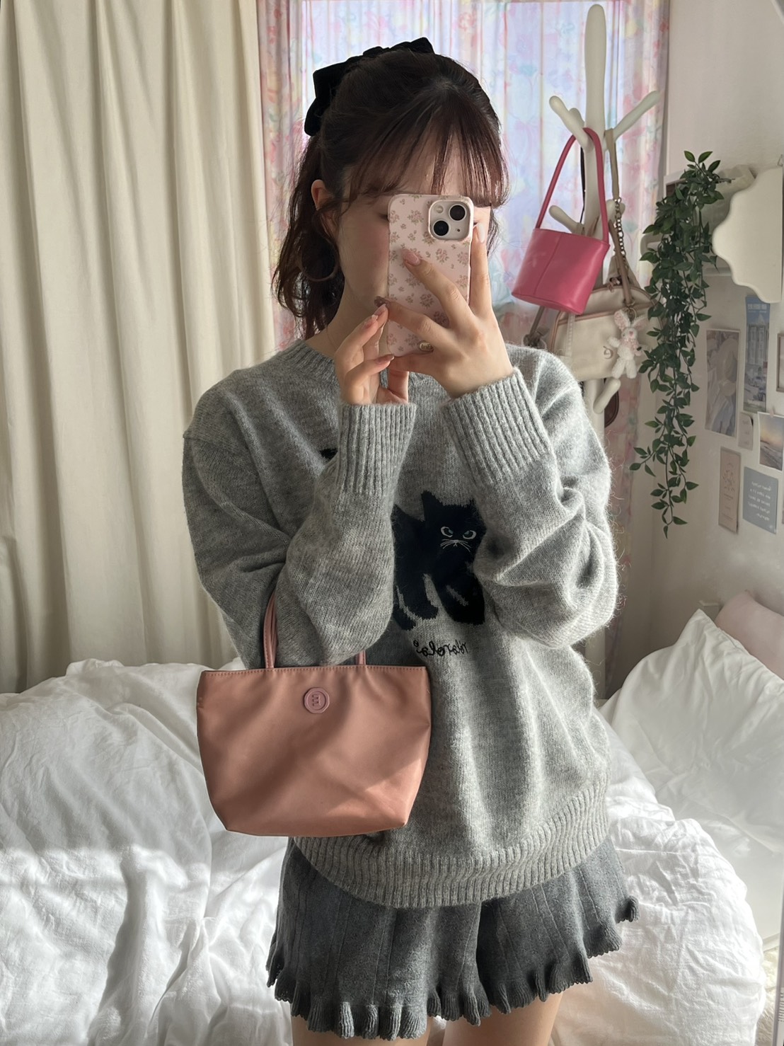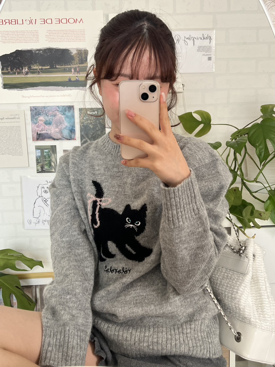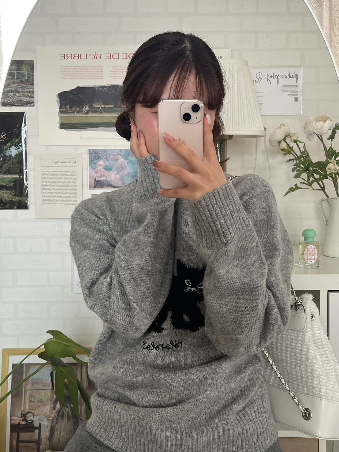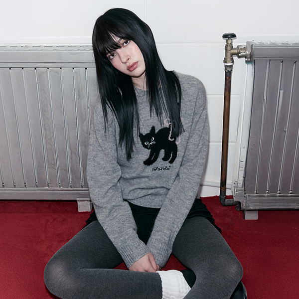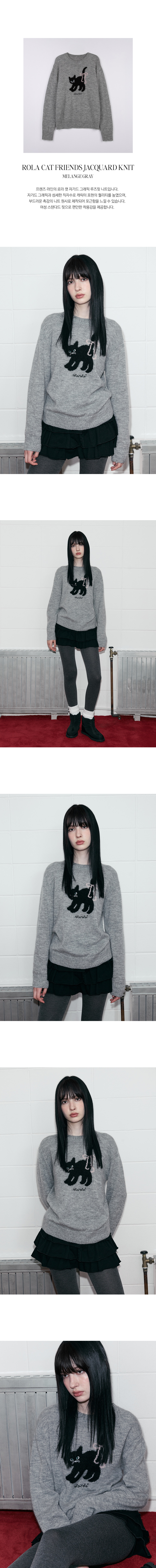 [tokki x rolarola] ROLA CAT FRIENDS JACQUARD KNIT MELANGE GRAY