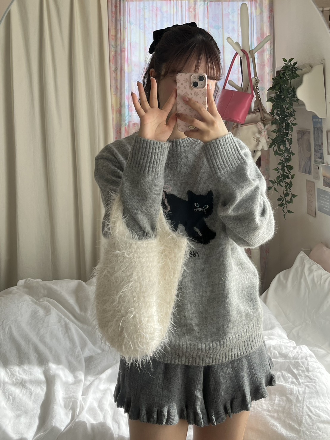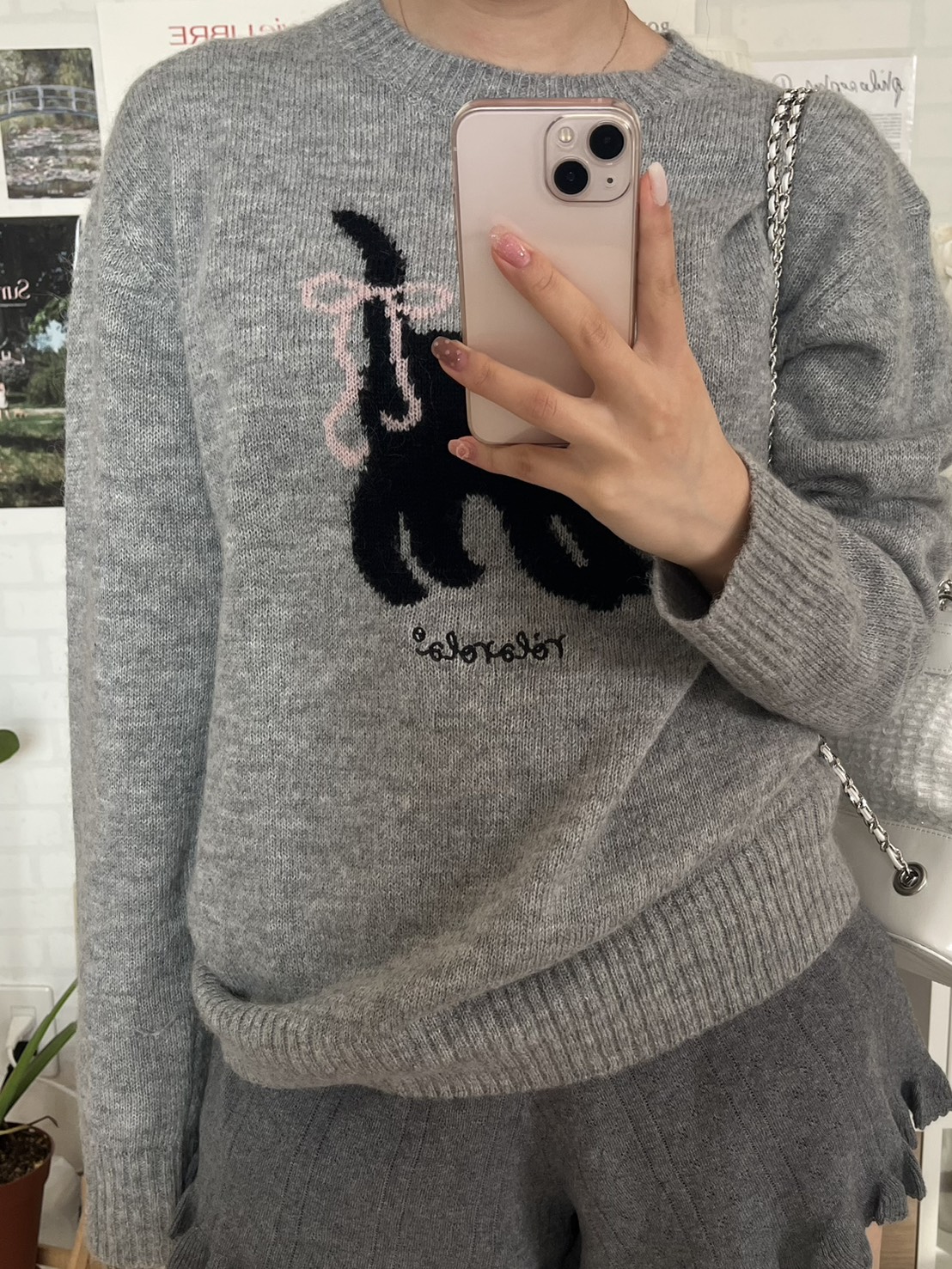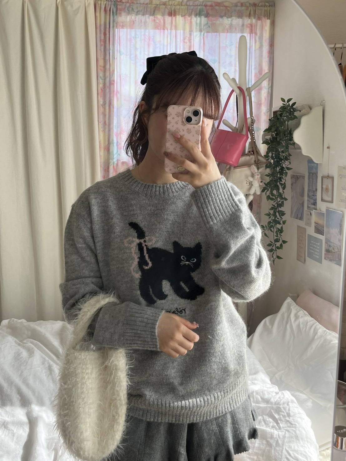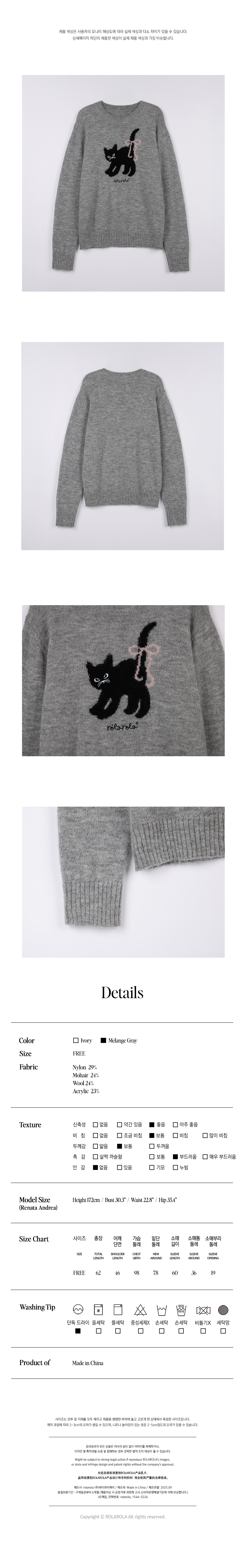 [tokki x rolarola] ROLA CAT FRIENDS JACQUARD KNIT MELANGE GRAY