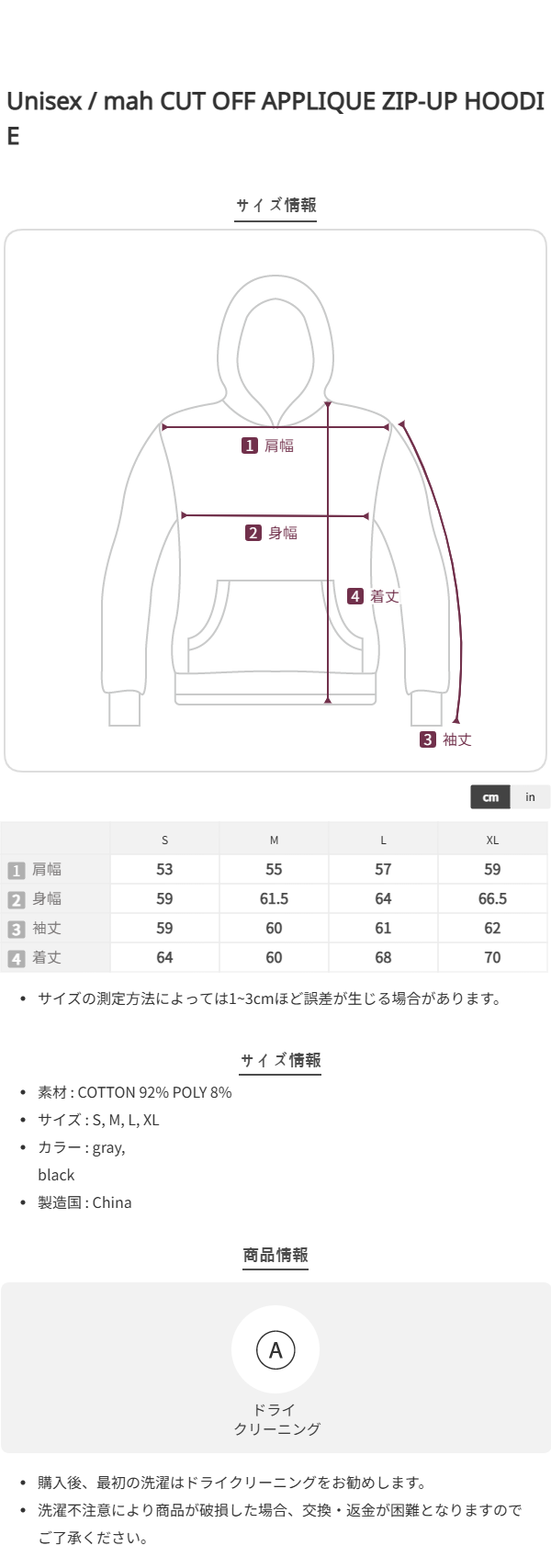mah CUT OFF APPLIQUE ZIP-UP HOODIE[BLACK]