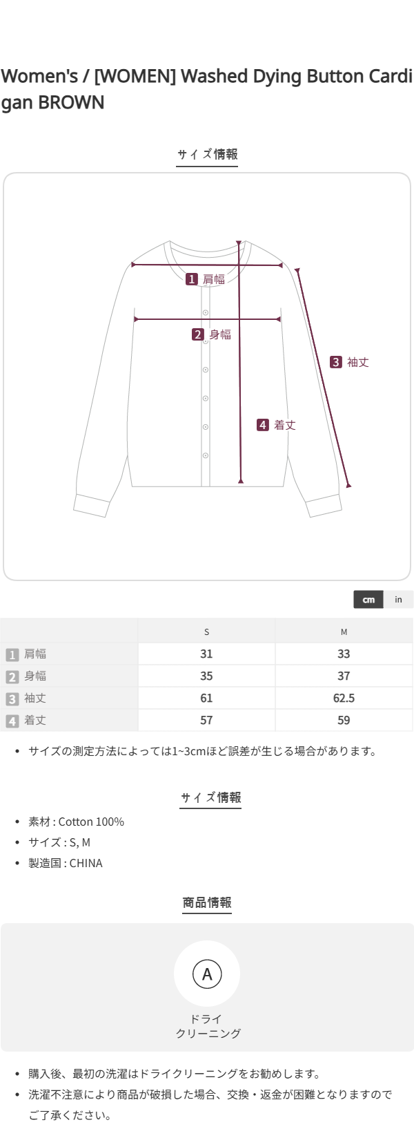 [WOMEN] Washed Dying Button Cardigan BROWN