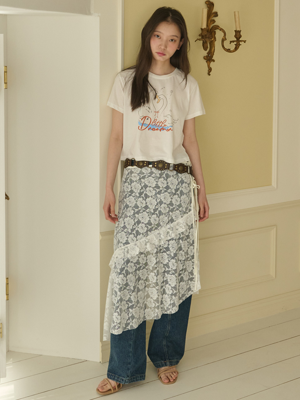 Rosy Lace Ruffle Layered Skirt_White