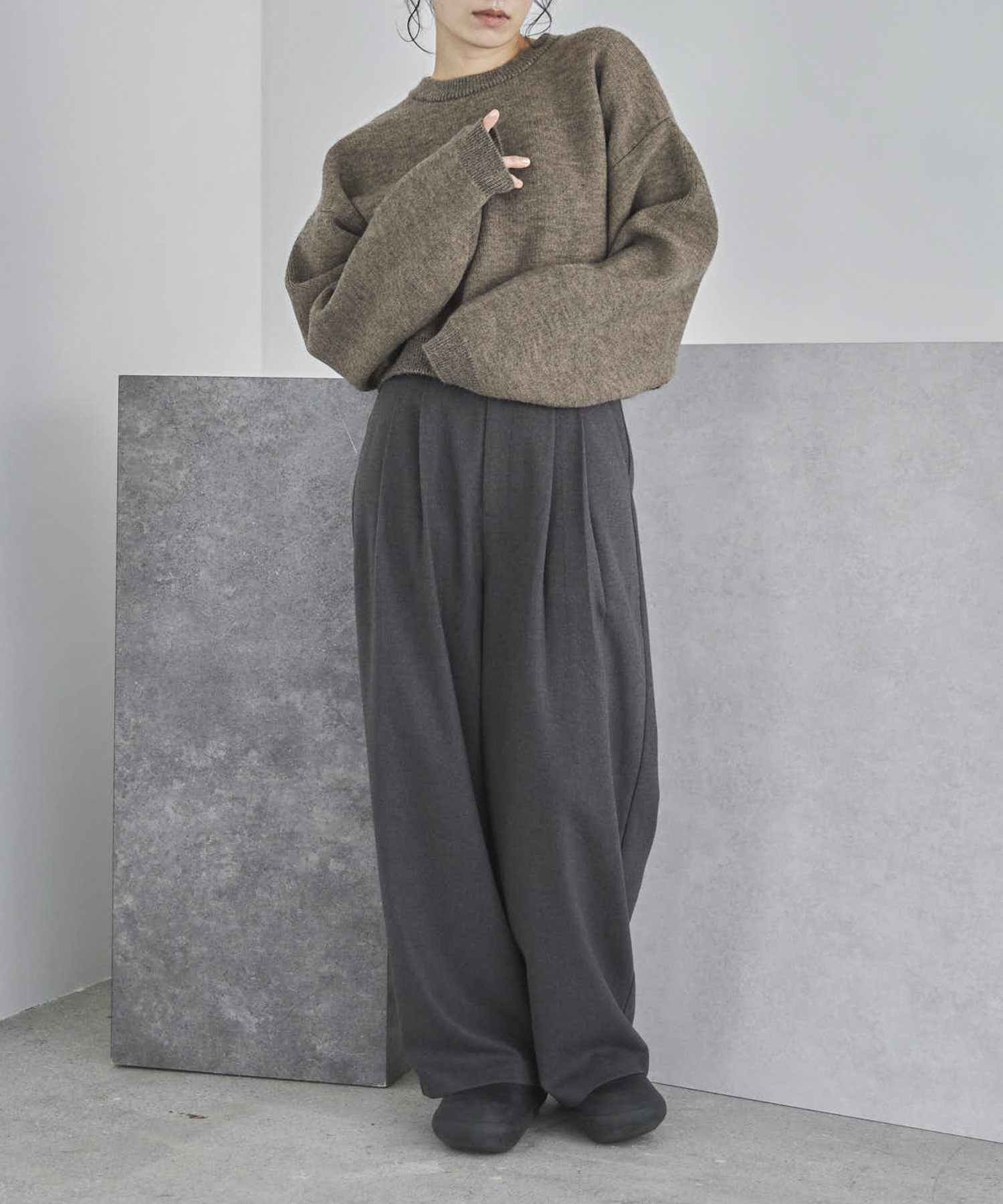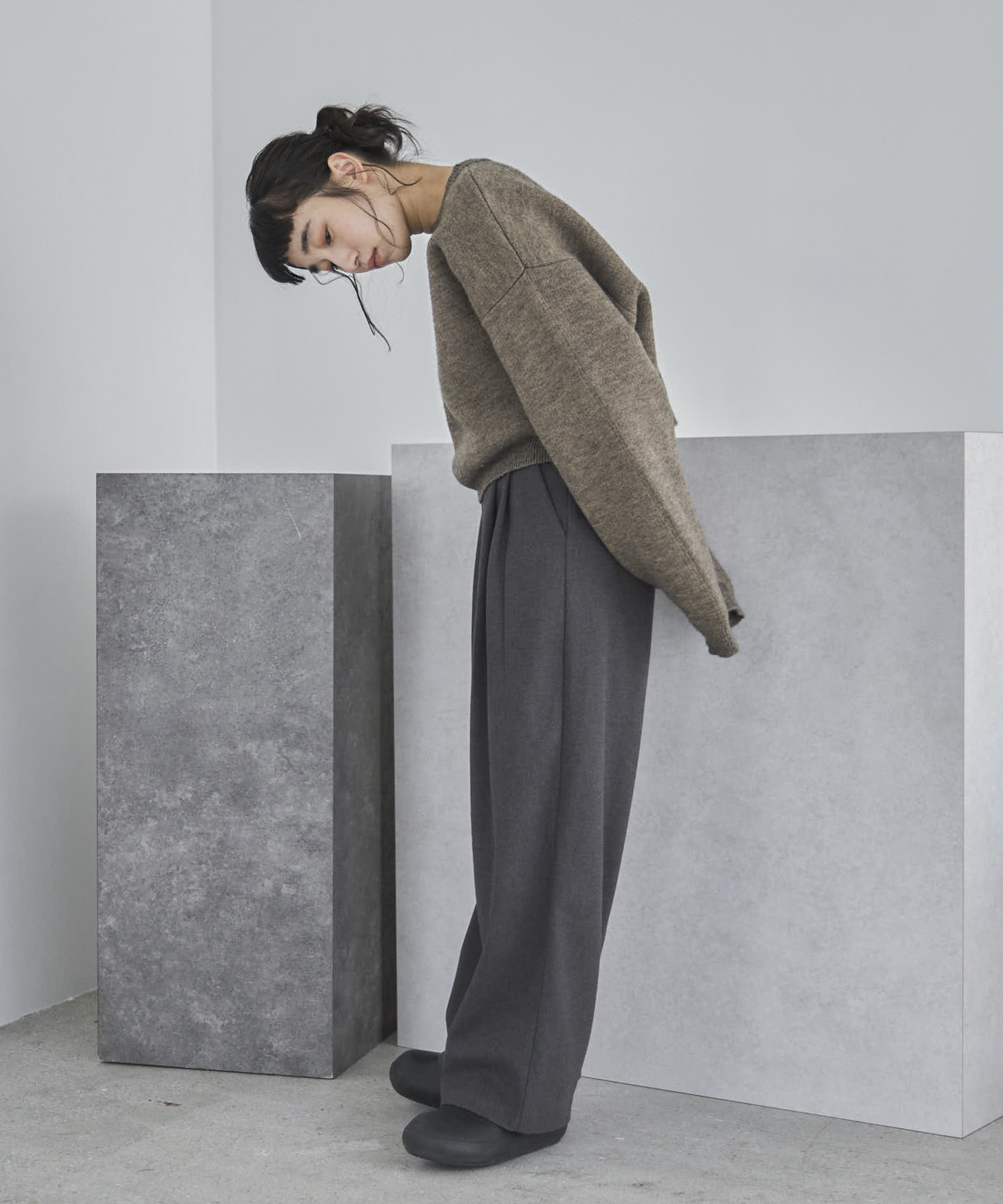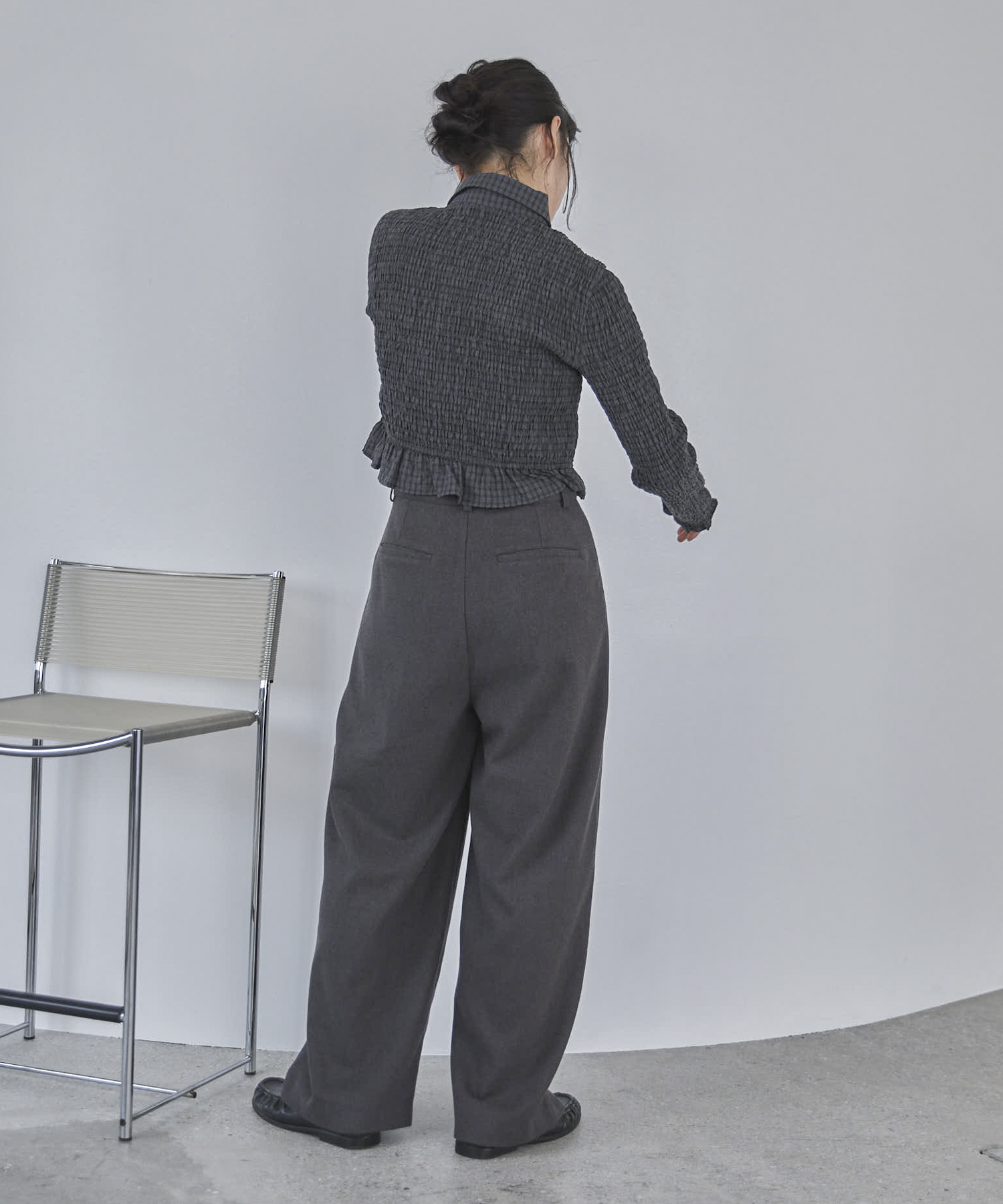 表面にやや起毛感のある生地を使用したウールライクパンツ。