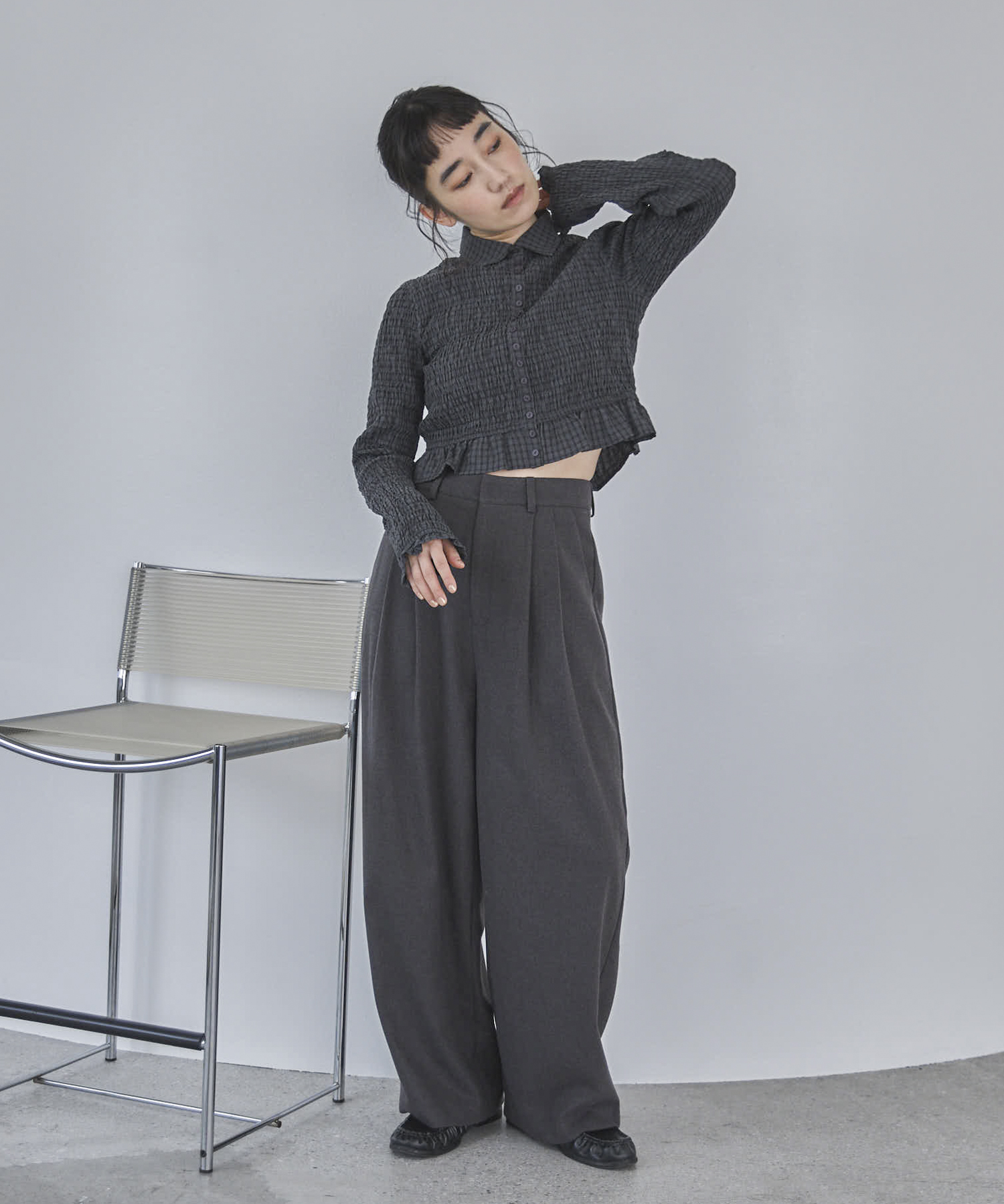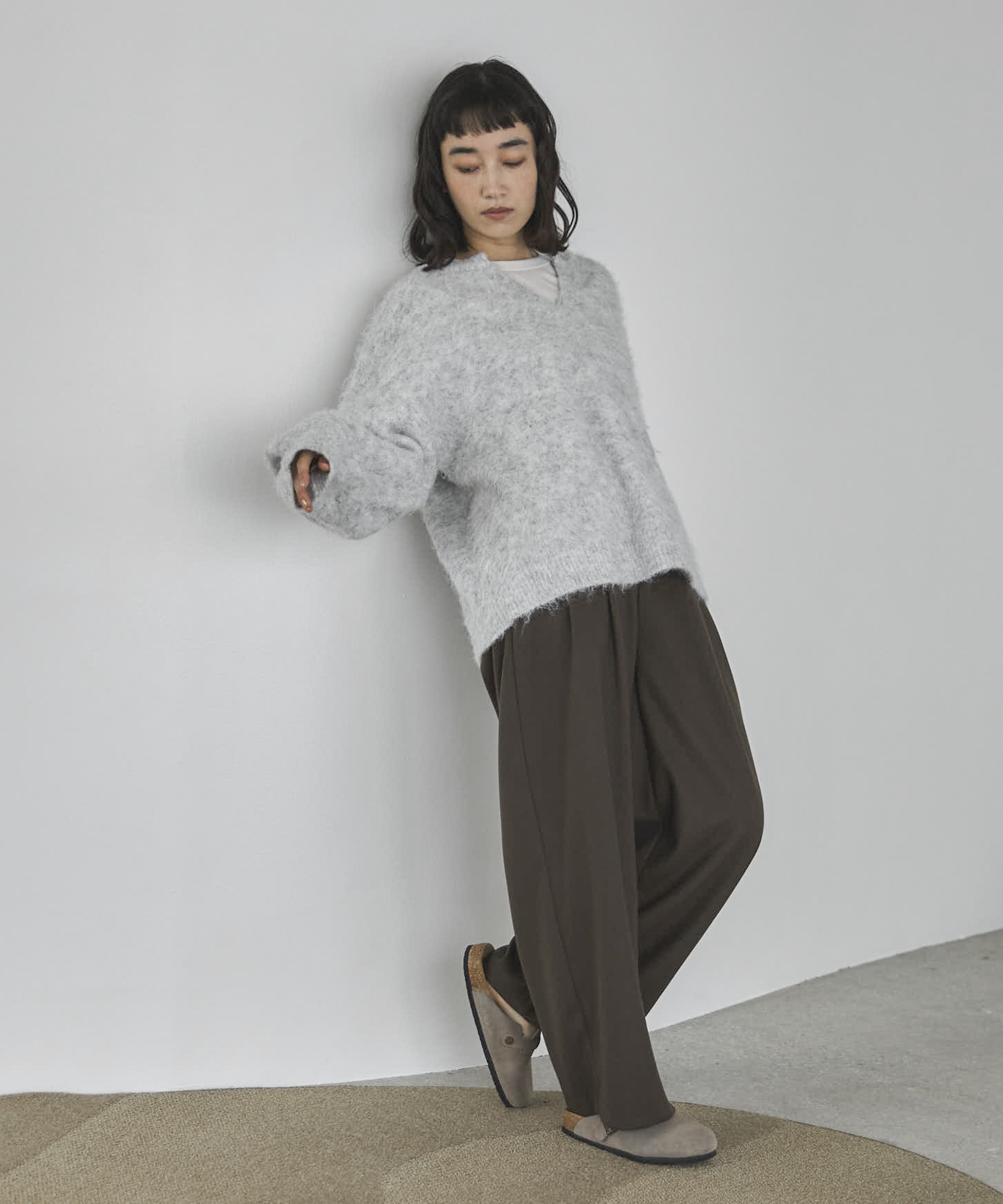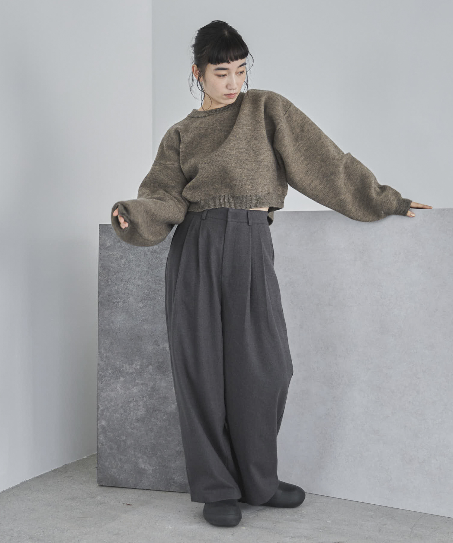 表面にやや起毛感のある生地を使用したウールライクパンツ。