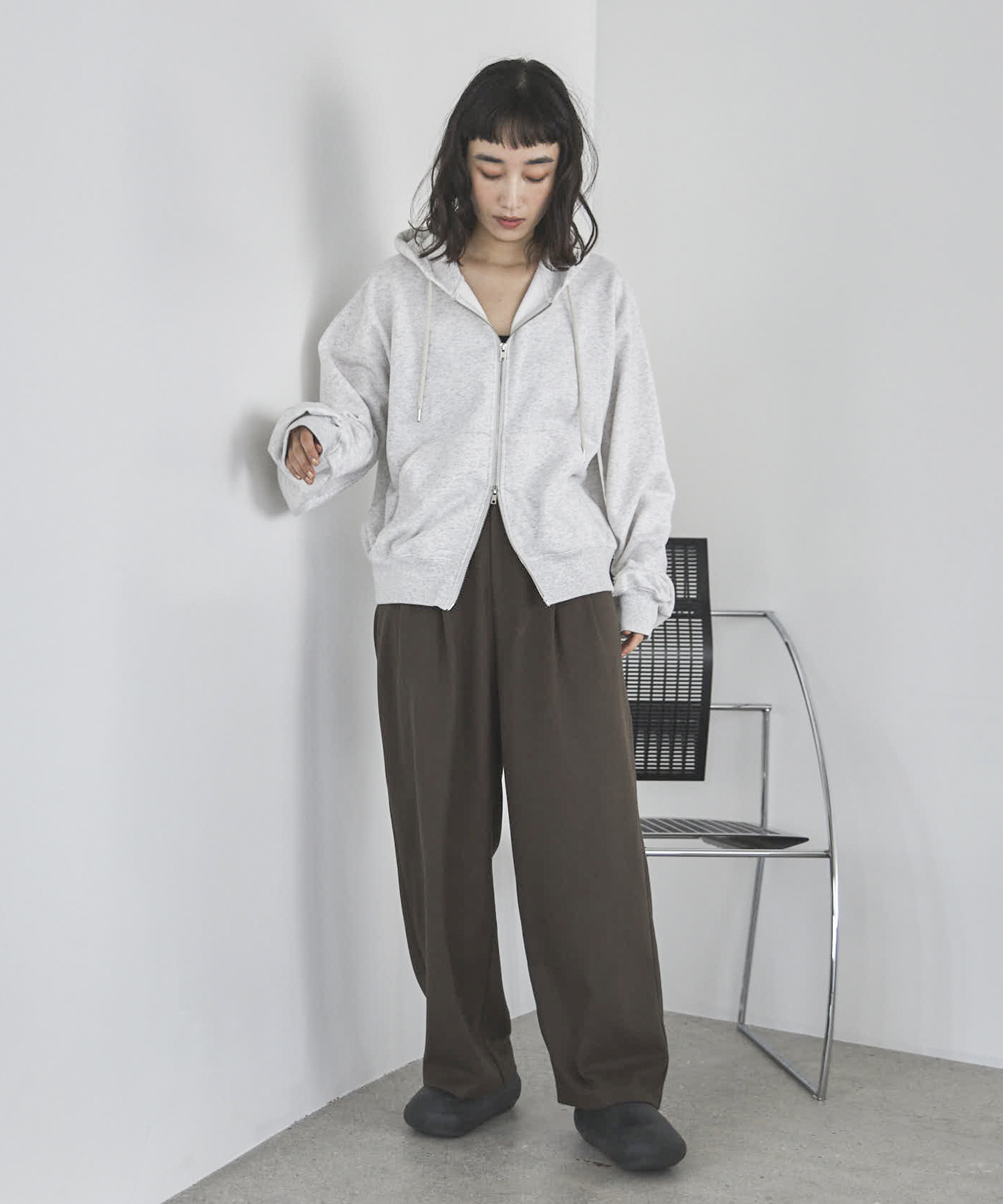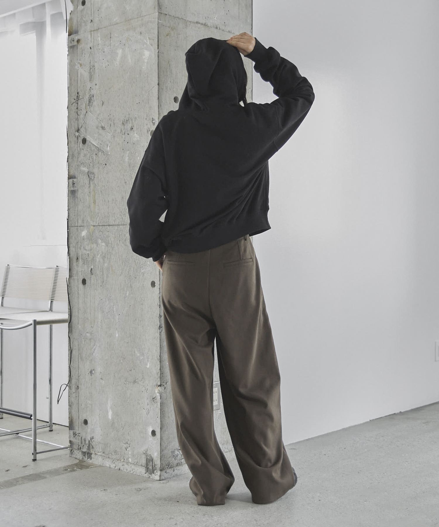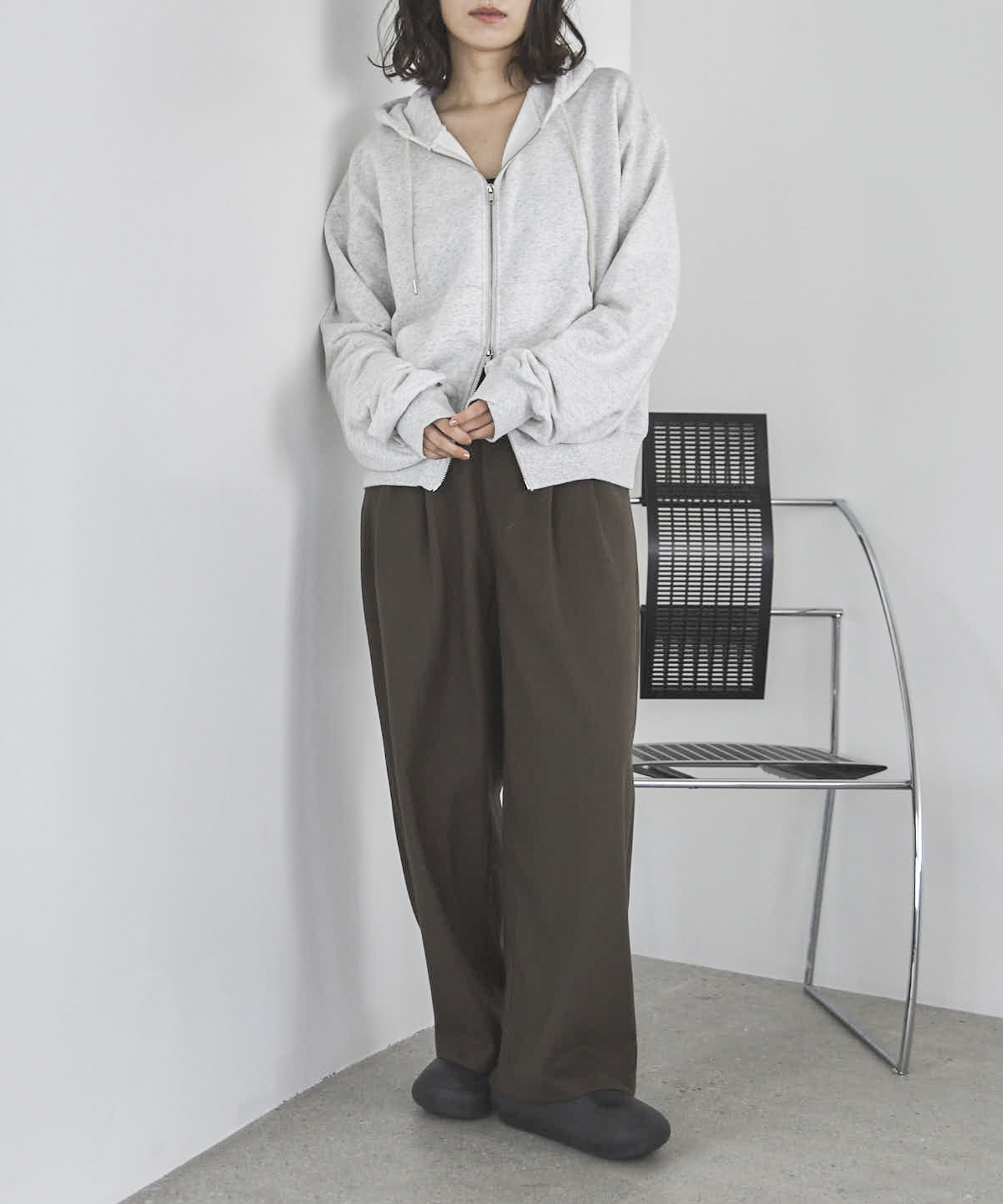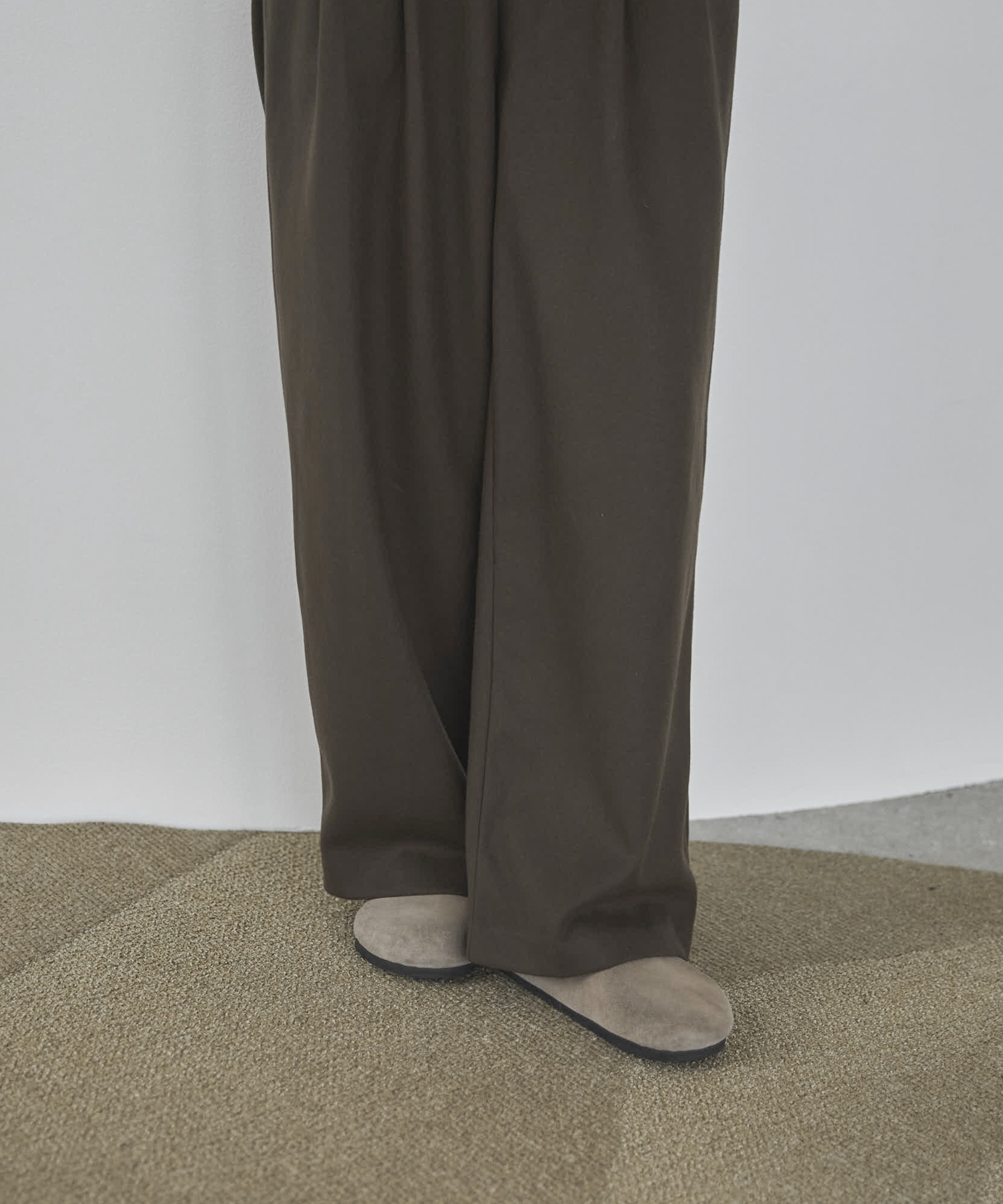 ストレートシルエットでオン・オフ問わず着回せるデザインな上、ウエスト周りもツータック仕様で履きやすさも抜群◎
