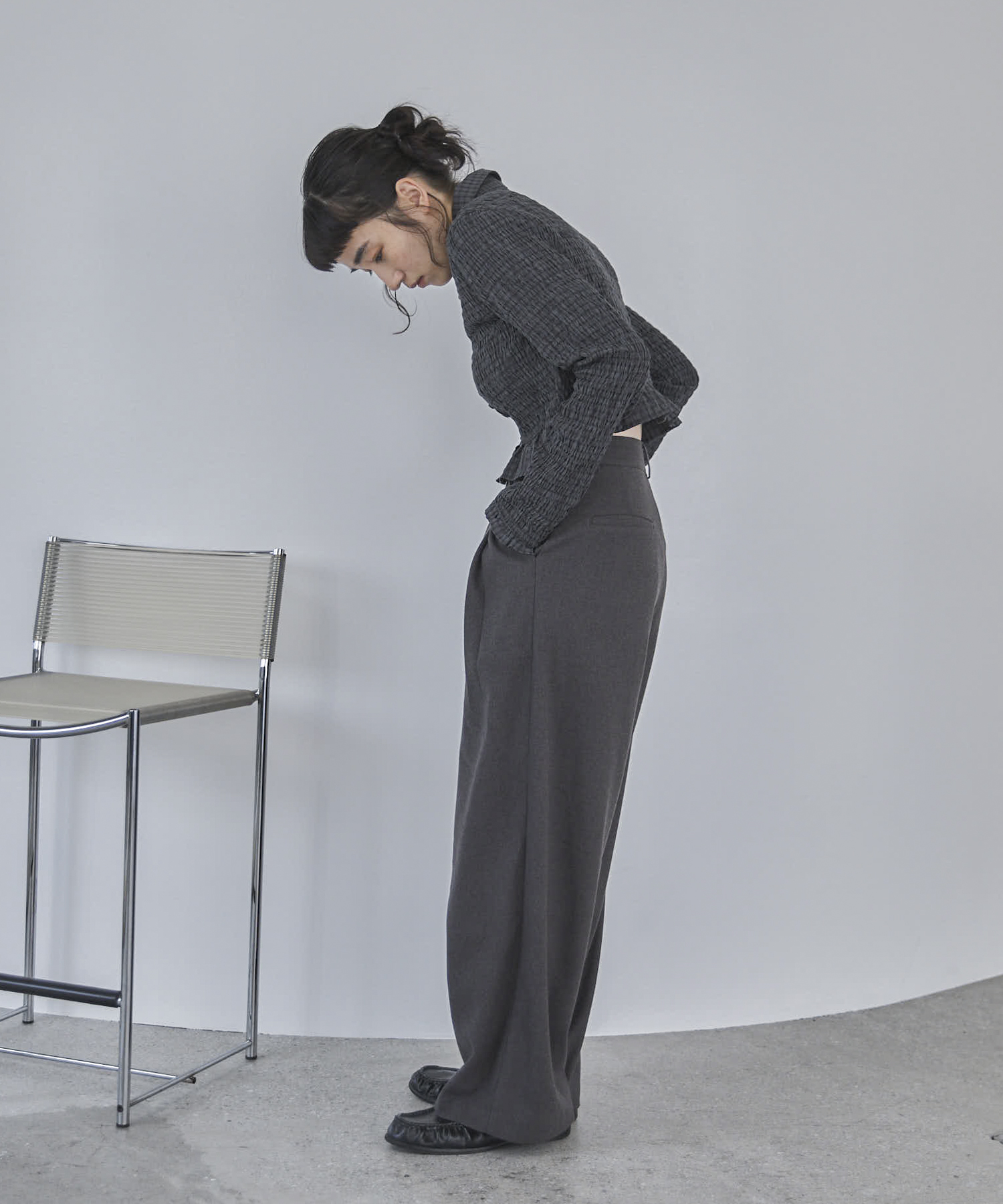 シルエットをキープするためウエストはゴムではないので、お手持ちのベルトで調整やアレンジなども可能。