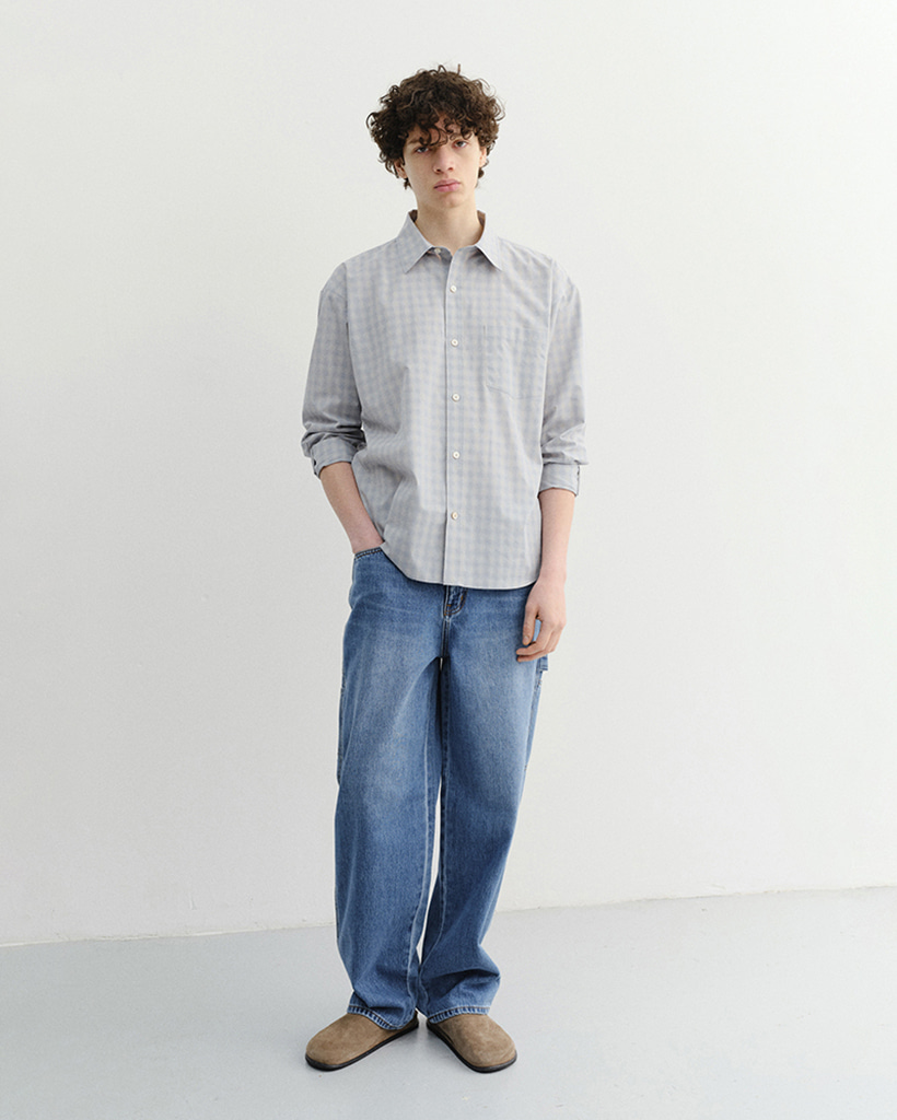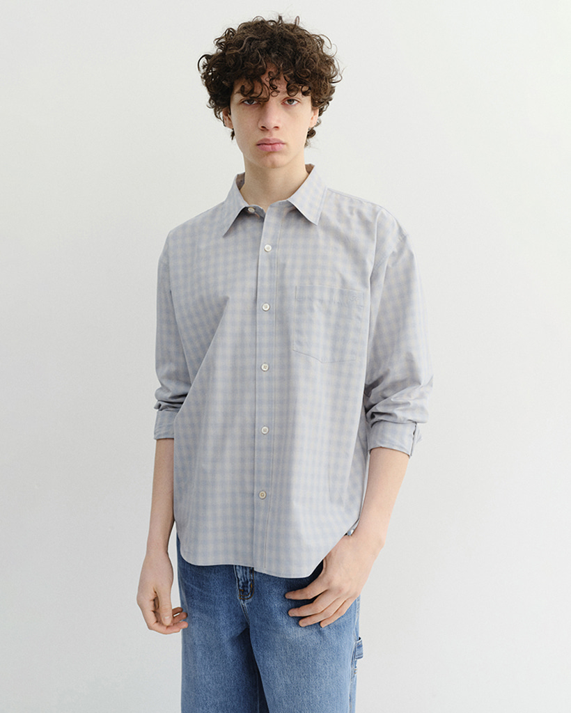 UNISEX CROPPED CHECKED SHIRT SOFT BLUE CHECK_M_UDSH6A116B1