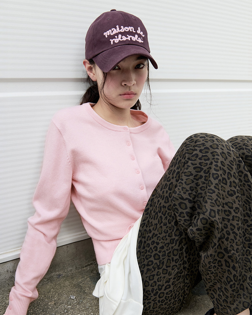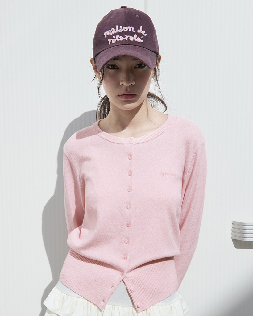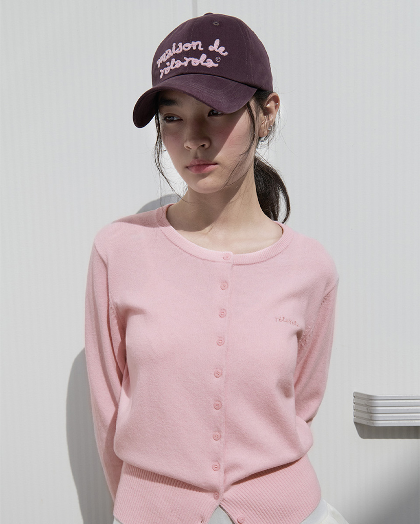 WOOL BLENDED ROUND BUTTON CARDIGAN PINK