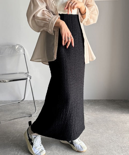 大人の女性を魅了する、ぽこぽこ素材のストレートスカート。