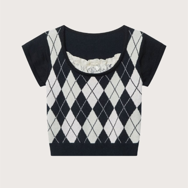 レースステッチアーガイルトップス