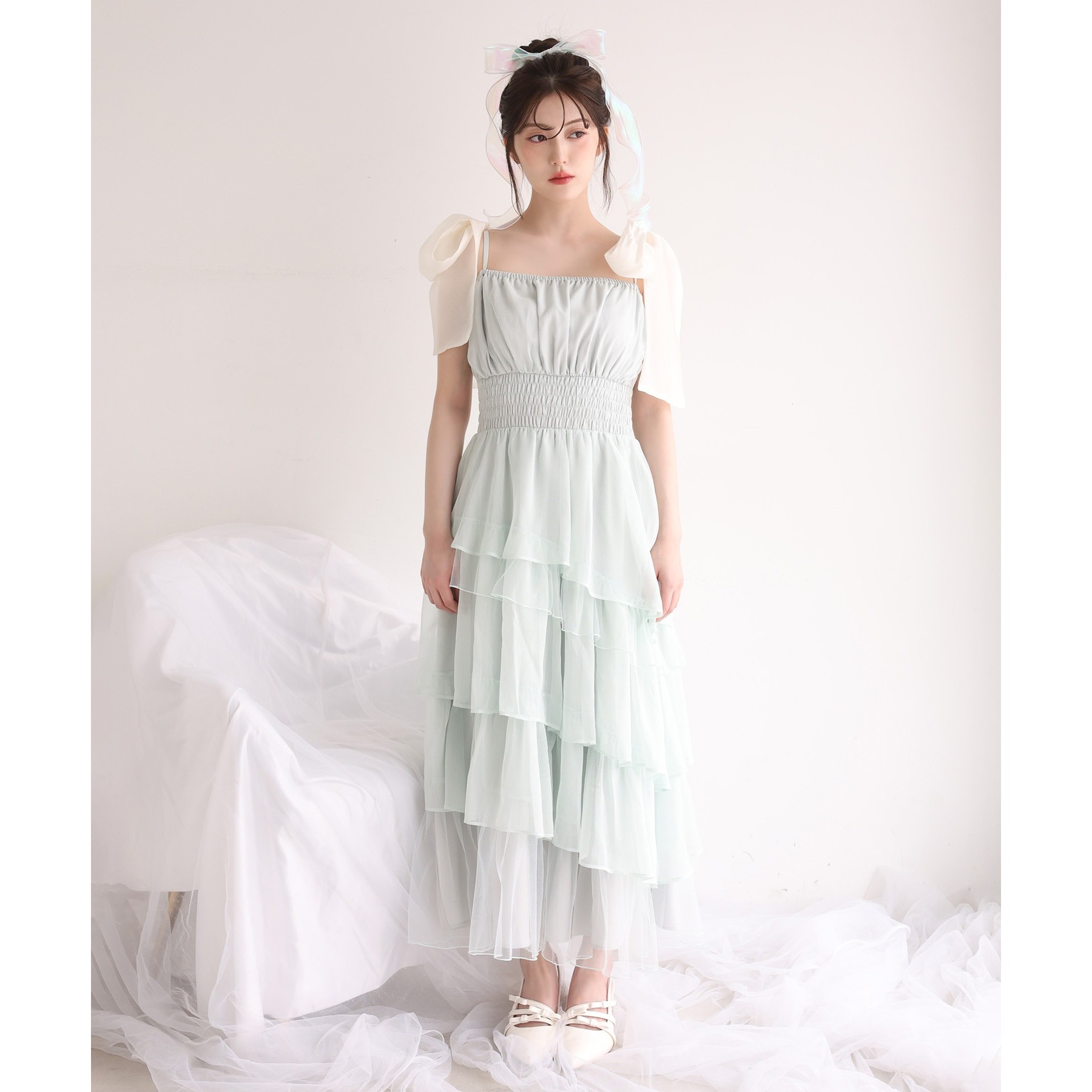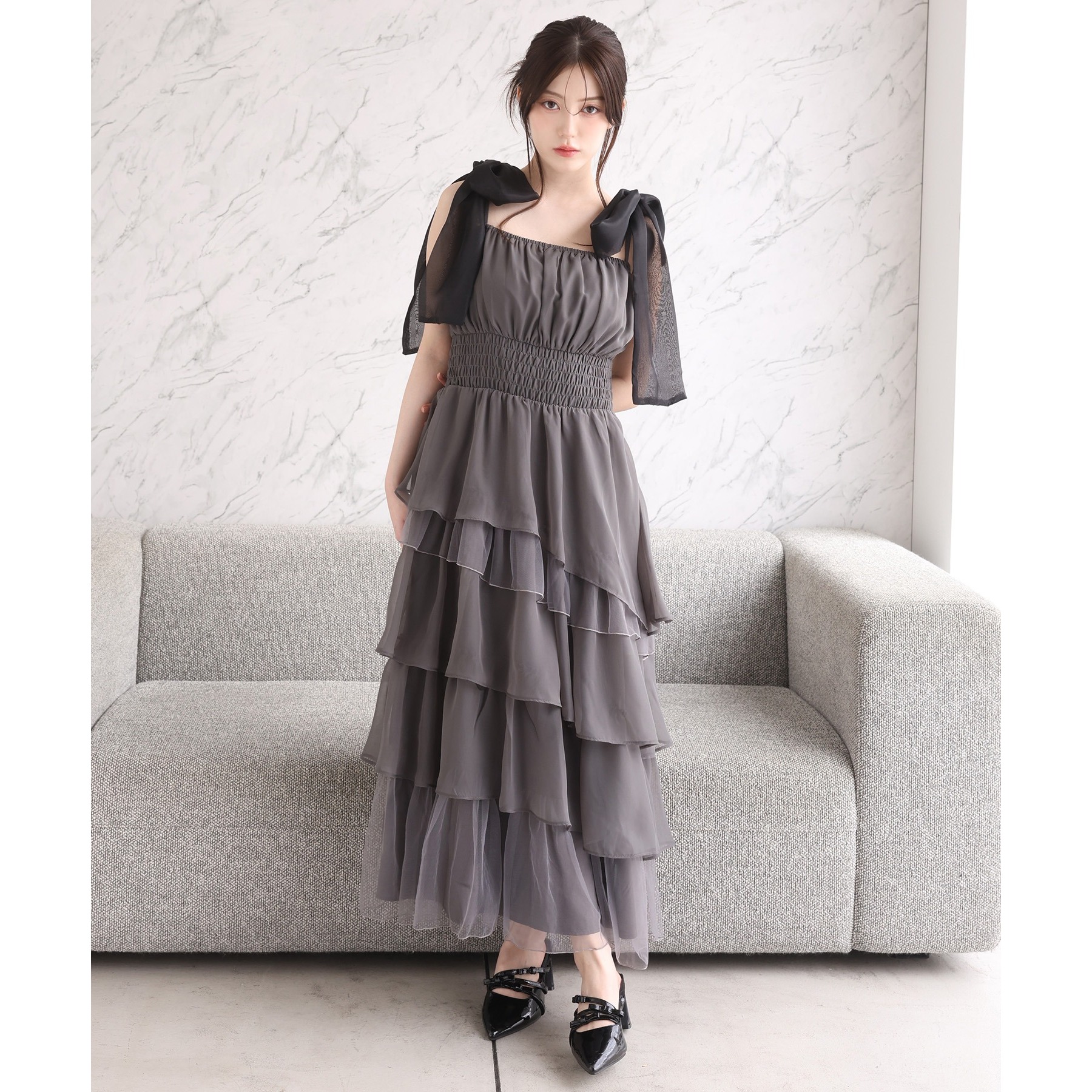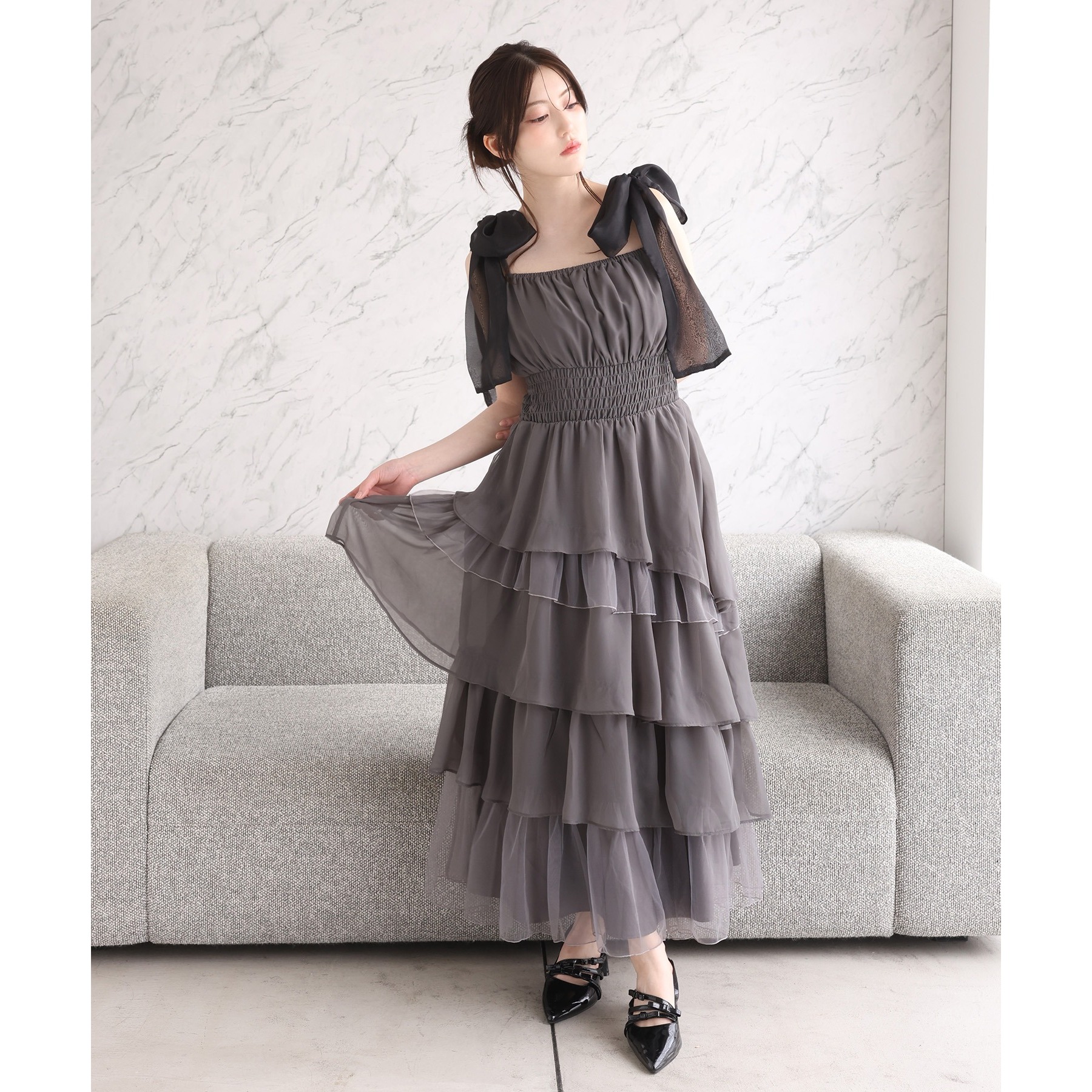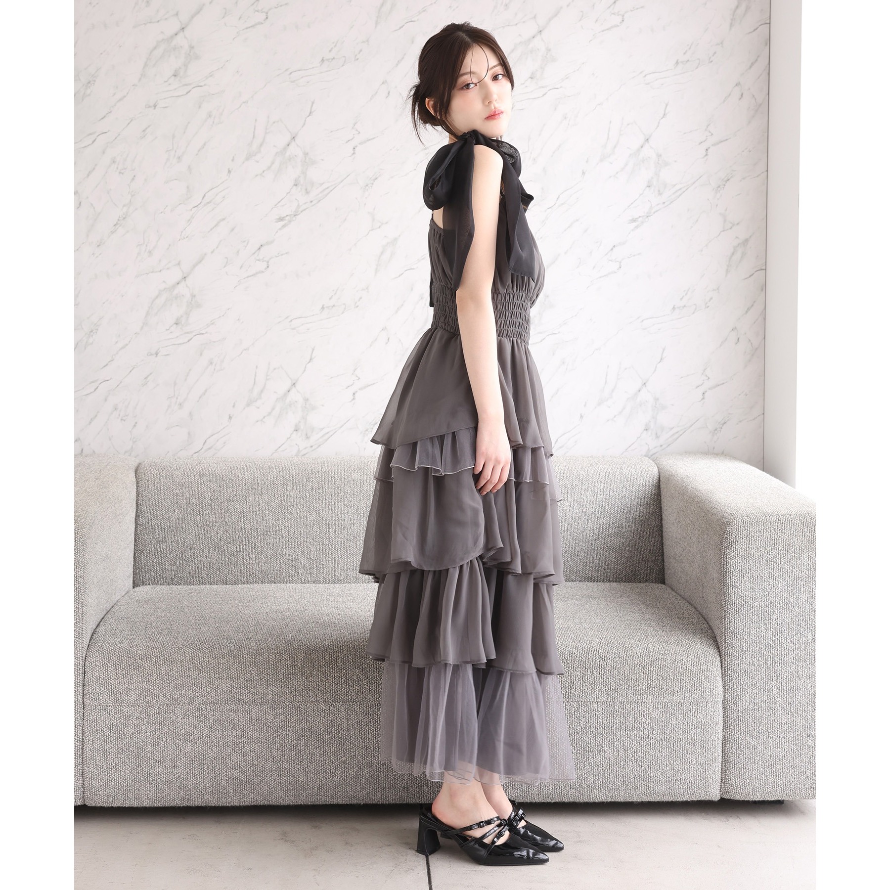 チュールのフリルを贅沢にあしらったティアードワンピース