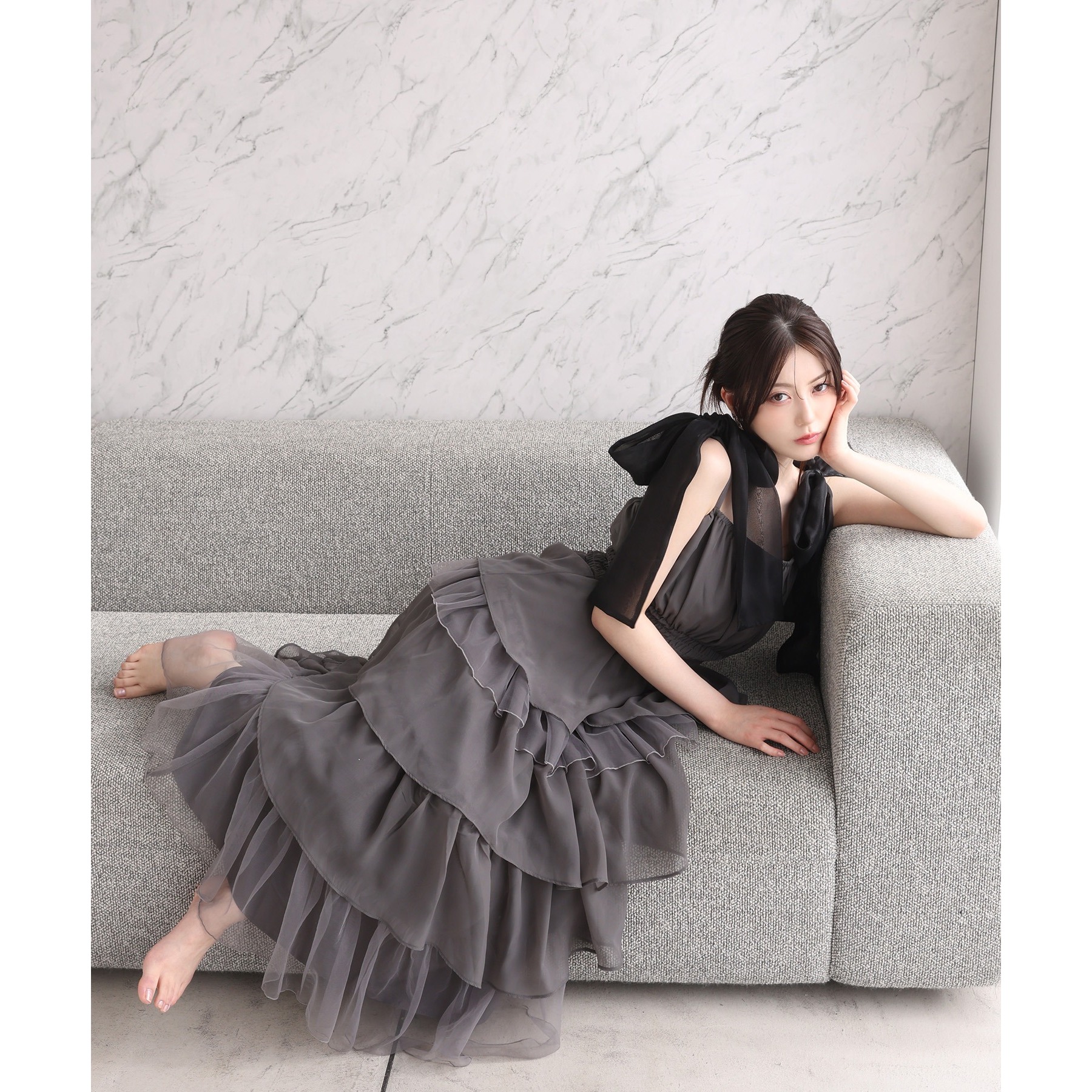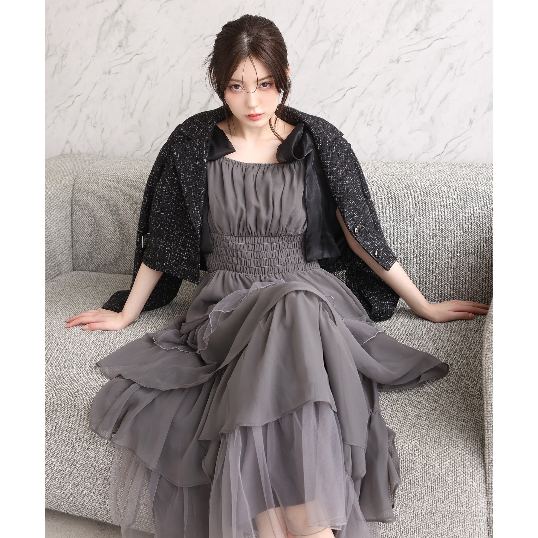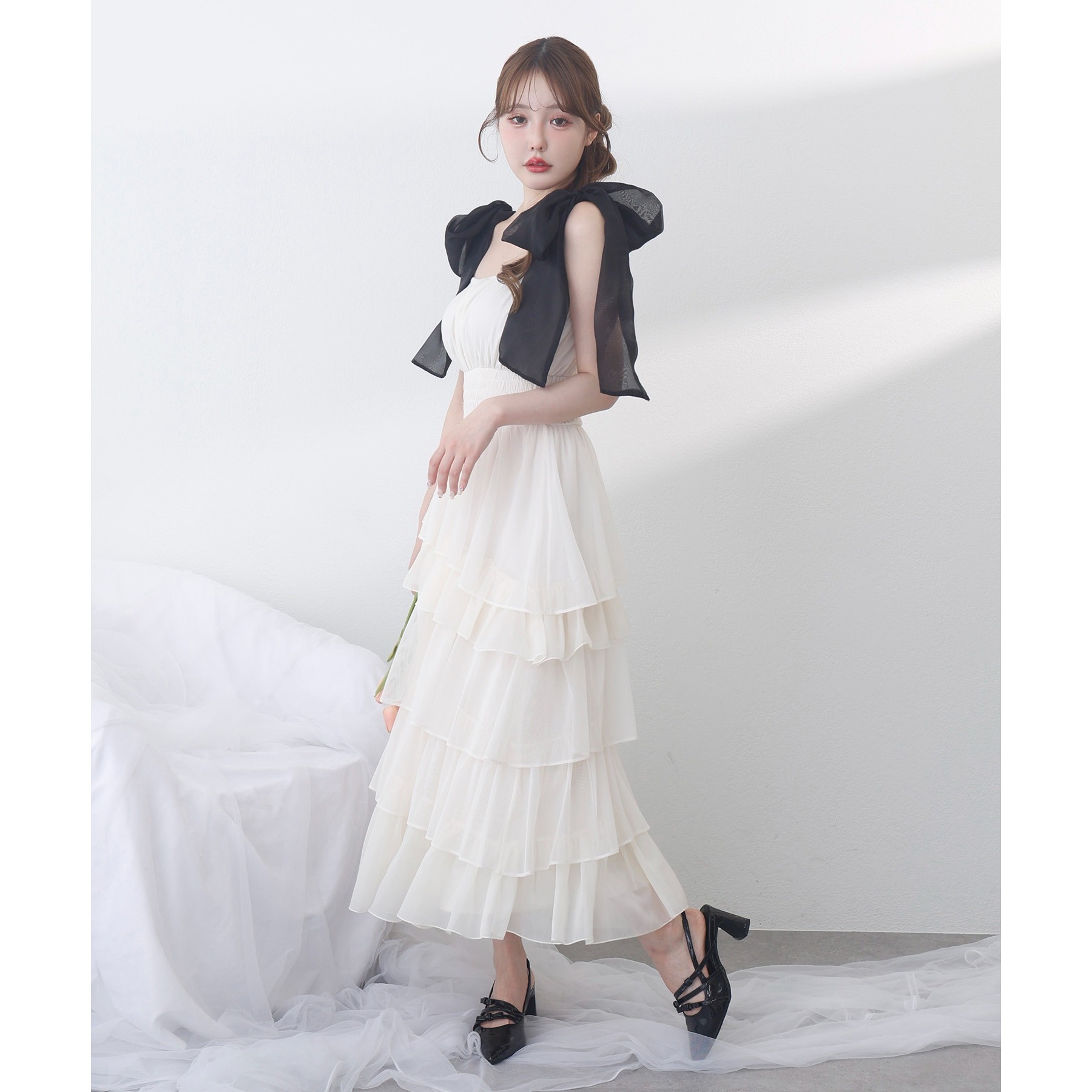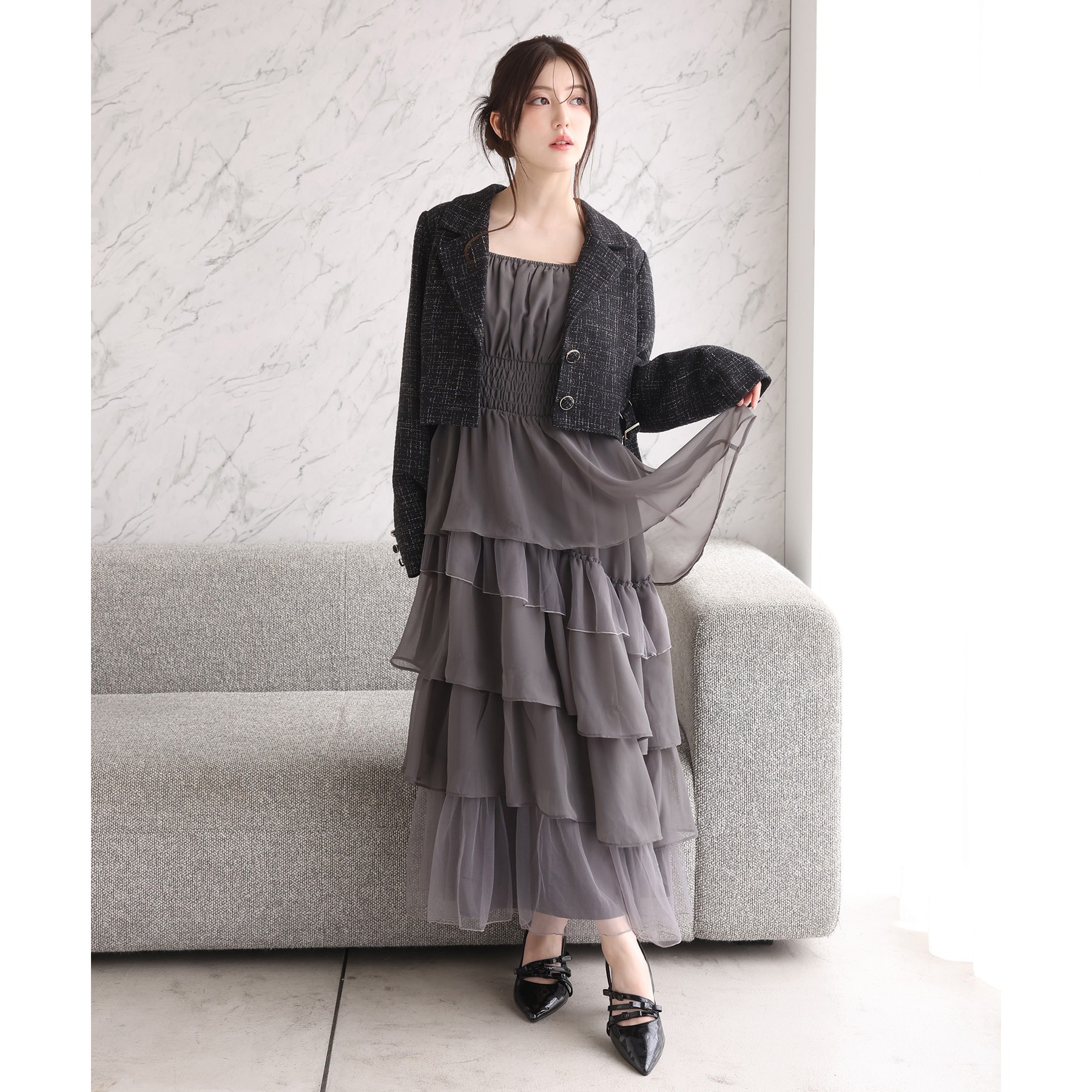 チュールのフリルを贅沢にあしらったティアードワンピース