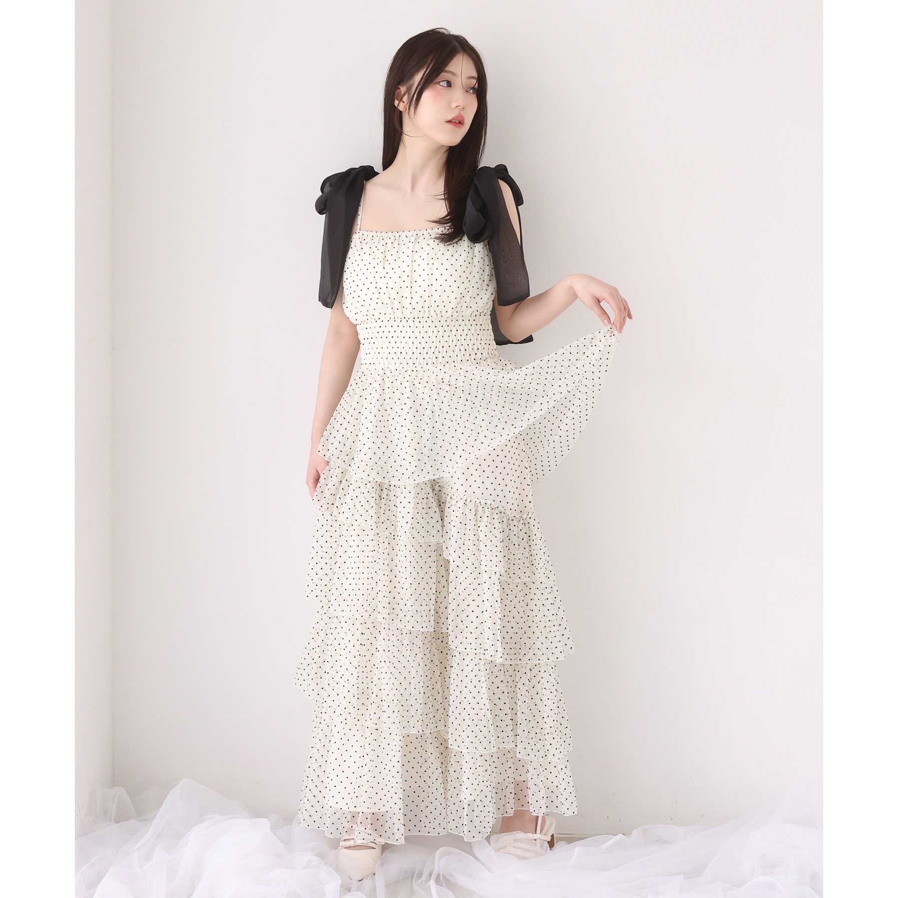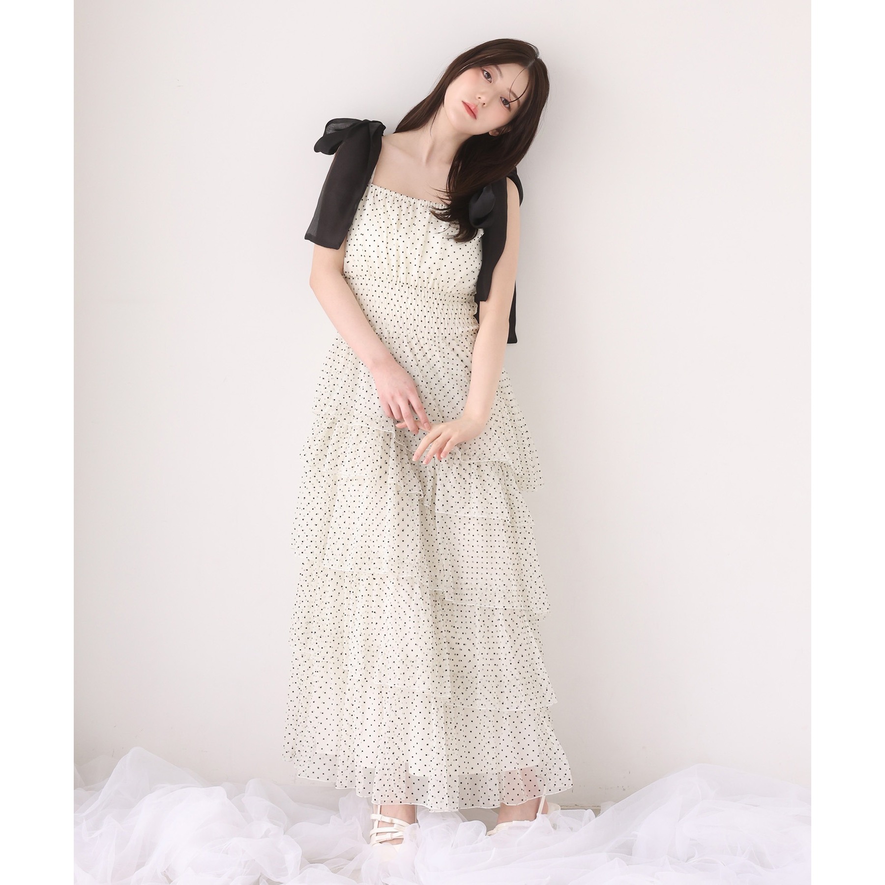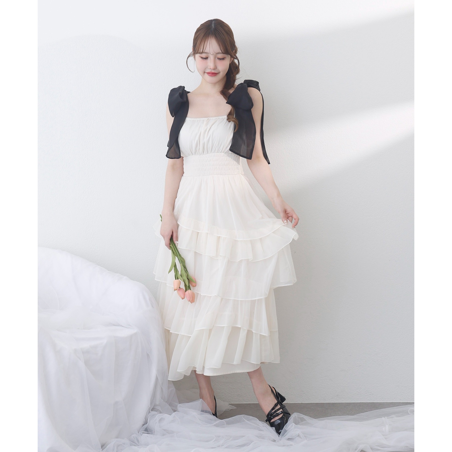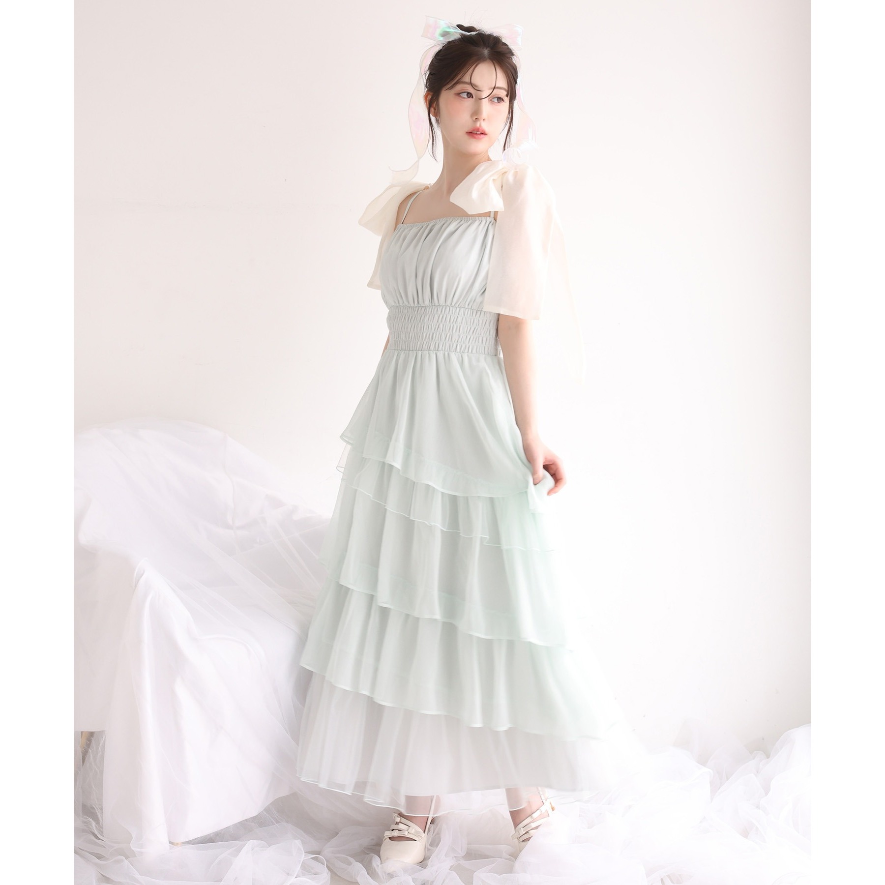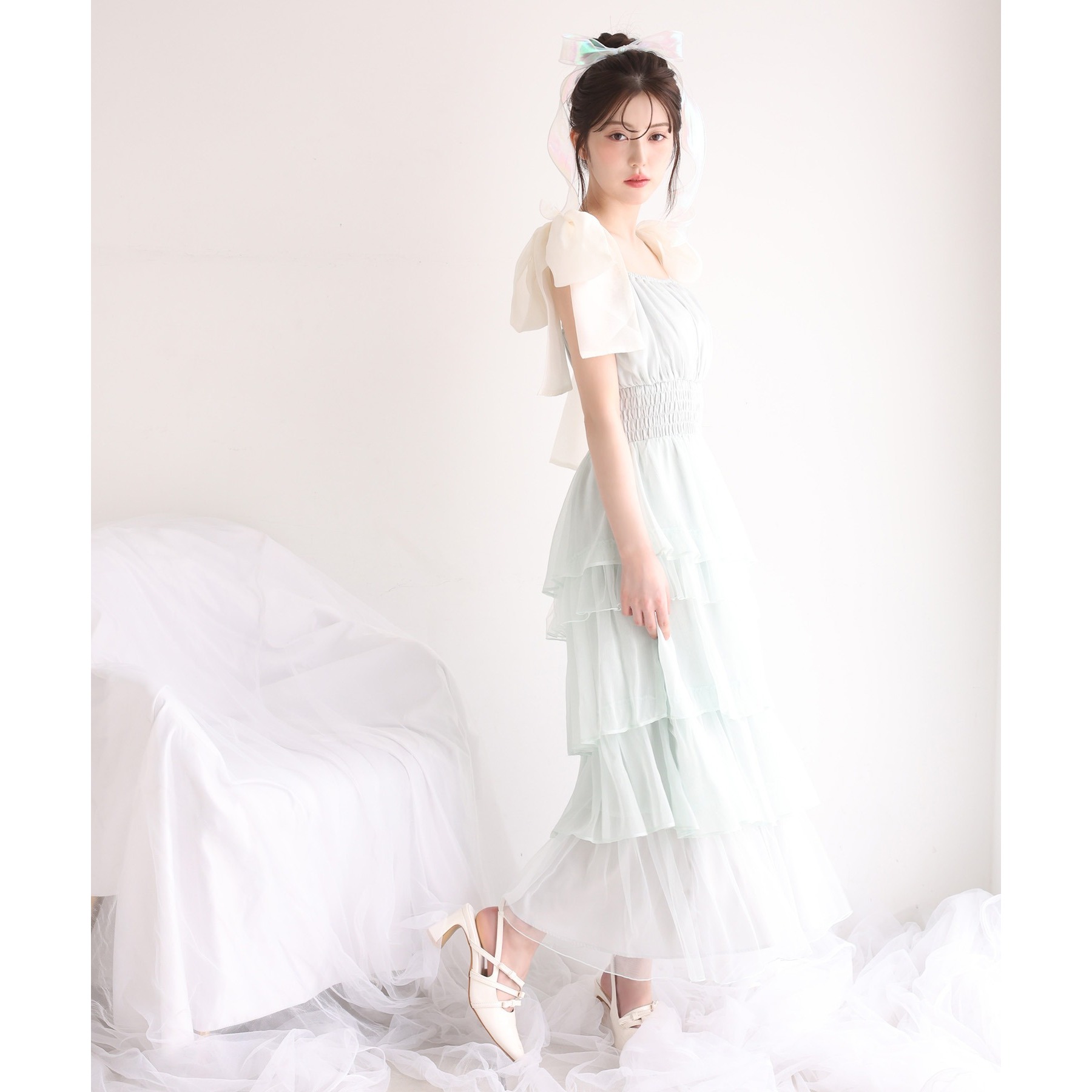チュールのフリルを贅沢にあしらったティアードワンピース
