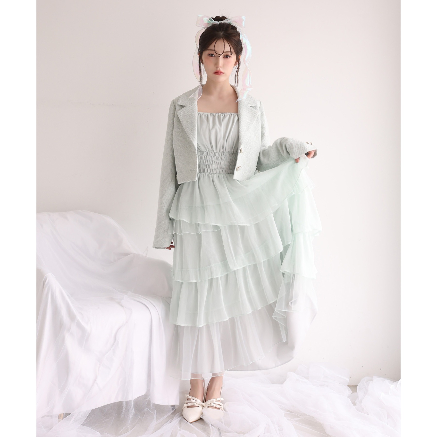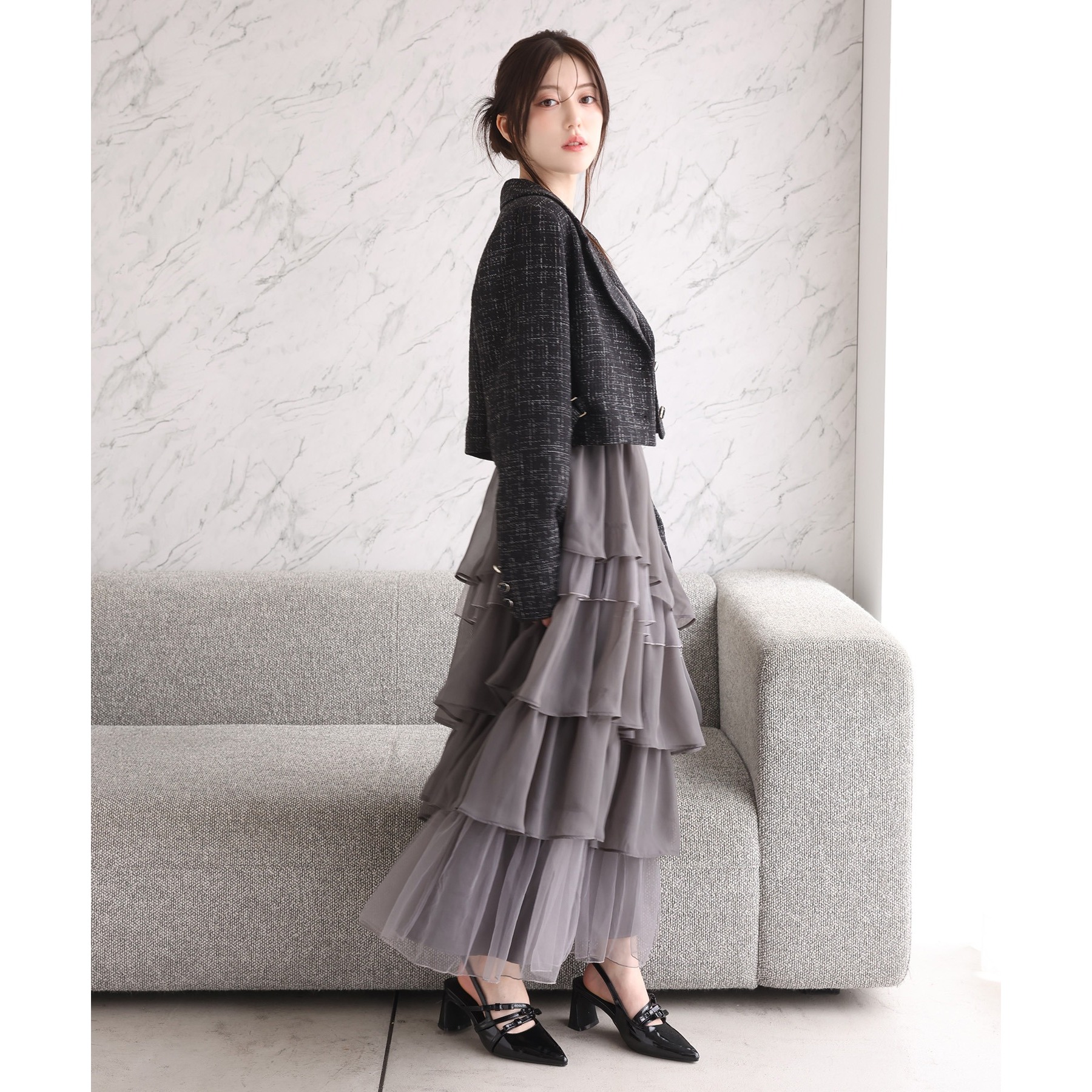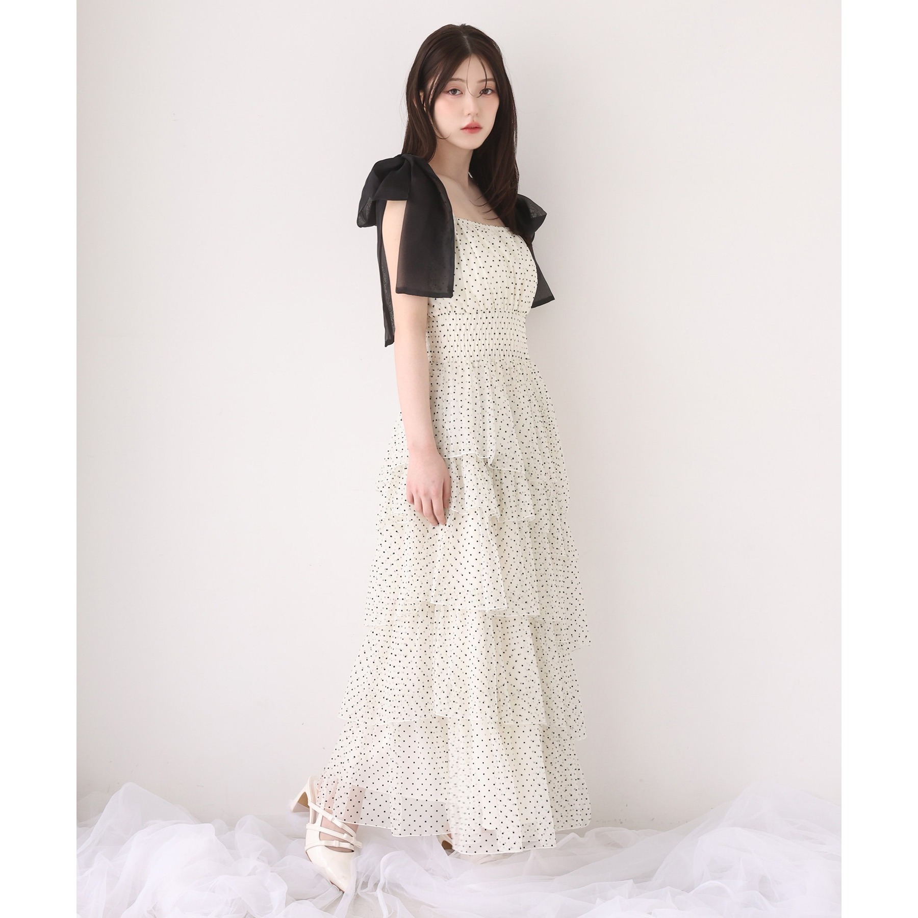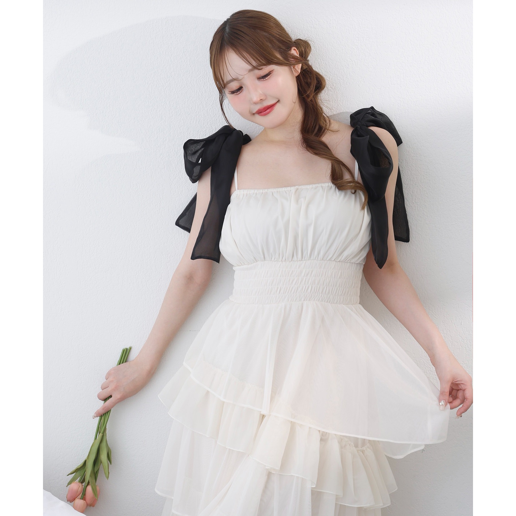 チュールのフリルを贅沢にあしらったティアードワンピース