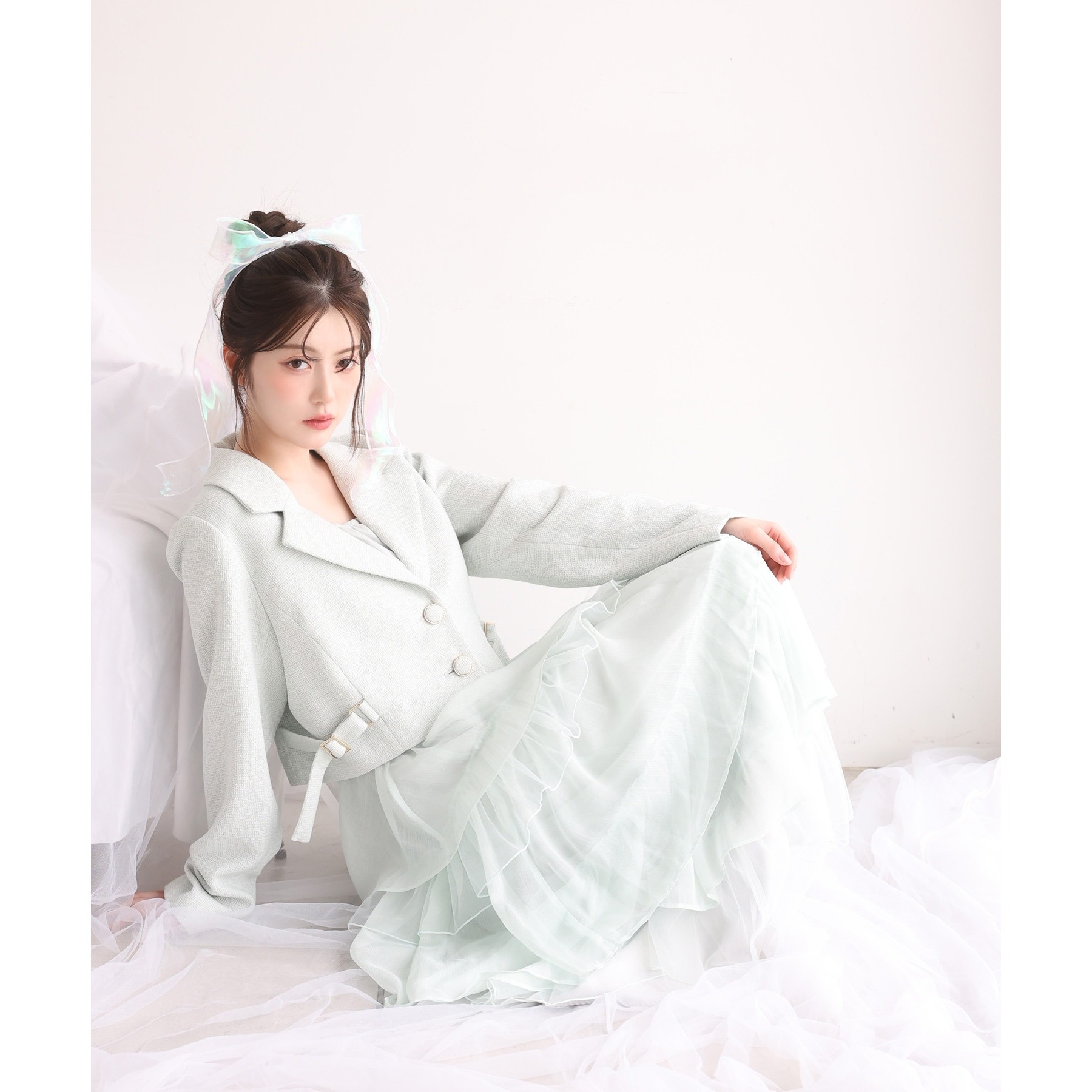 動きに合わせて揺れるたっぷりと重ねたフリルが女性らしい雰囲気を演出します。