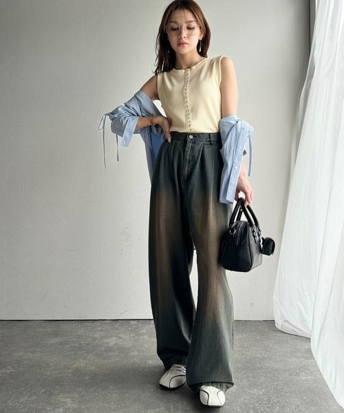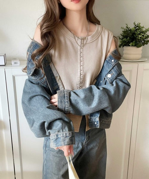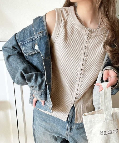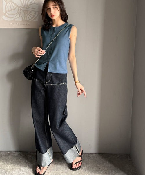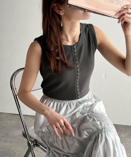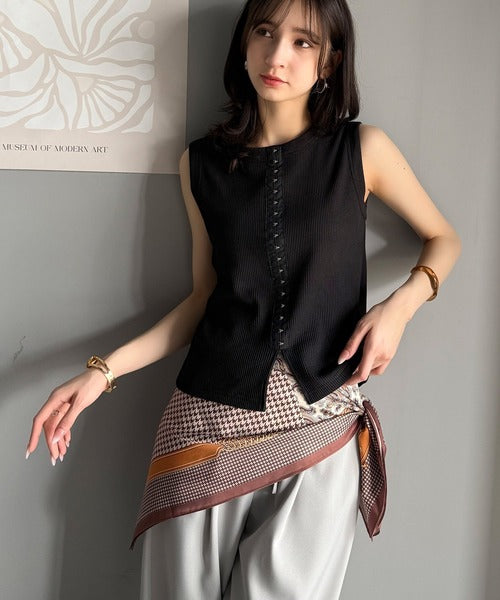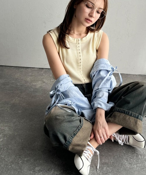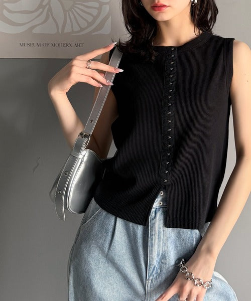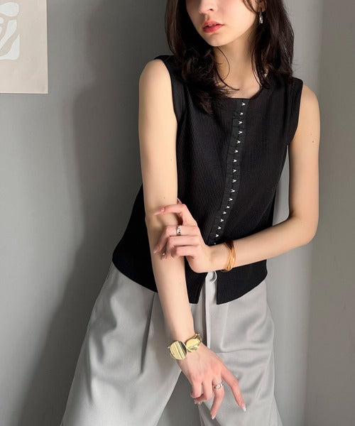 ・ホックテープがアクセントになったノースリーブカットソー。