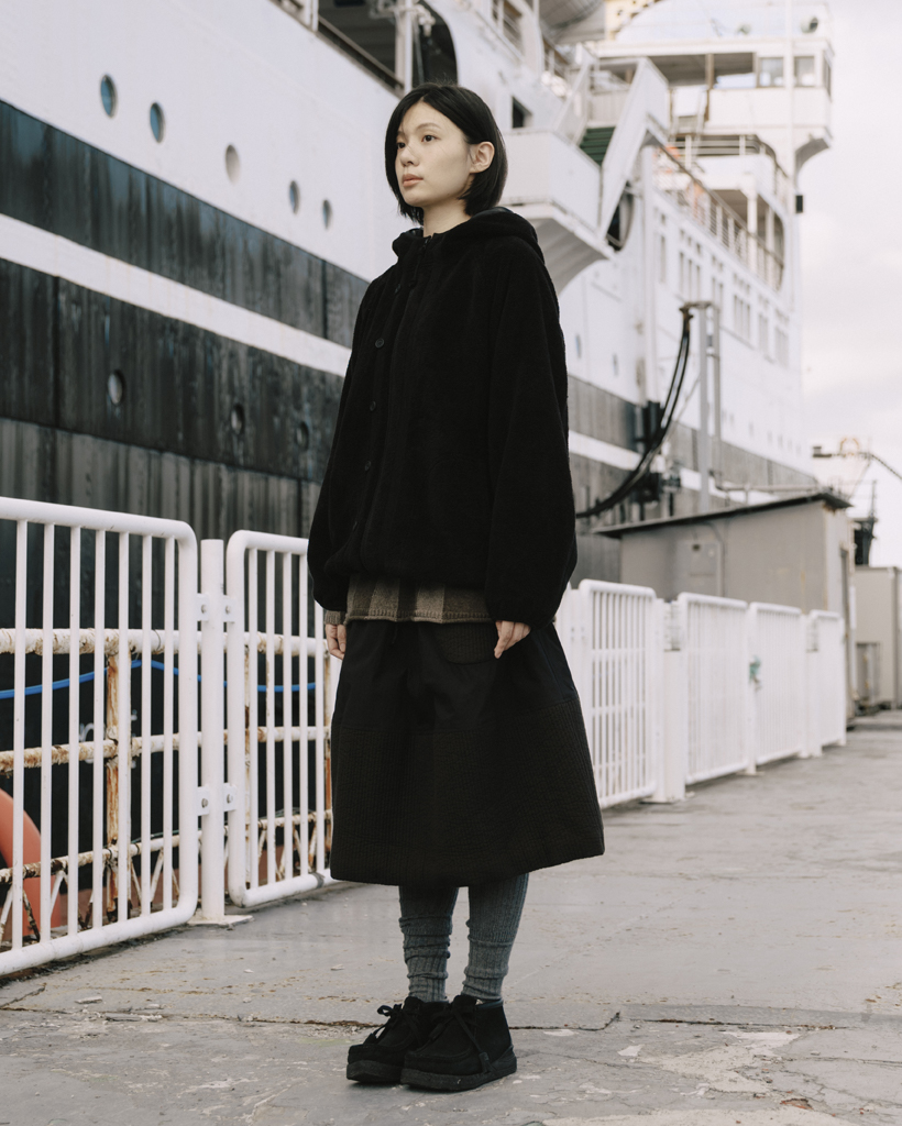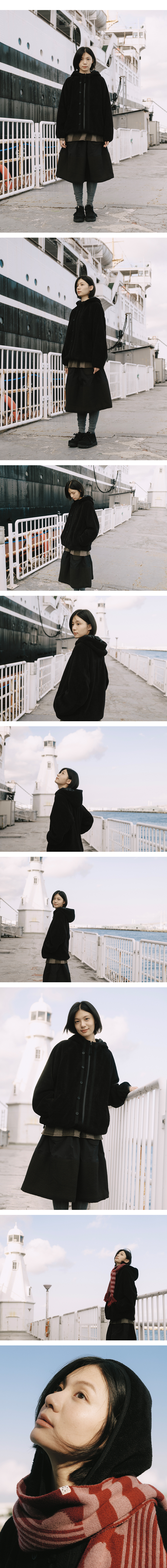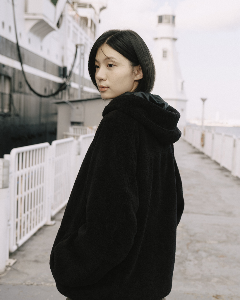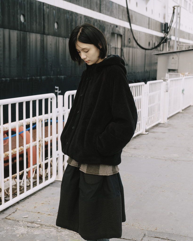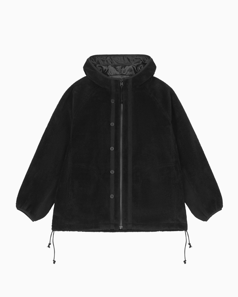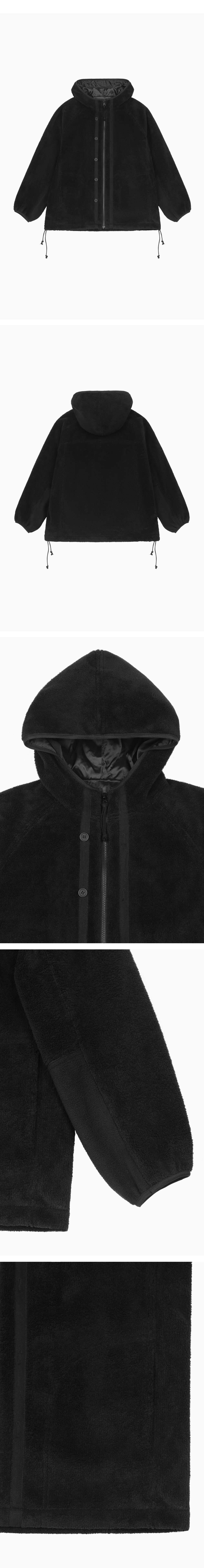 HAIRY HOODED ZIP-UP, BLACK