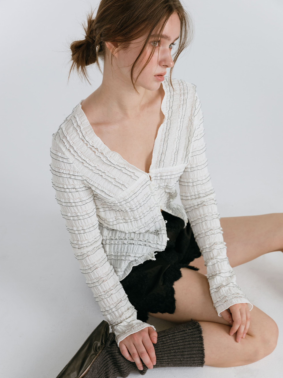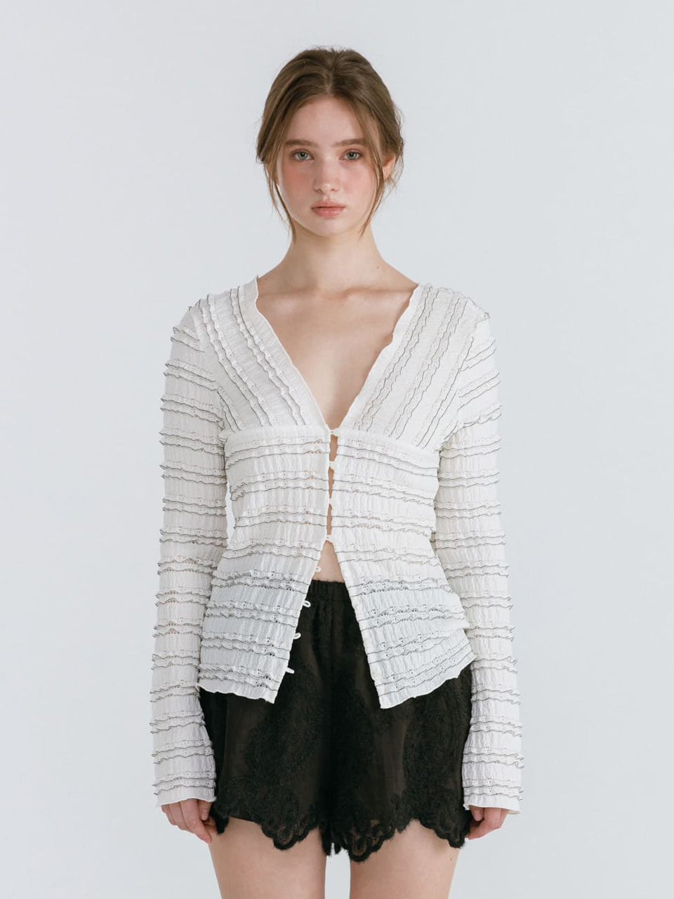 FRILL BUTTON CARDIGAN / IVORY