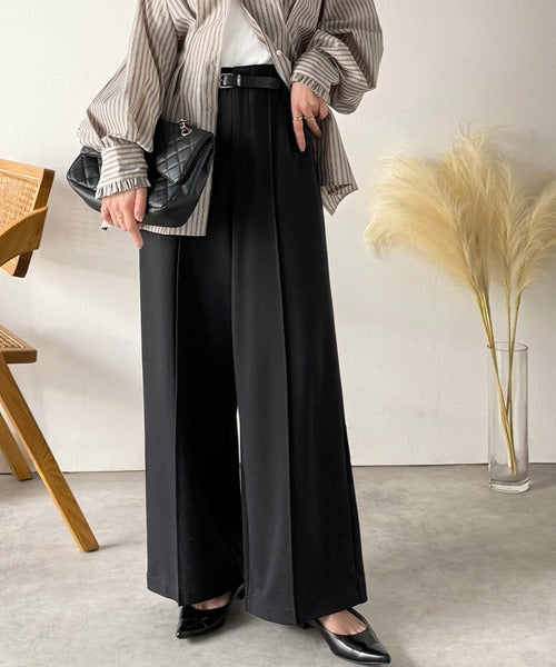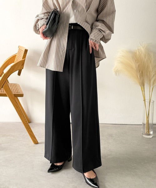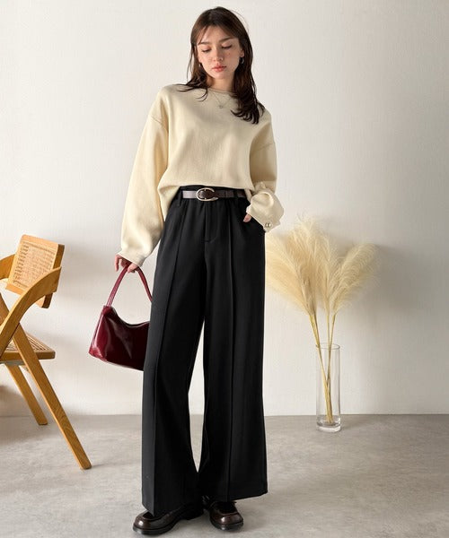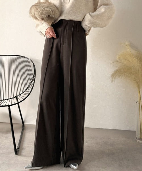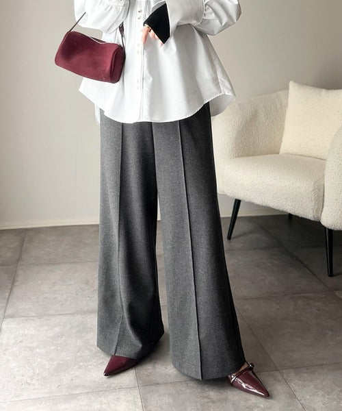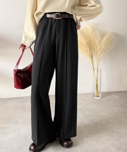 ハイウエスト×センターピンタックで、今っぽい抜け感と上品さを両立。