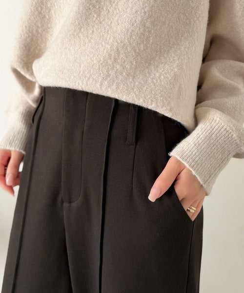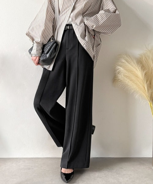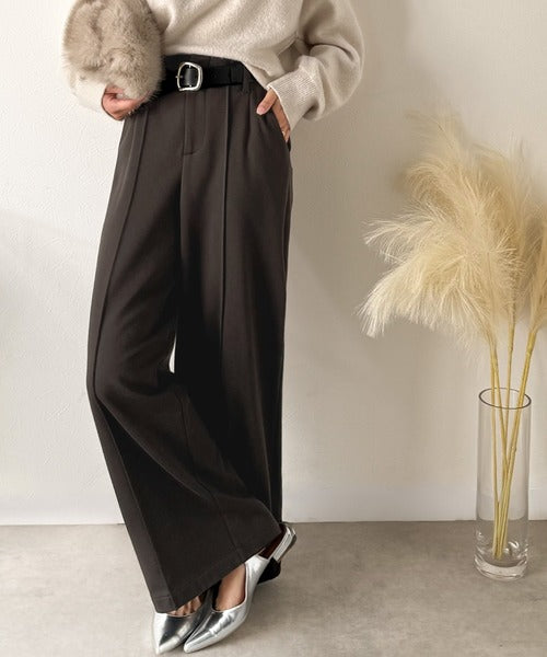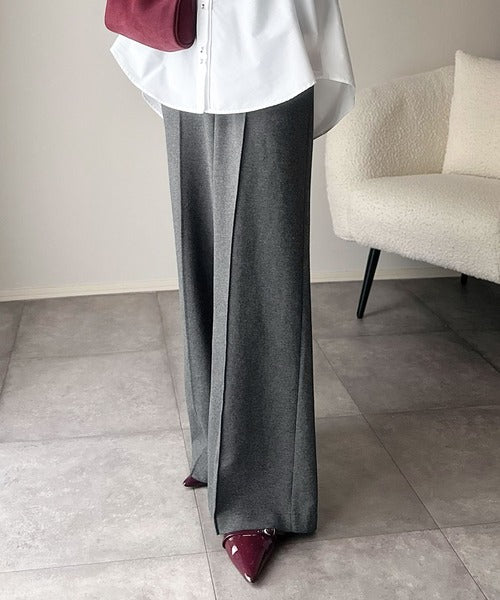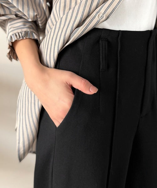 フロントのセンターピンタックが縦ラインを強調し、脚を長くスラリと。
