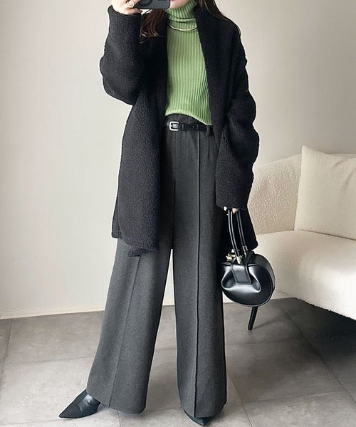 美脚もこなれ感も両立!大人の洒落ワイドが主役になる、ブラッシュドジャージハイウエストワイドパンツ ce0940251