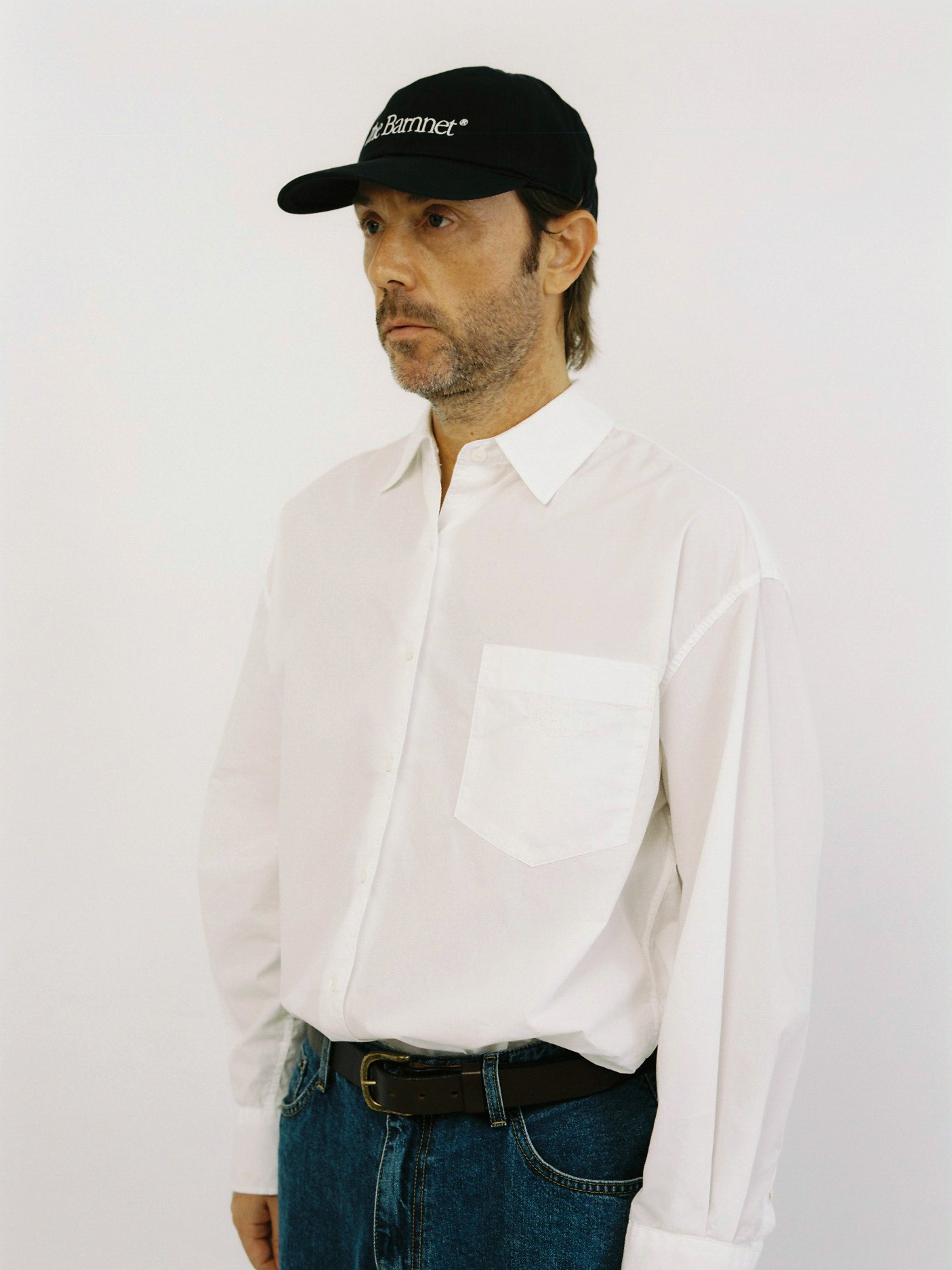 ファブリックカラーとコントラストをなすホワイトカラーを用いたロゴ刺繍ディテール