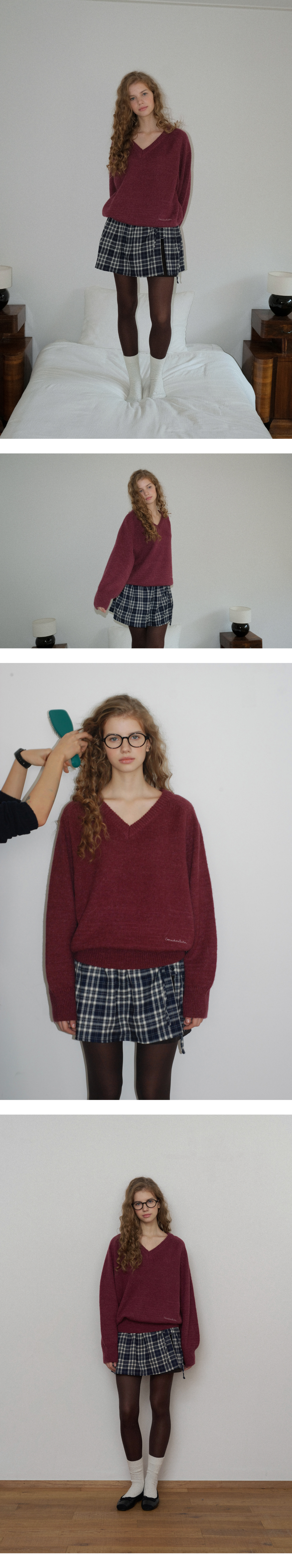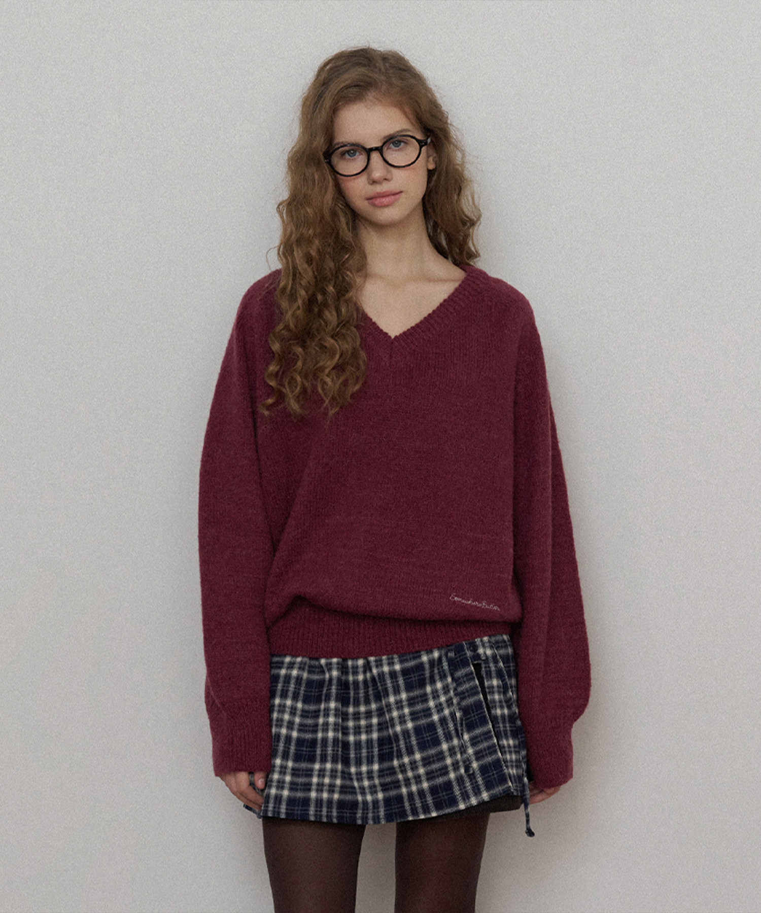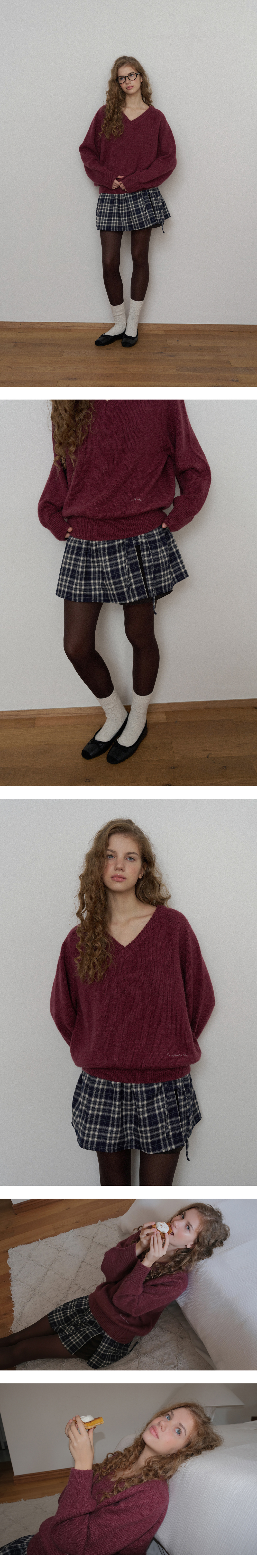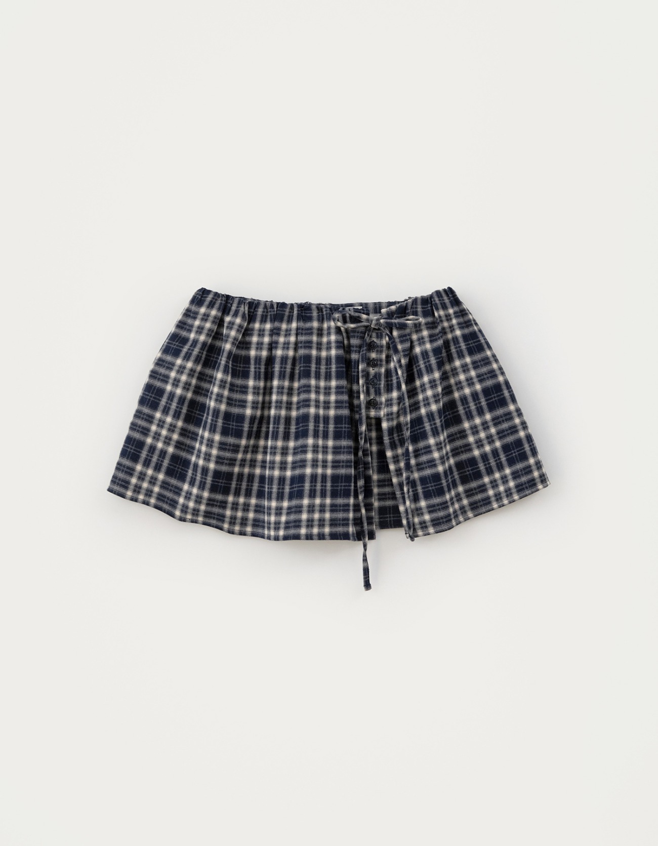 Check Button Layered Skirt-navy