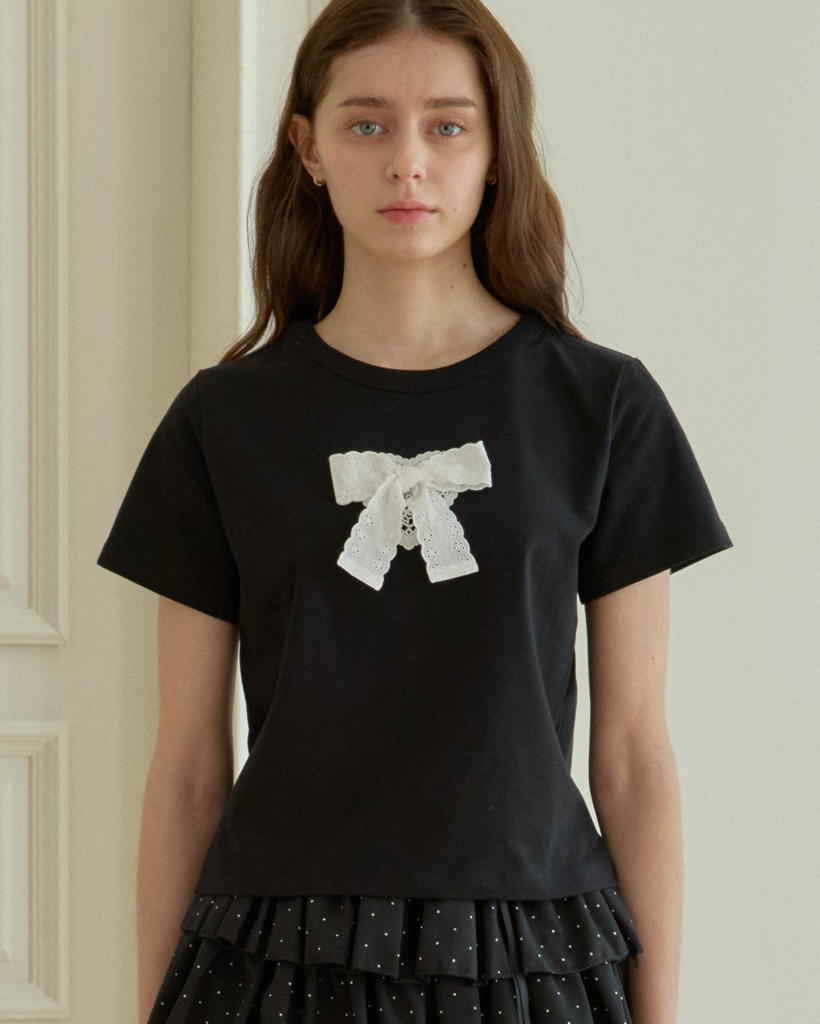 SWEET RIBBON HALF T-SHIRT_BLACK