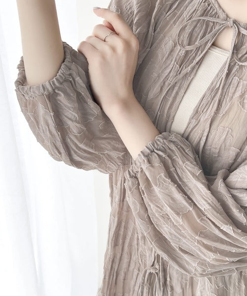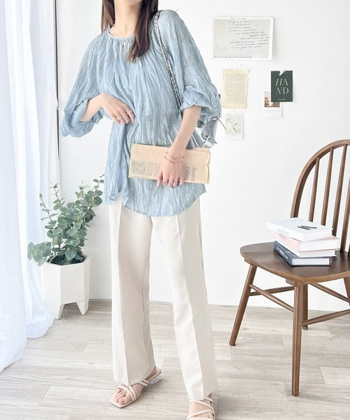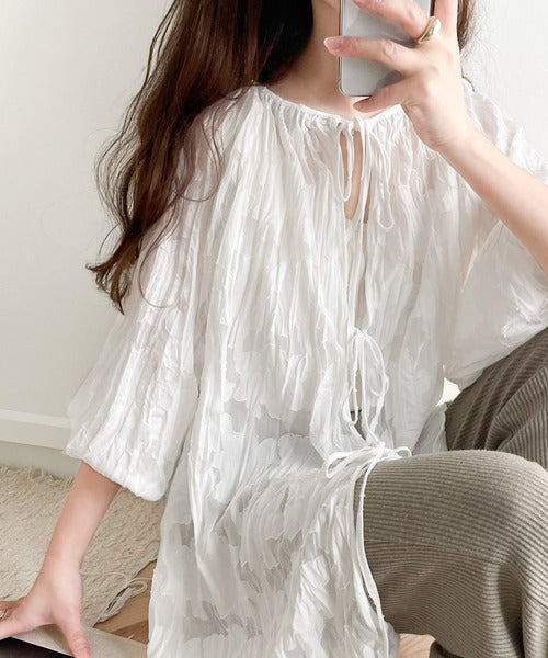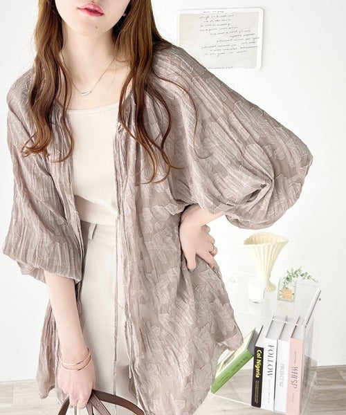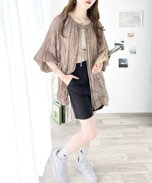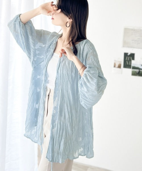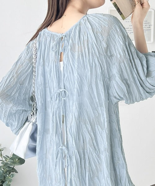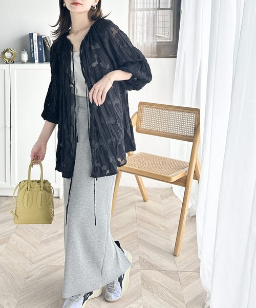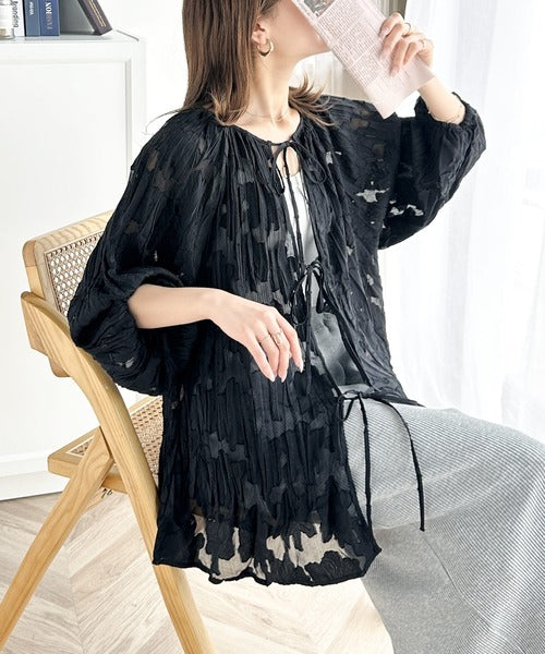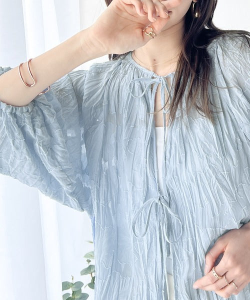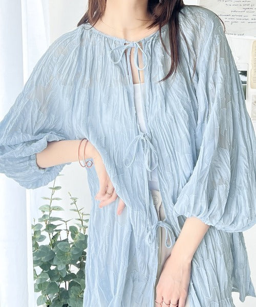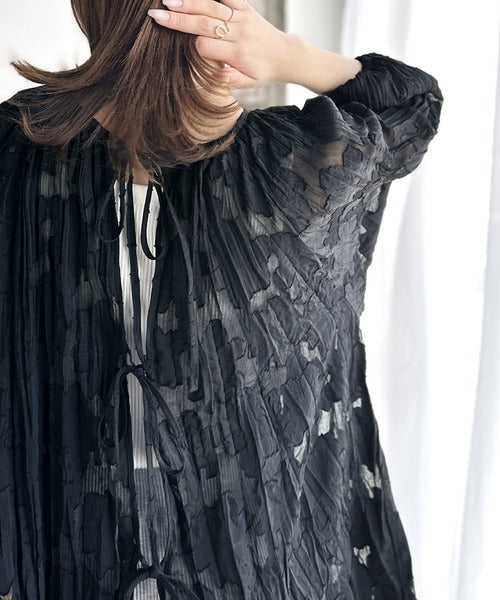 透け感のあるジャガード生地にクリンクル加工を施しております。