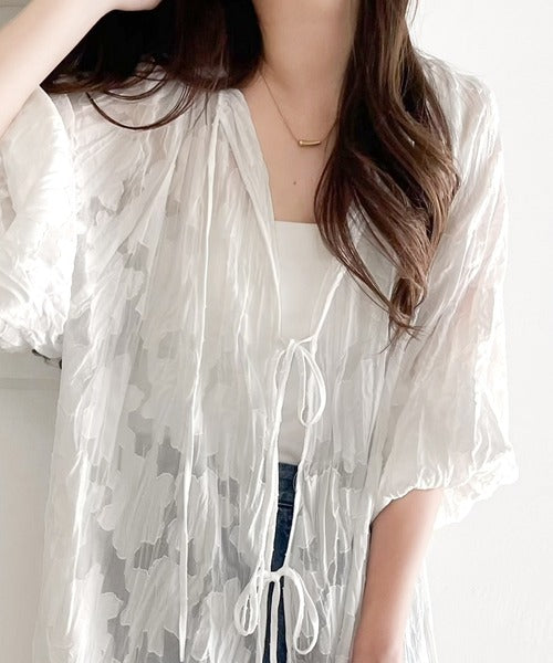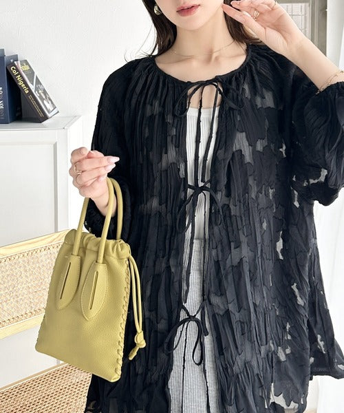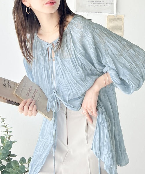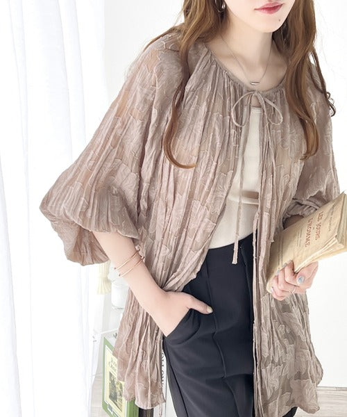 ほどよい透け感の上品トップス。前後2wayボリュームスリーブリボンシアーブラウス ce1260101