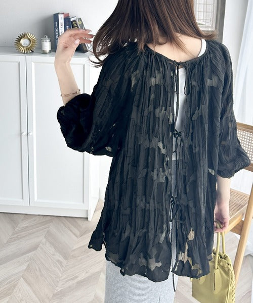 シアー感とボリュームスリーブがエレガントな前後2WAYブラウス。