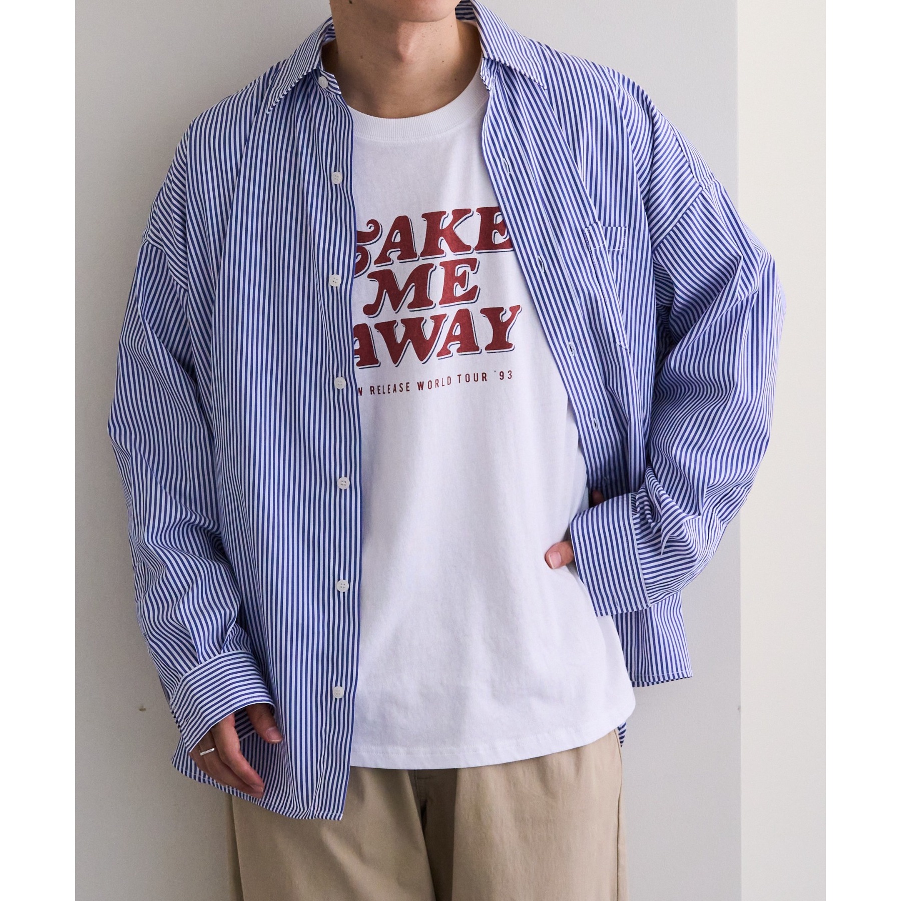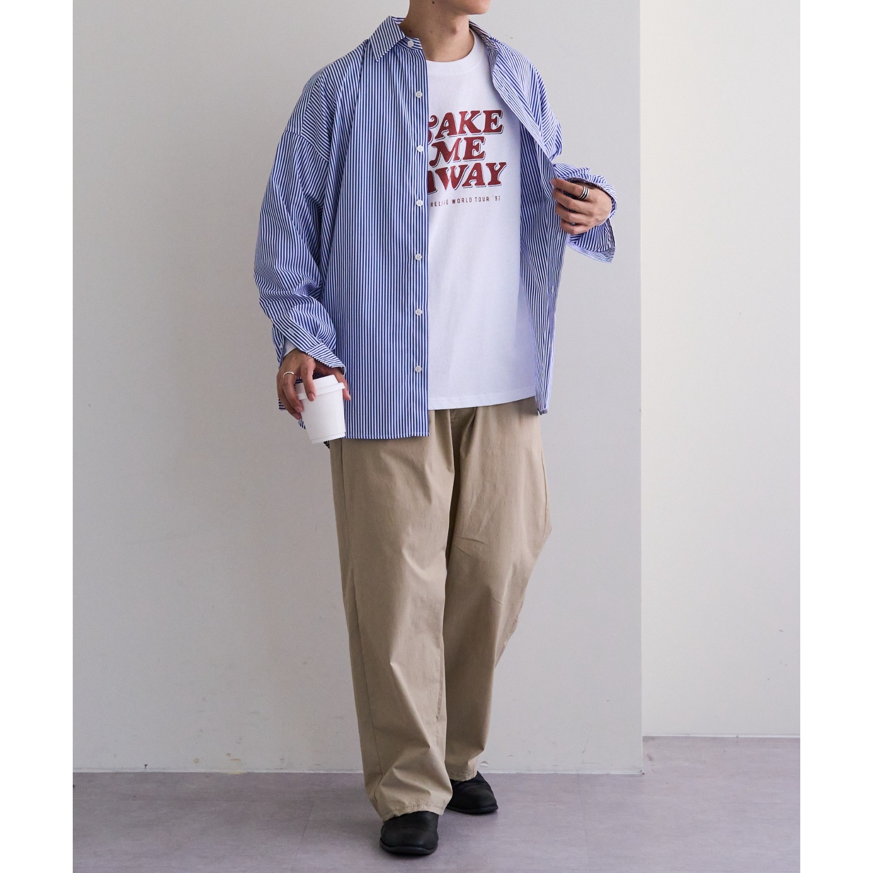 今年らしいビッグシルエットなので、メンズがワイドパンツなどゆったりしたパンツを合わせてストリートに、スウェットを合わせてよりカジュアルダウンさせるのもおすすめ。