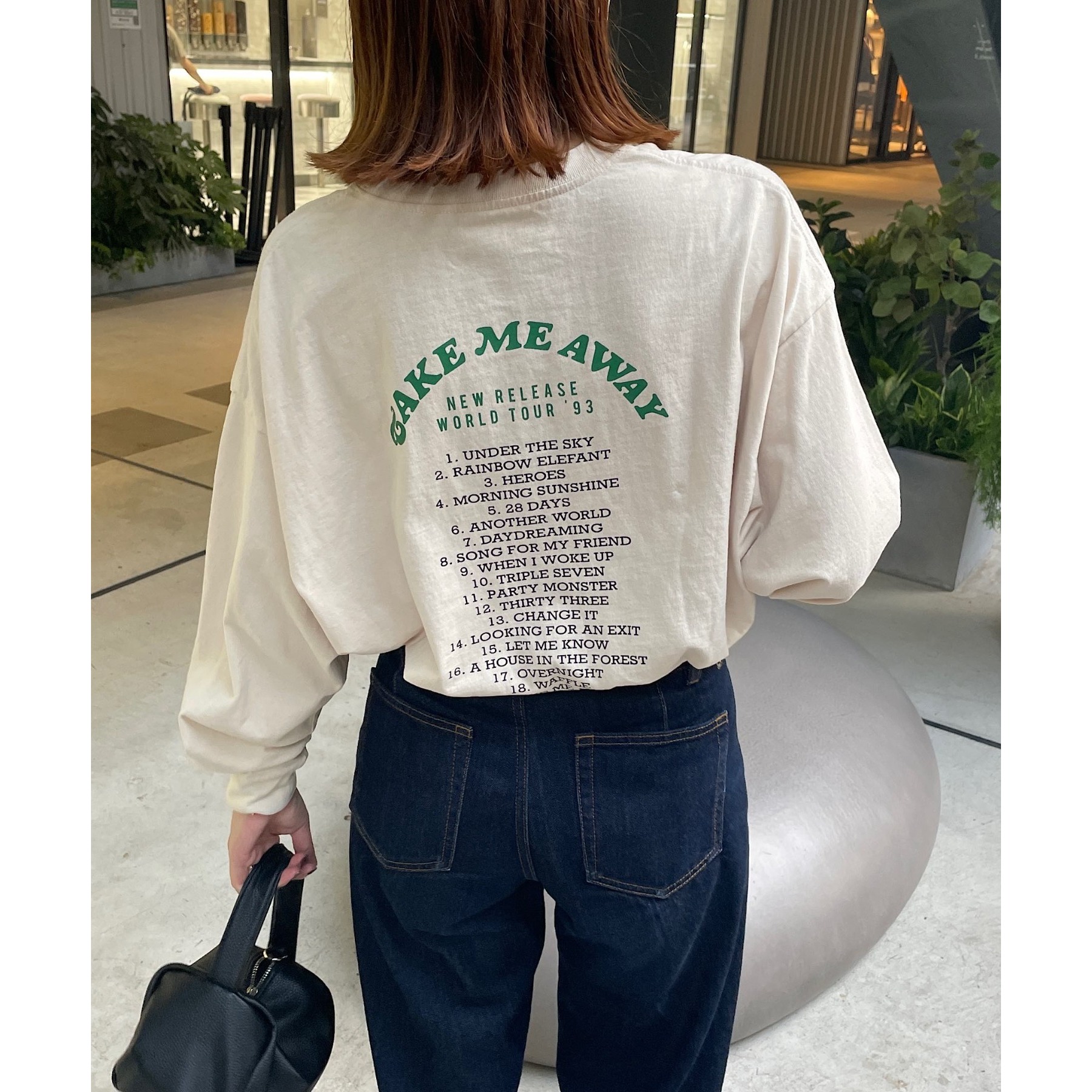 どんなコーディネートにも合わせやすい、ツアーロゴロングTシャツ。