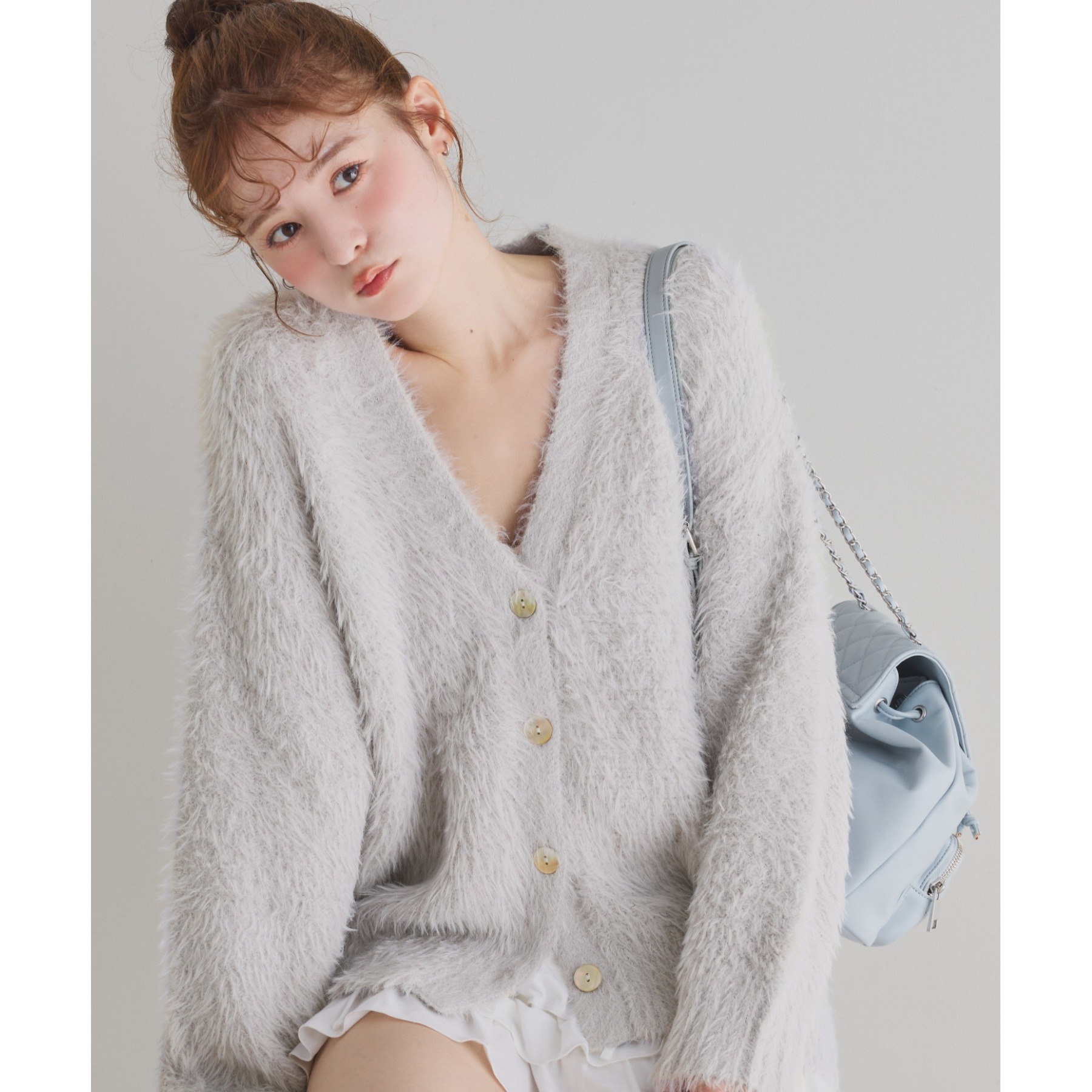 柔らかい毛足のフェザーを使ったナイスクラップらしいニットカーディガンです。
