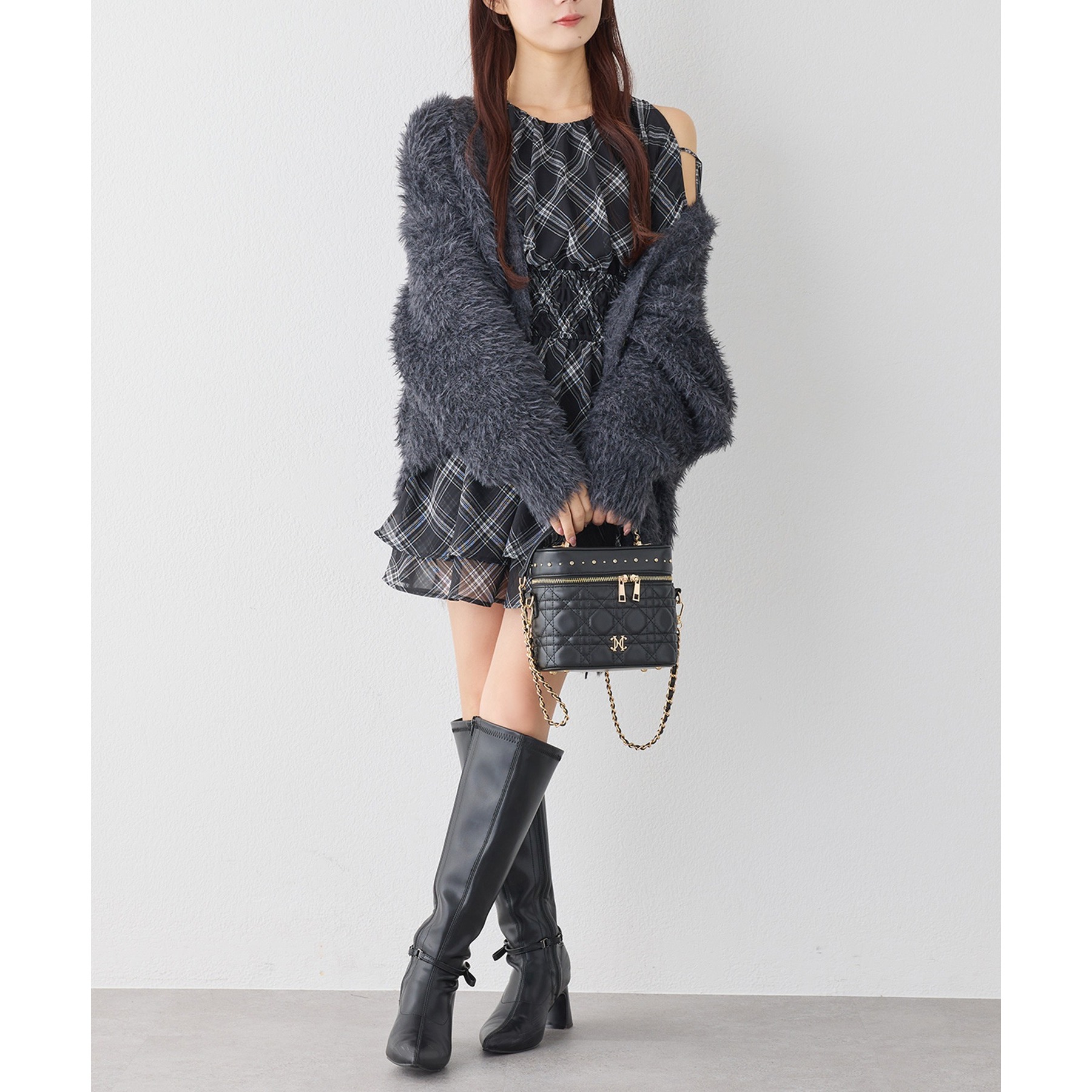 足元はショートブーツ、ロングブーツと合わせたスタイリングがおすすめ。