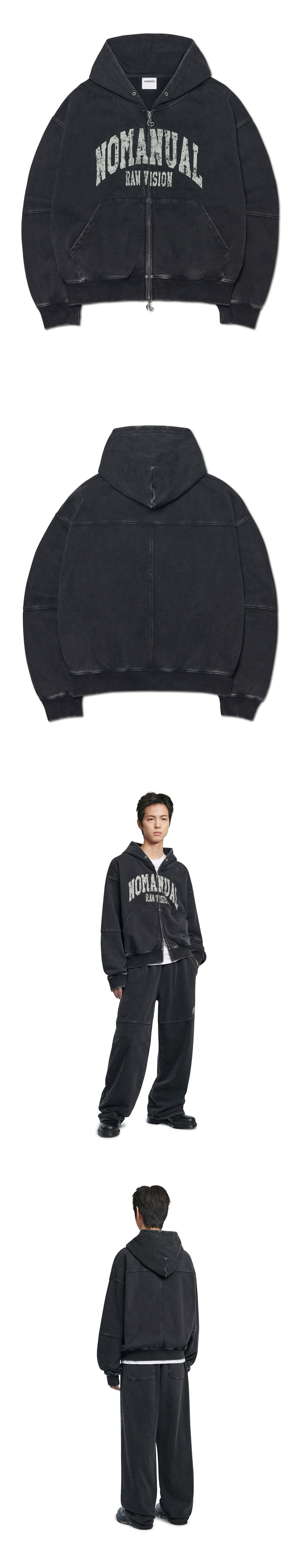 C.A VINTAGE HOODED ZIP-UP - WASHED BLACK