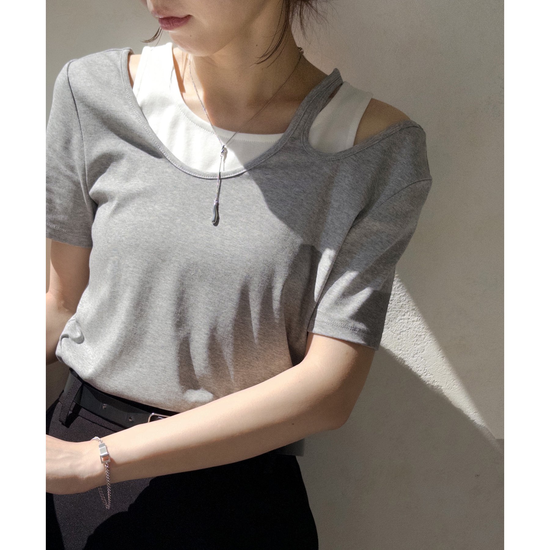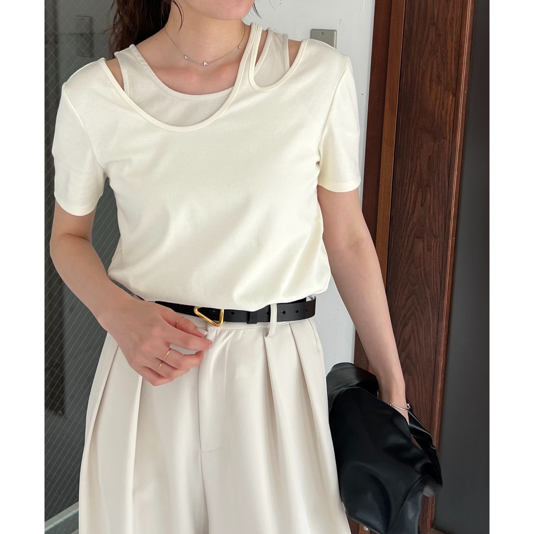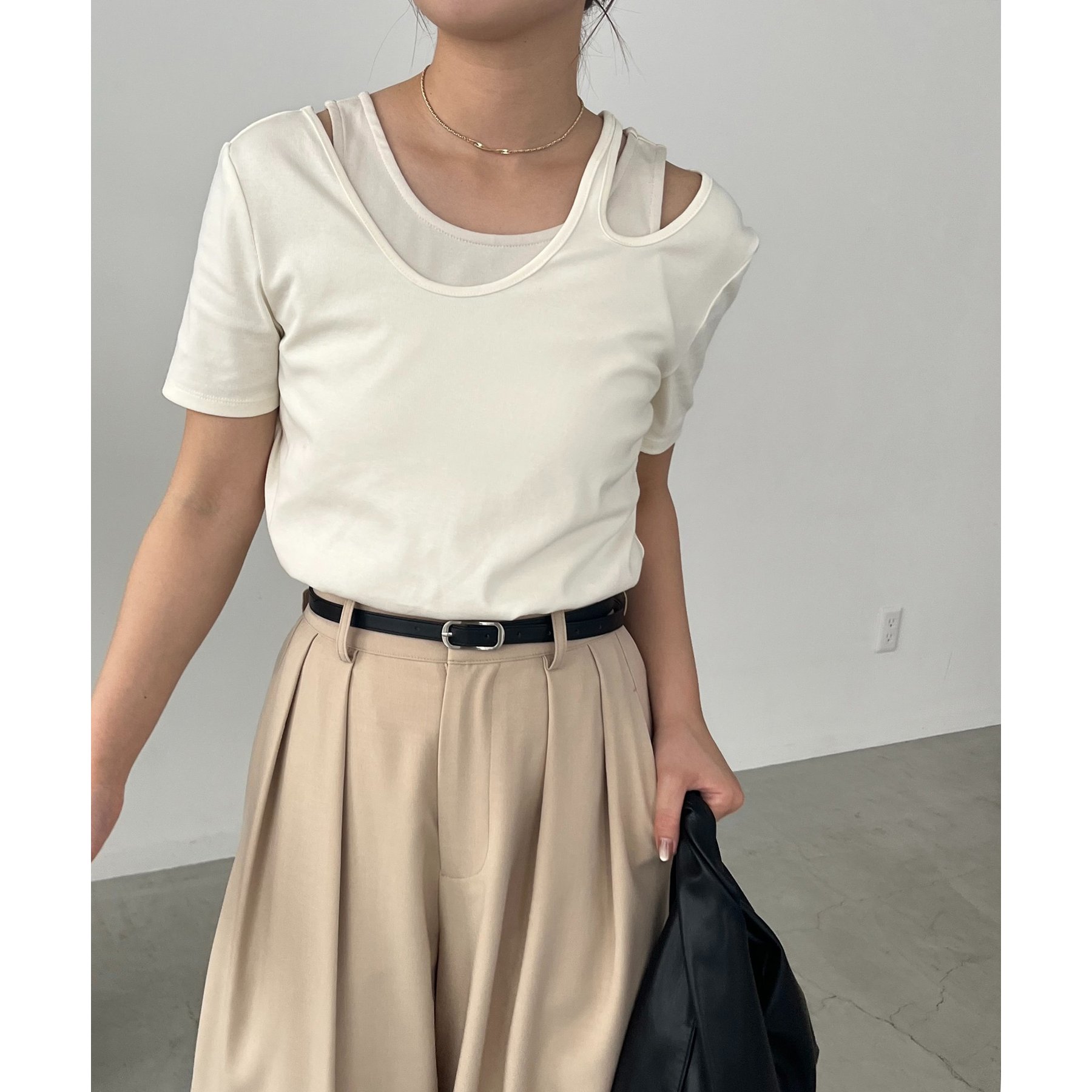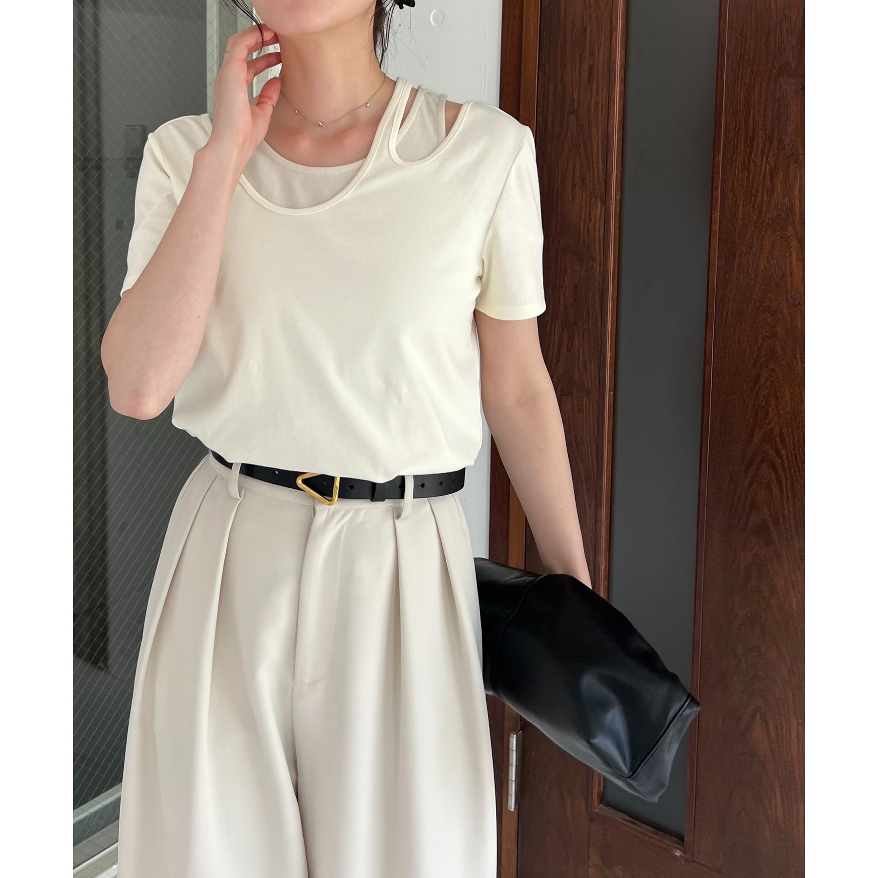 【1枚で着映え】レイヤードアシメネックTシャツ