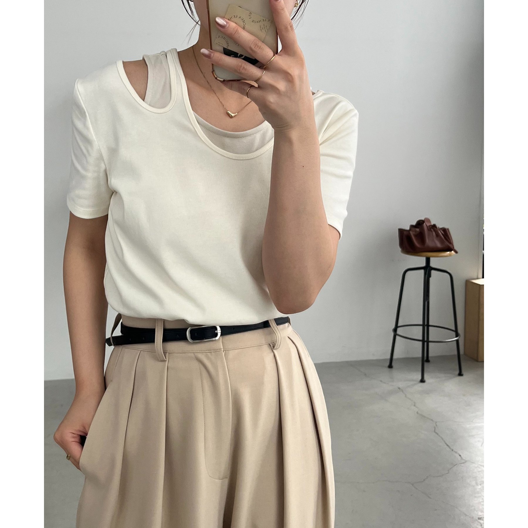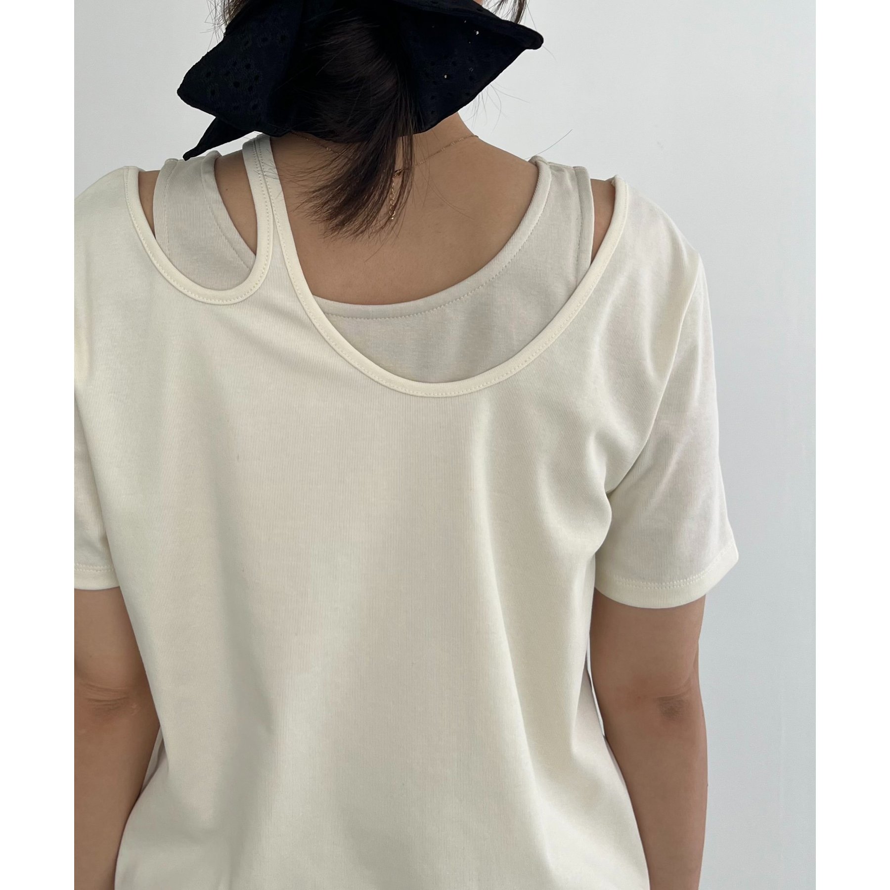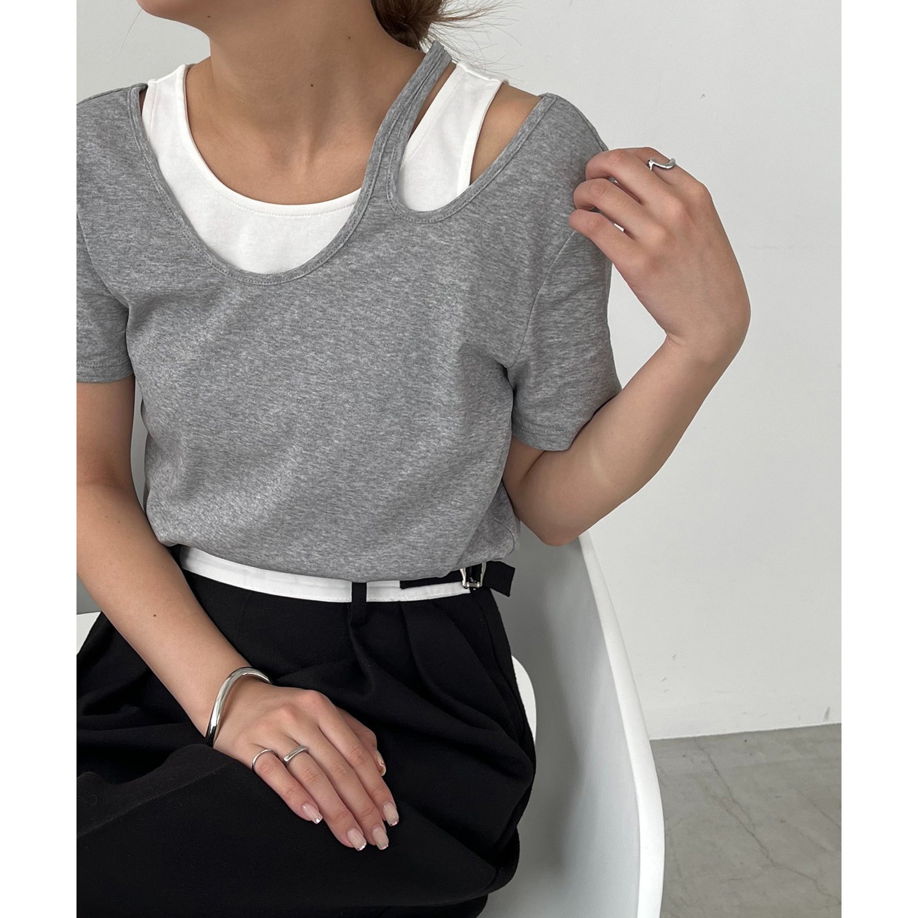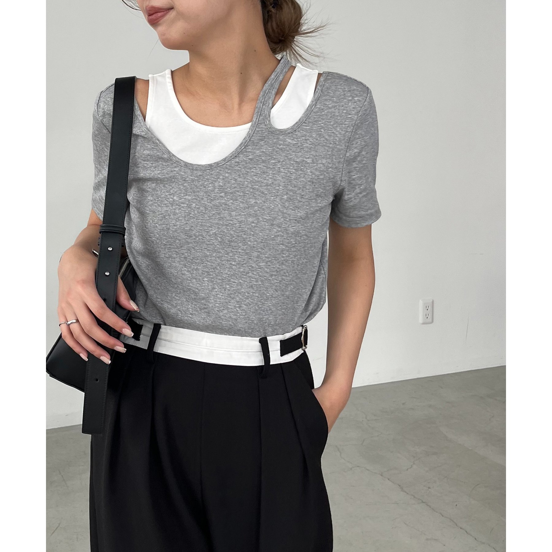 【1枚で着映え】レイヤードアシメネックTシャツ