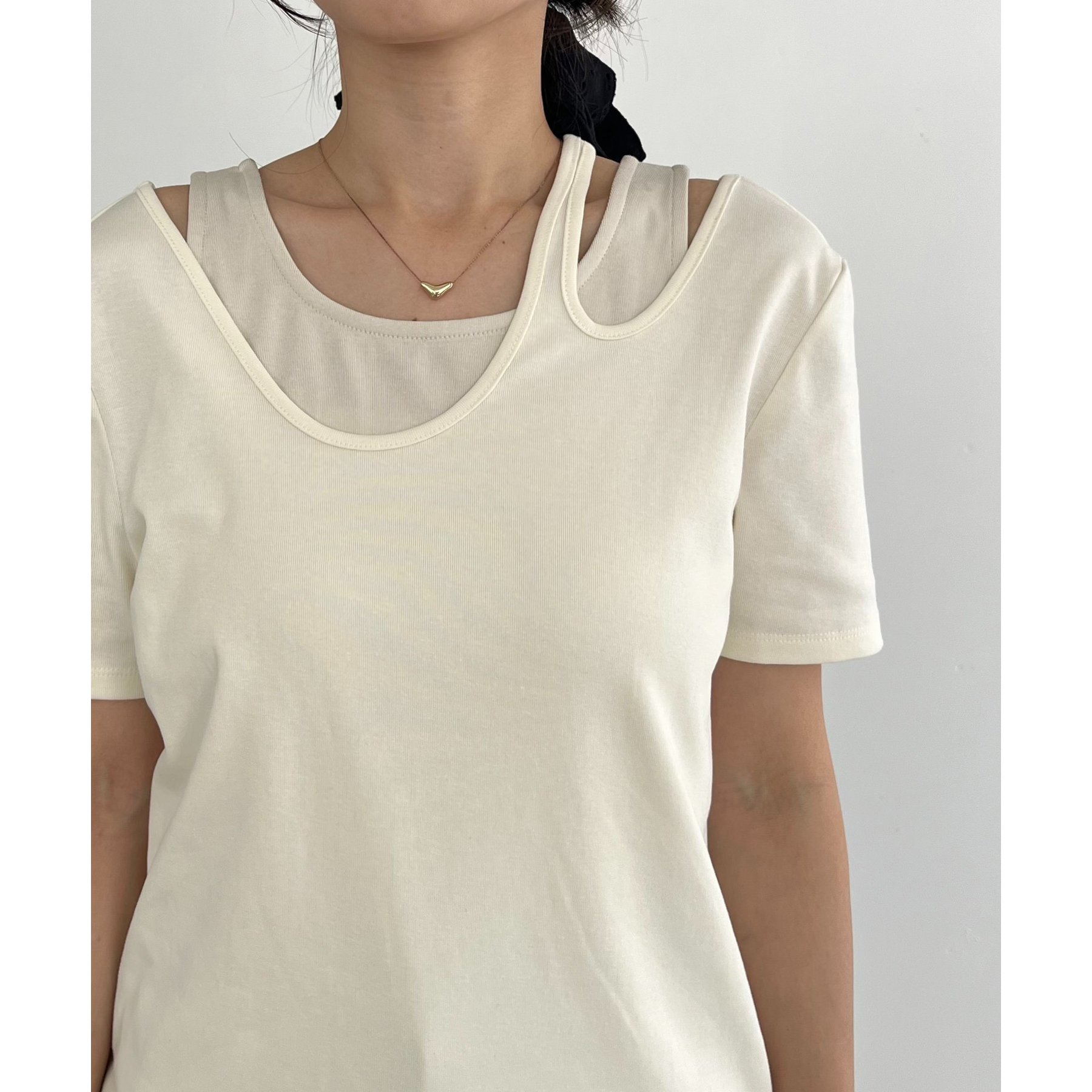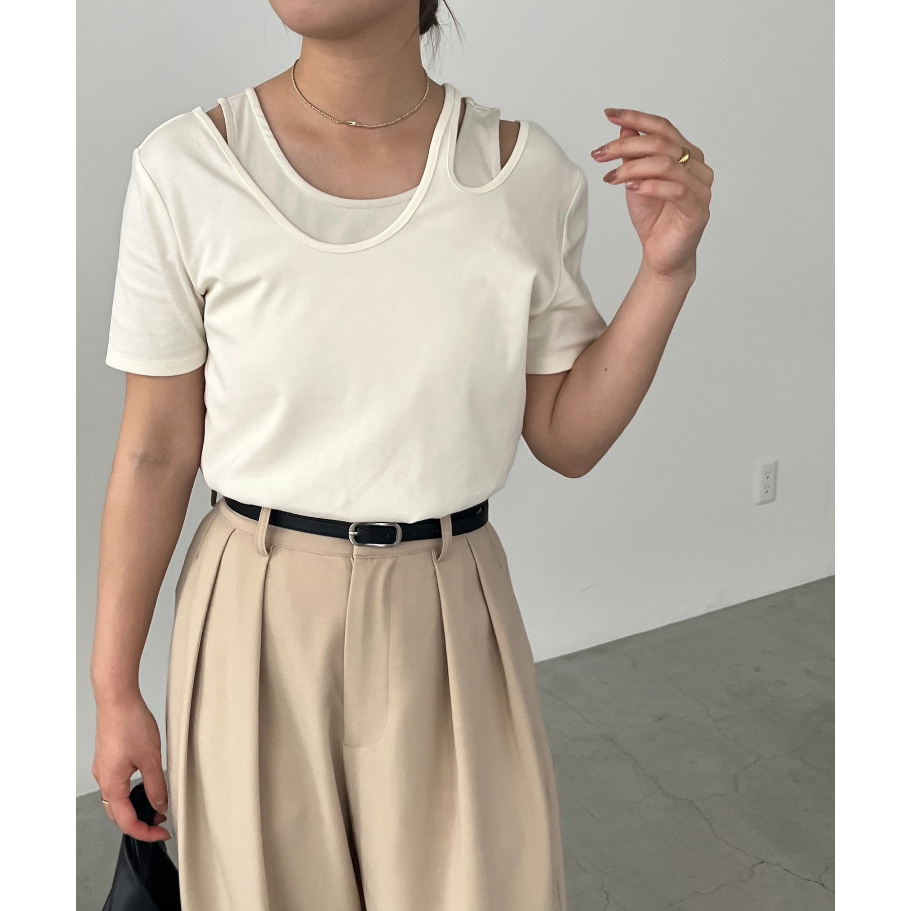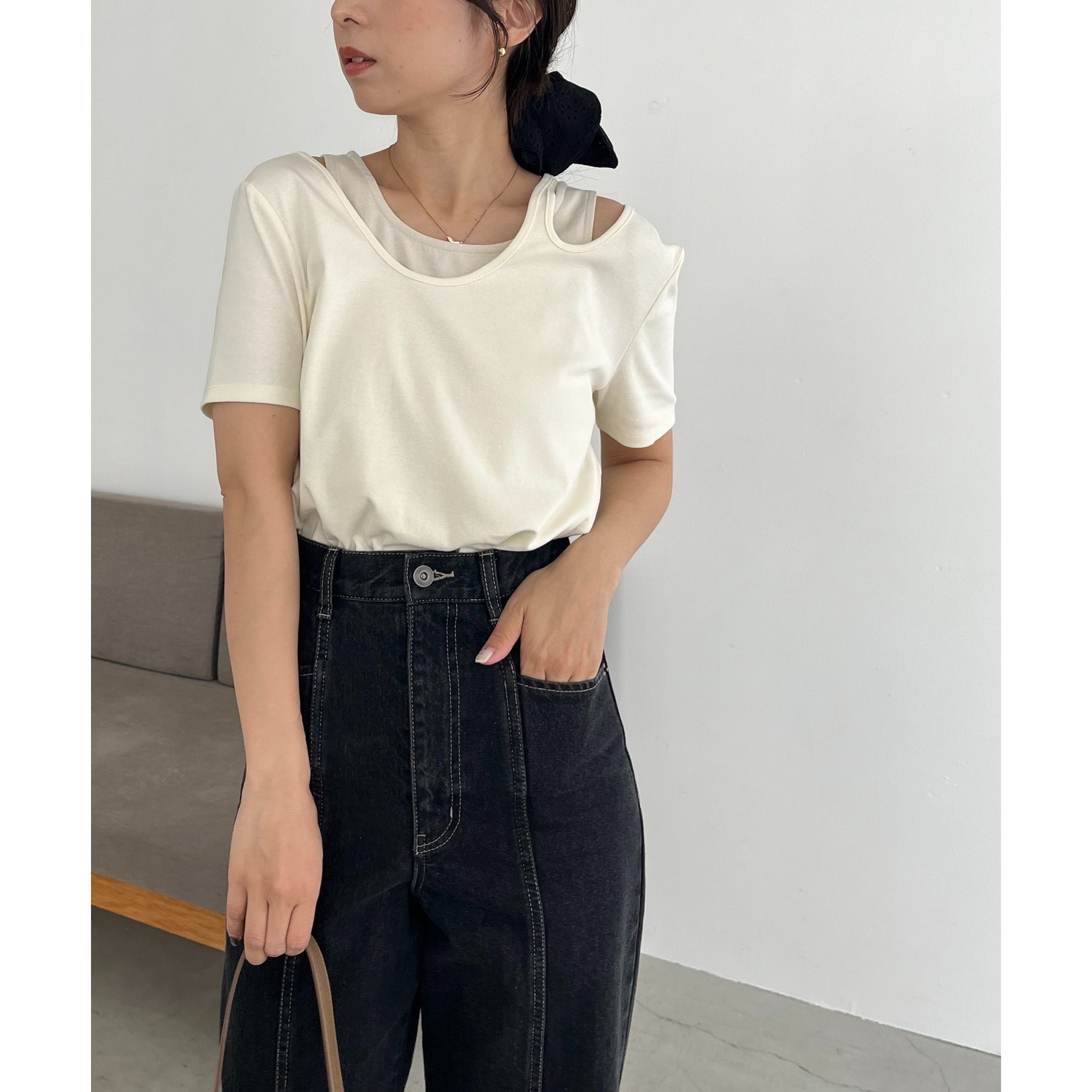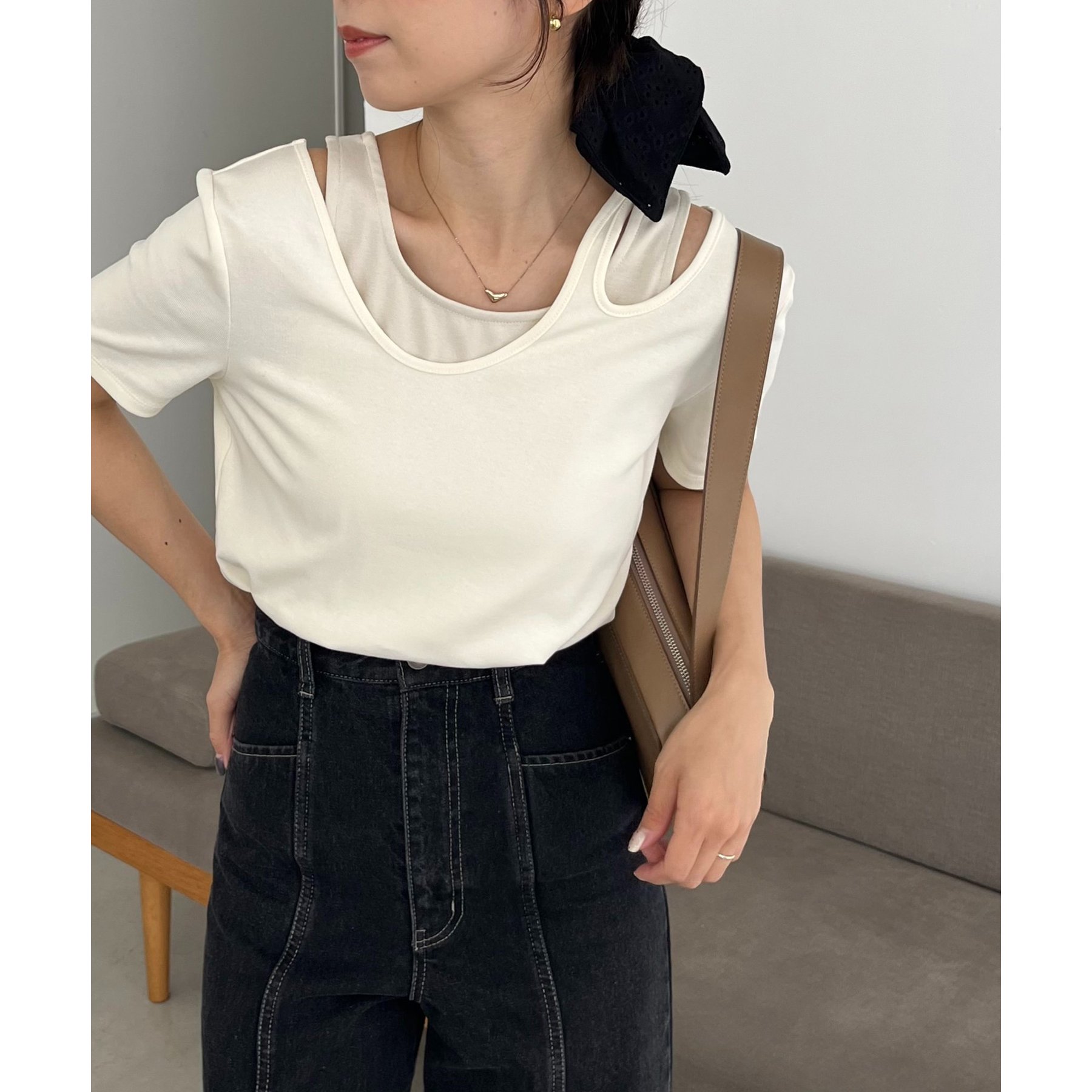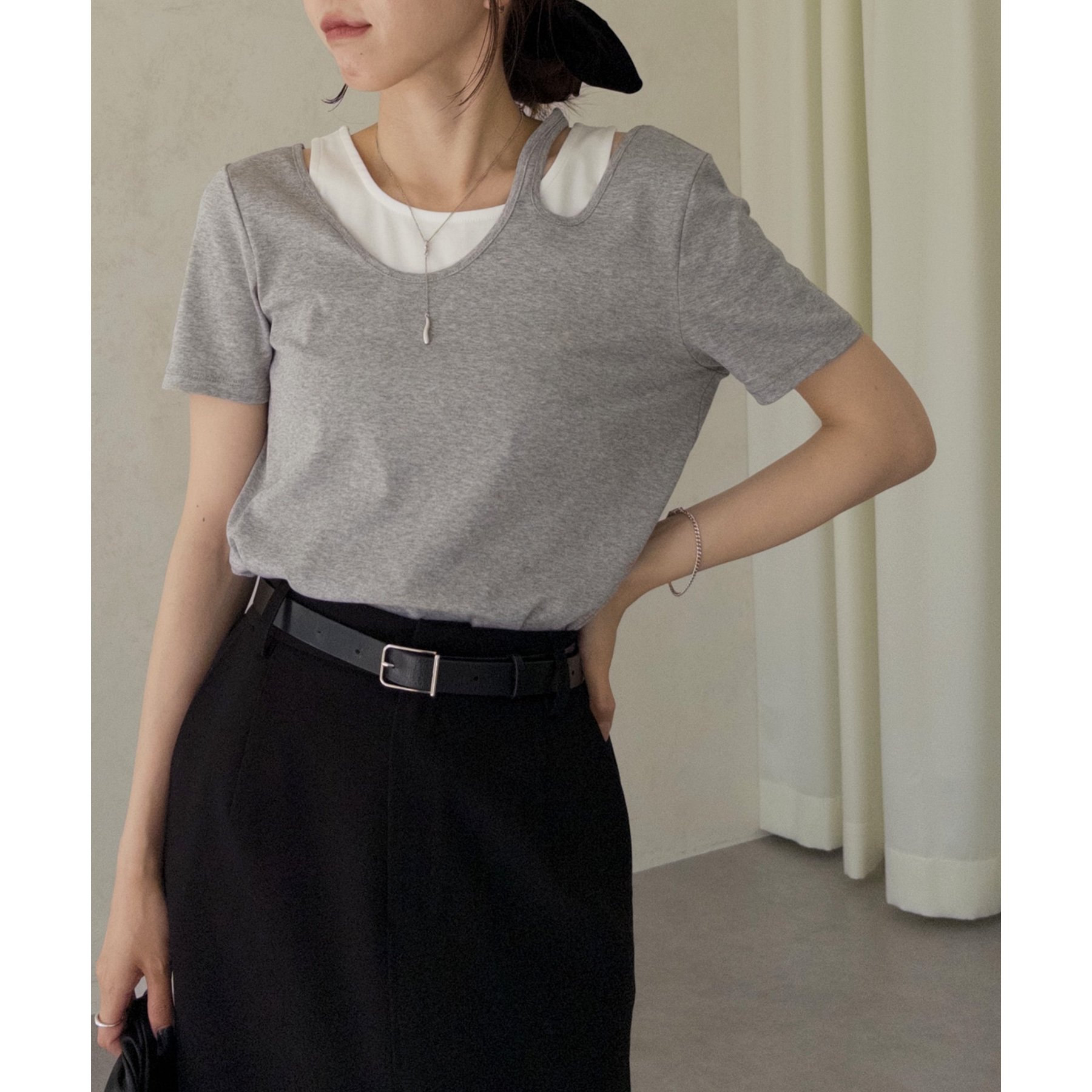 【1枚で着映え】レイヤードアシメネックTシャツ