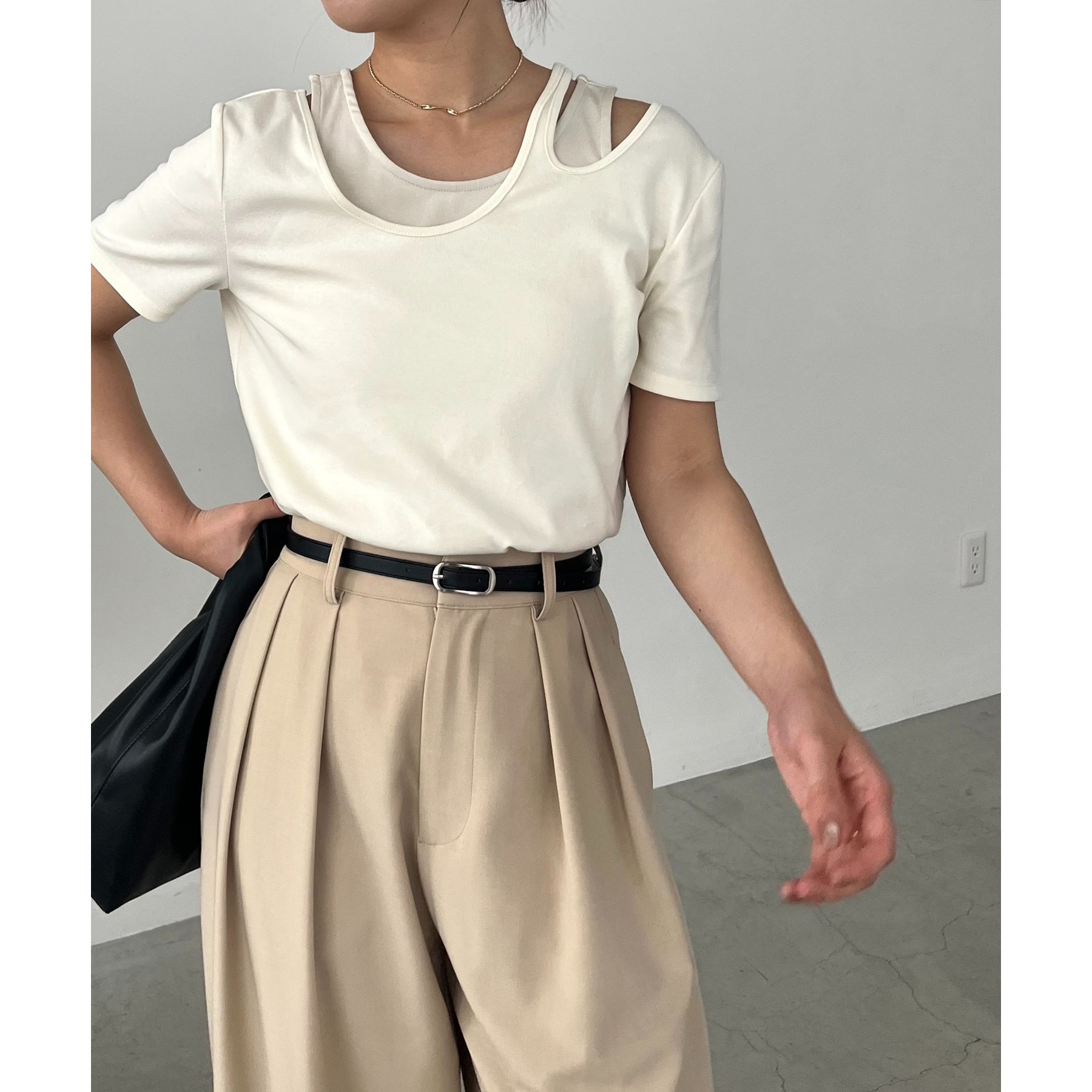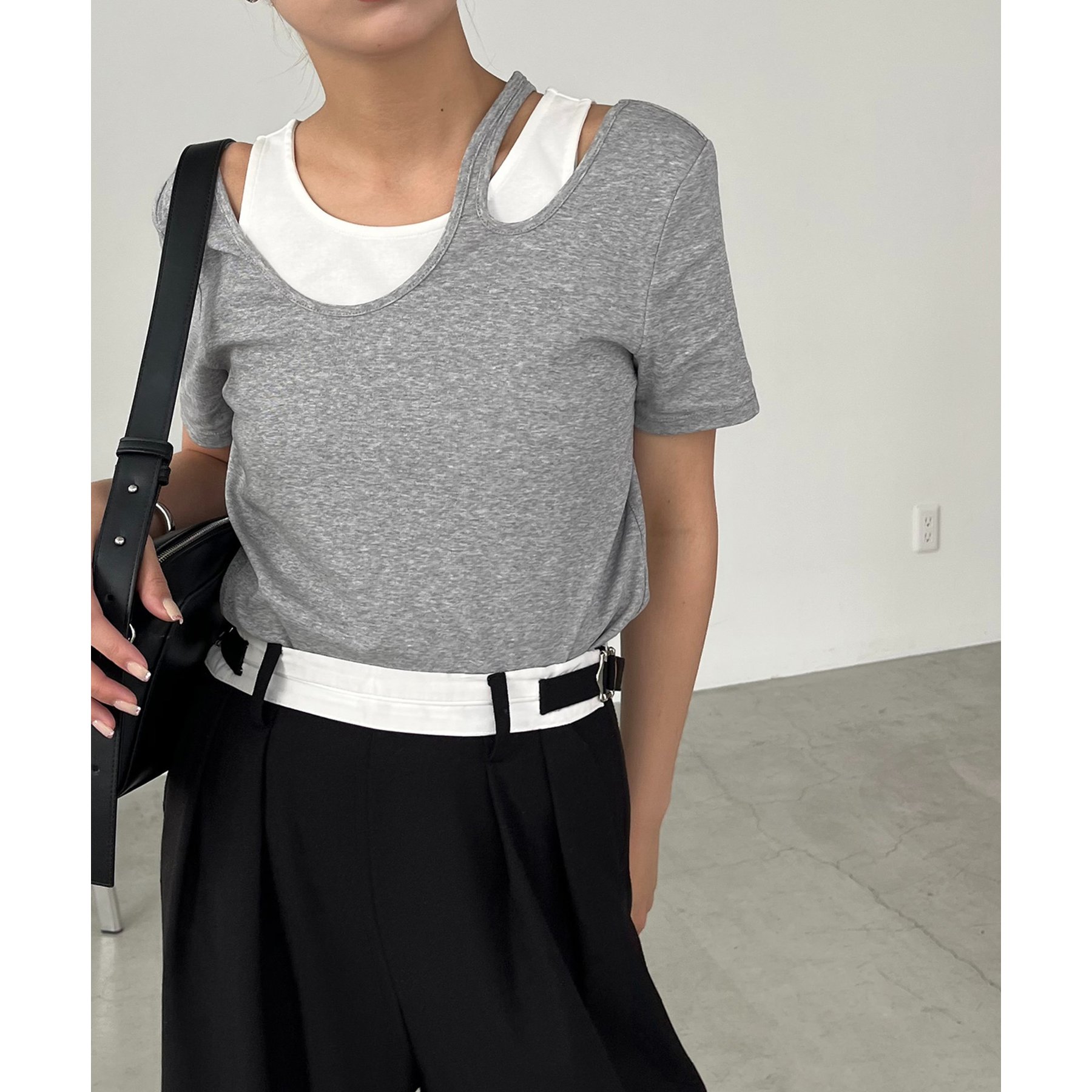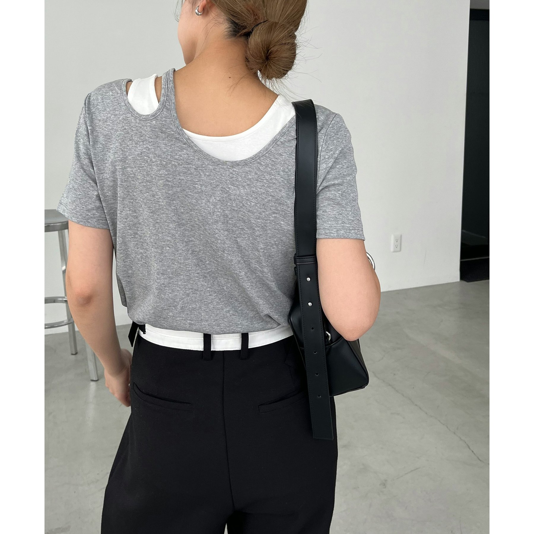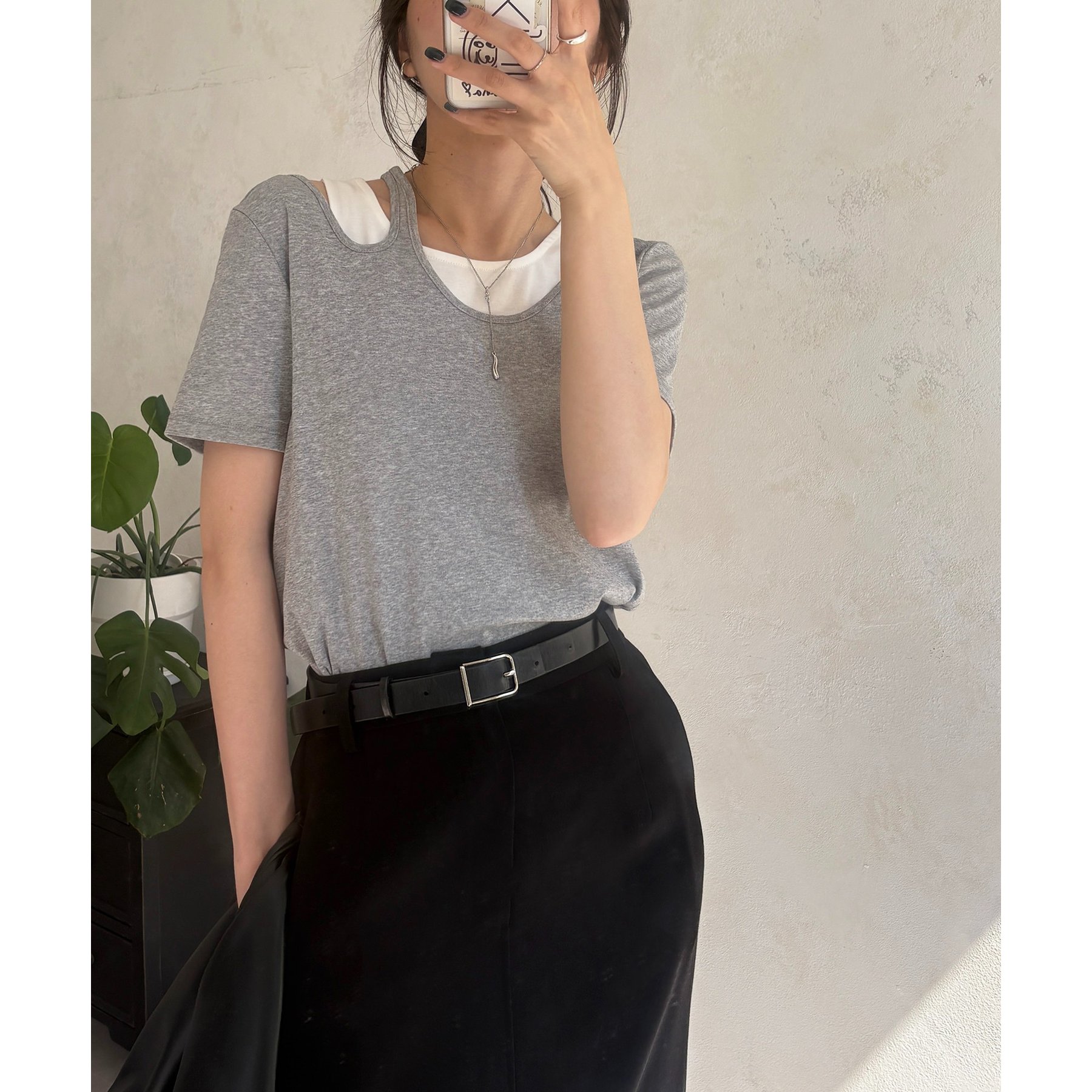 【1枚で着映え】レイヤードアシメネックTシャツ