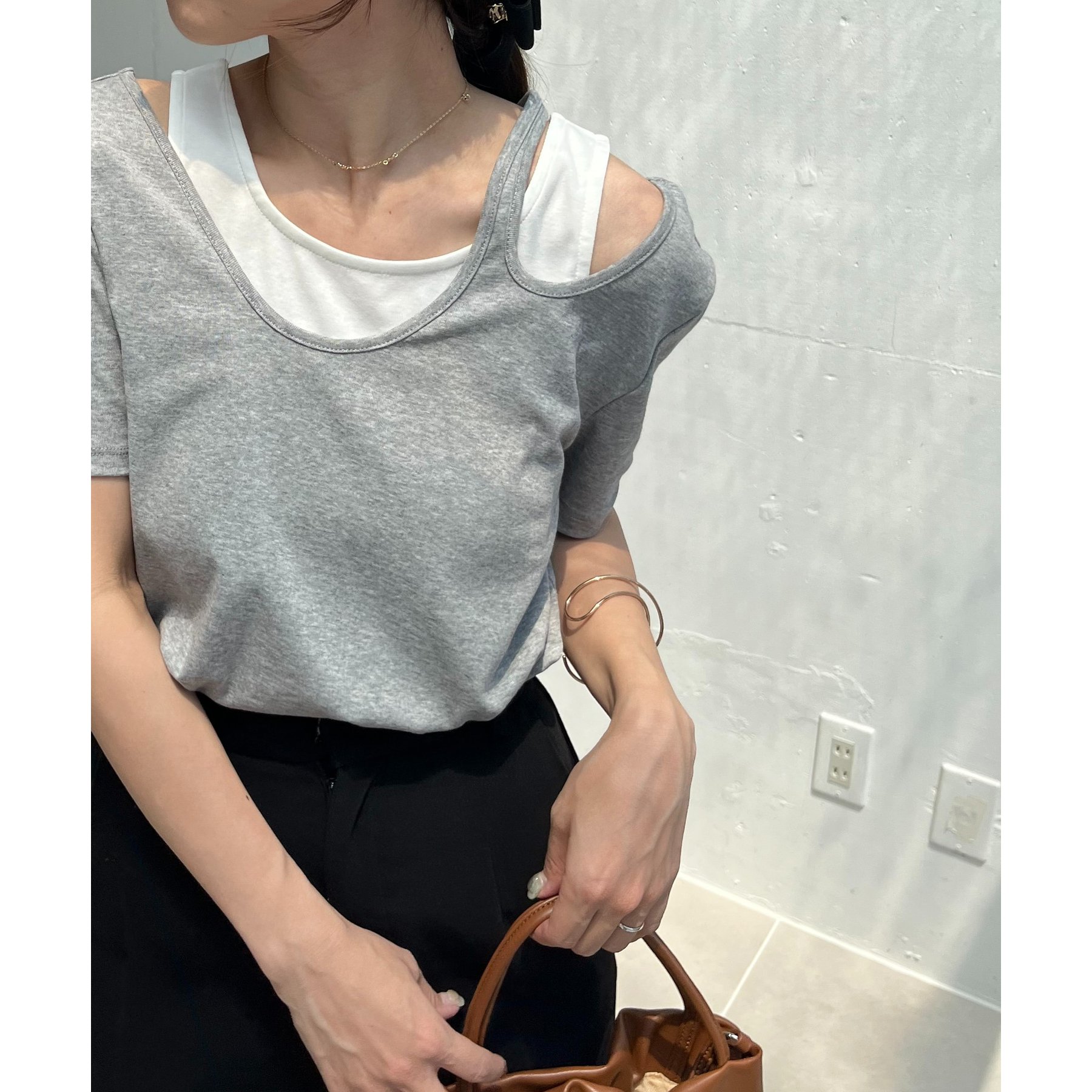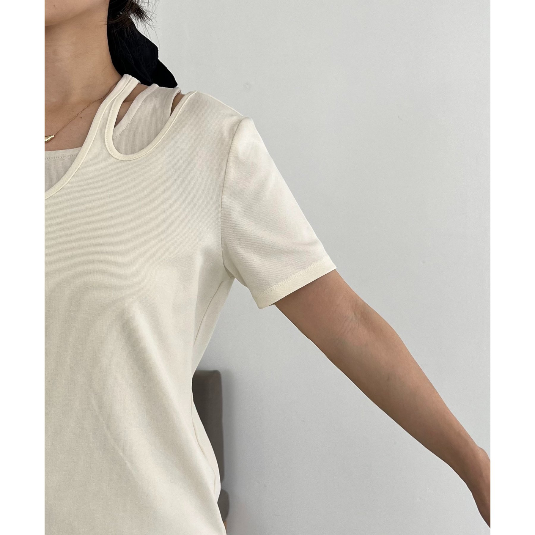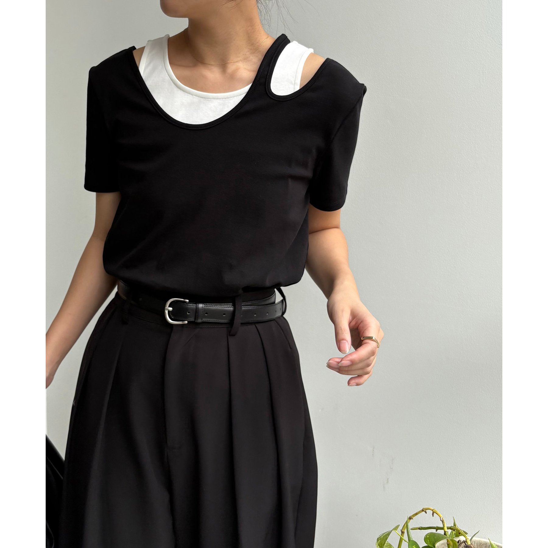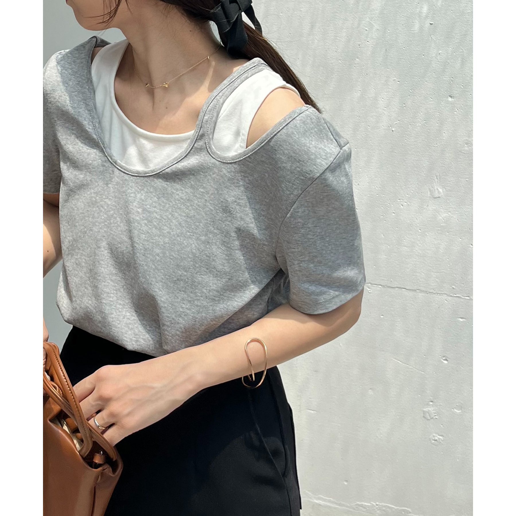 【1枚で着映え】レイヤードアシメネックTシャツ