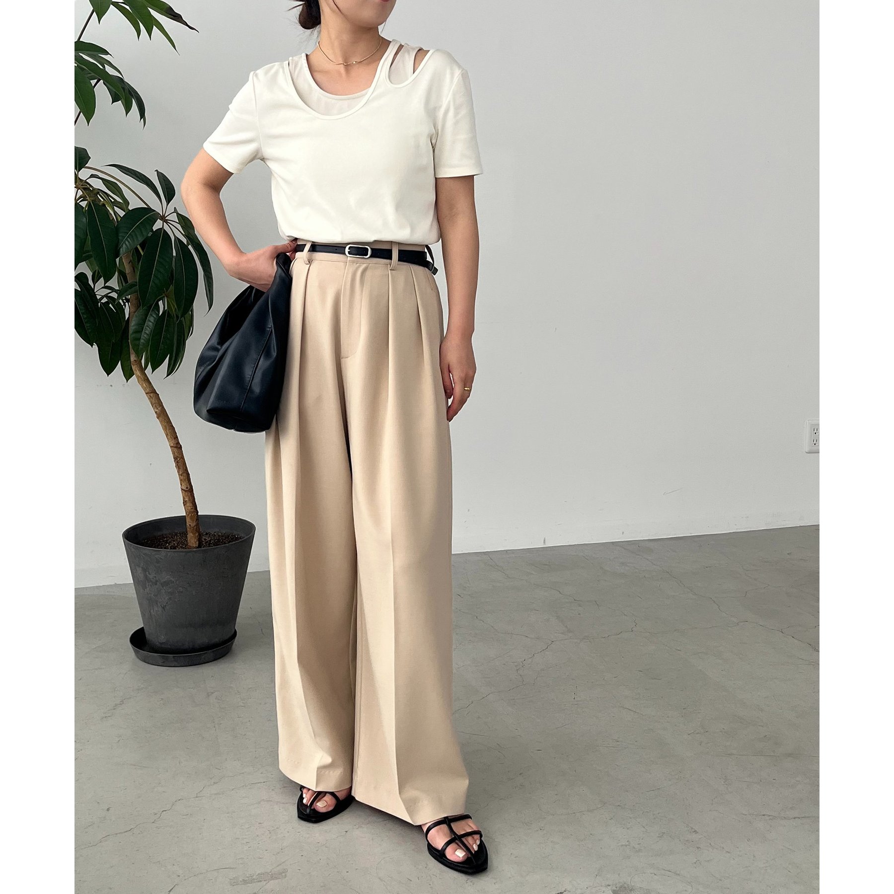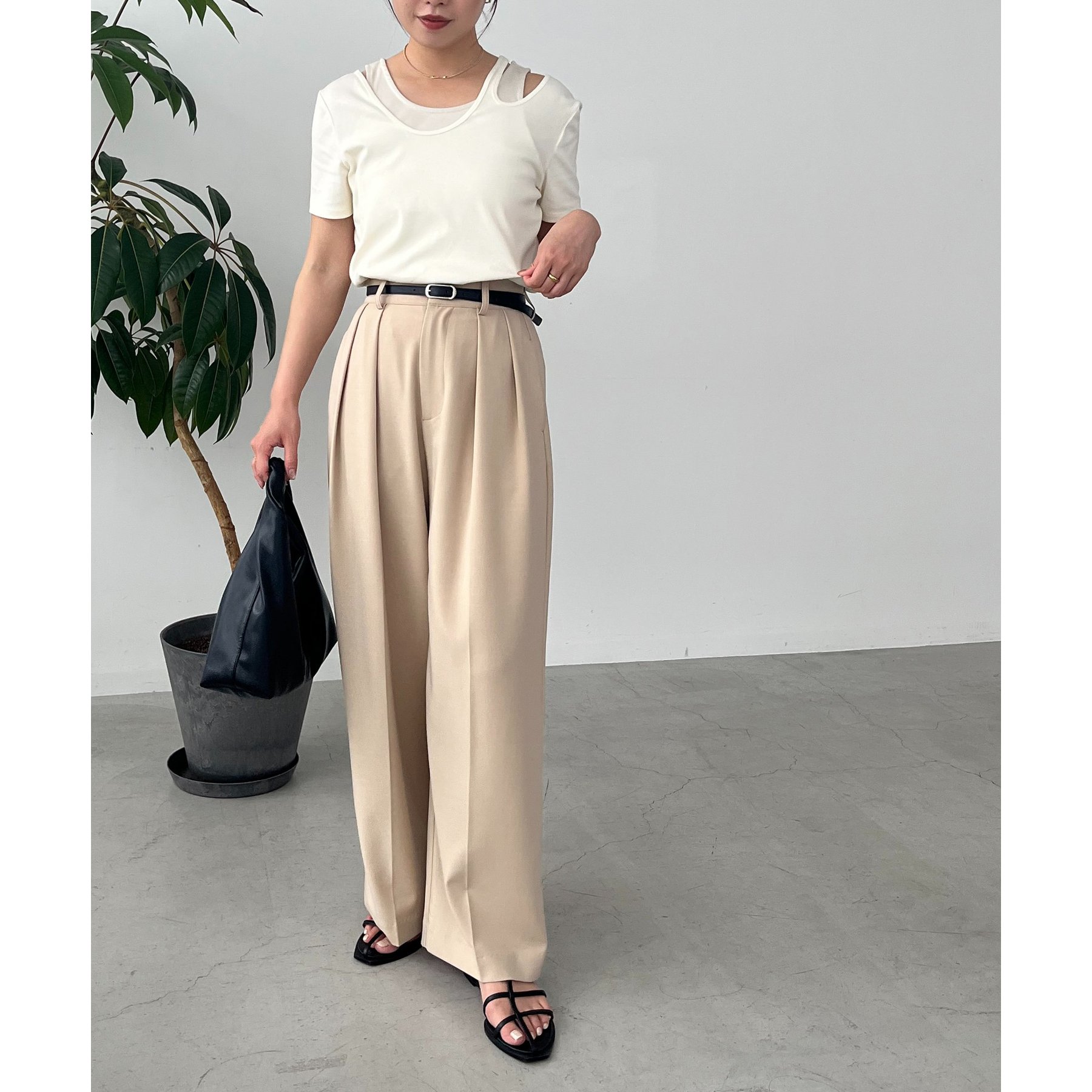 【ベージュ着用アイテム①③】2タックワイドパンツ