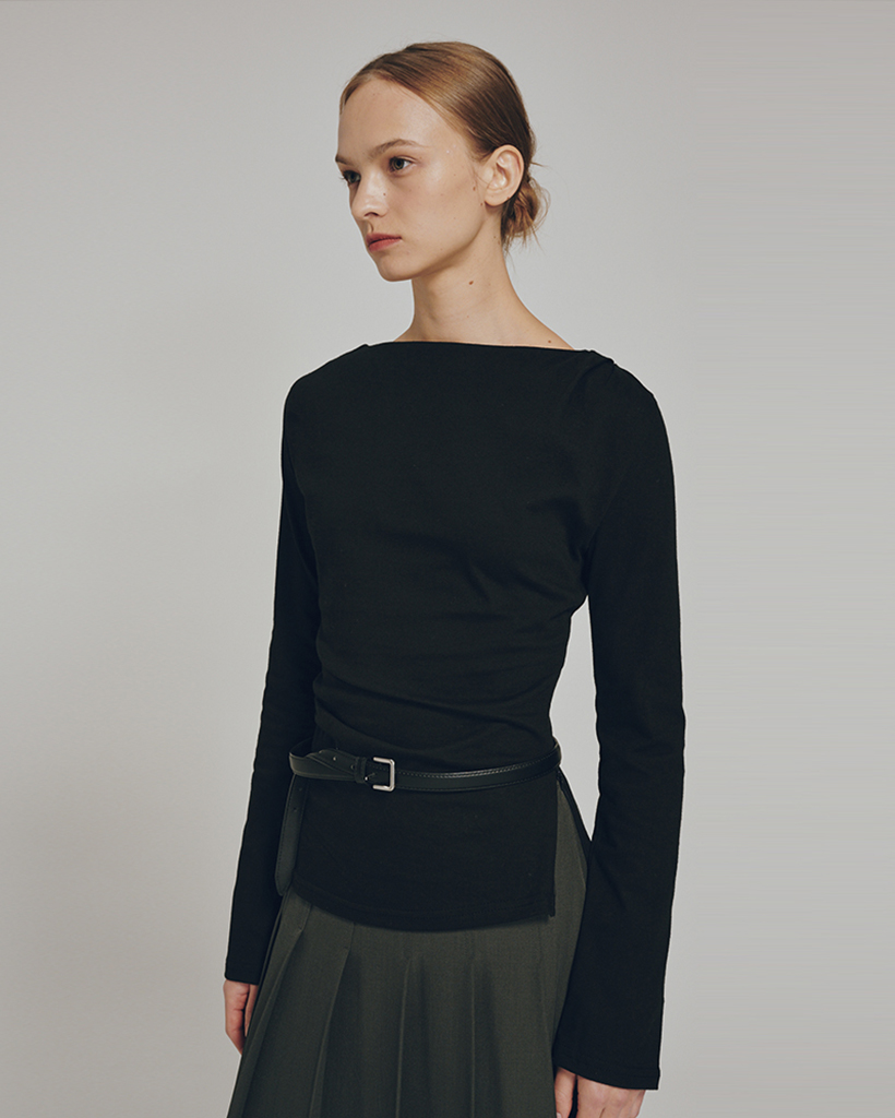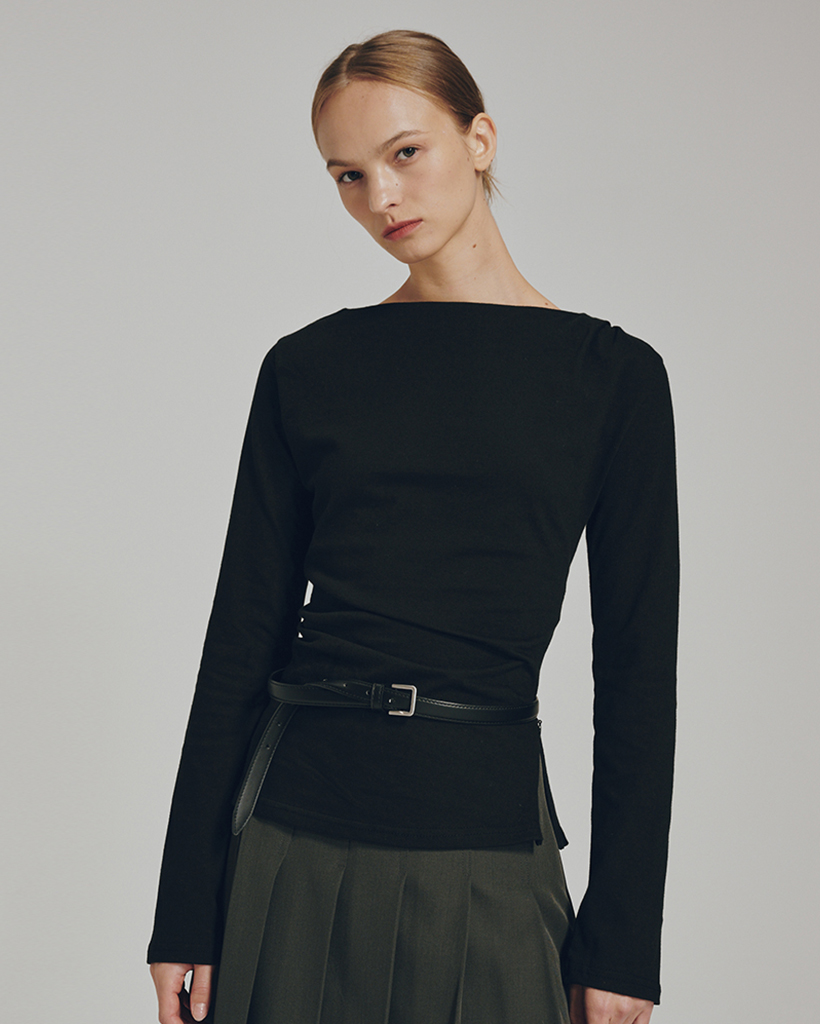 Boatneck Drape T-shirts - Black