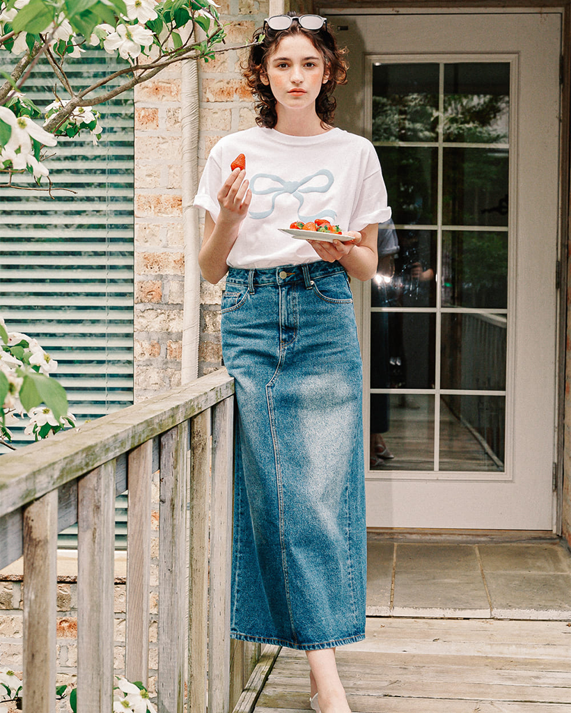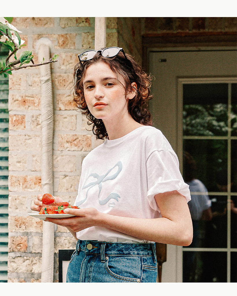 EMBO HEART RIBBON BASIC FIT T SHIRT WHITE BLUE