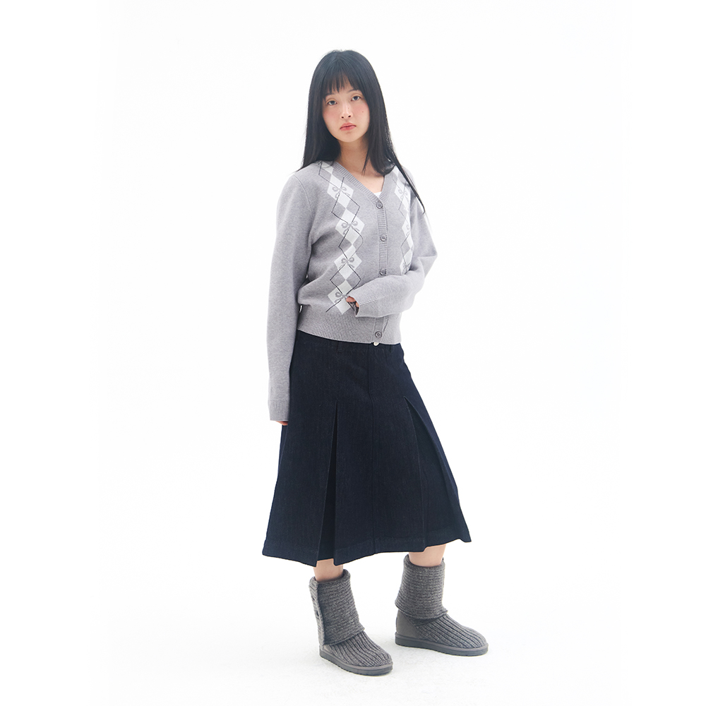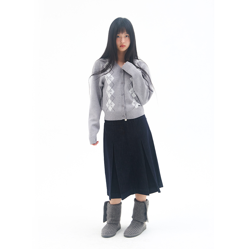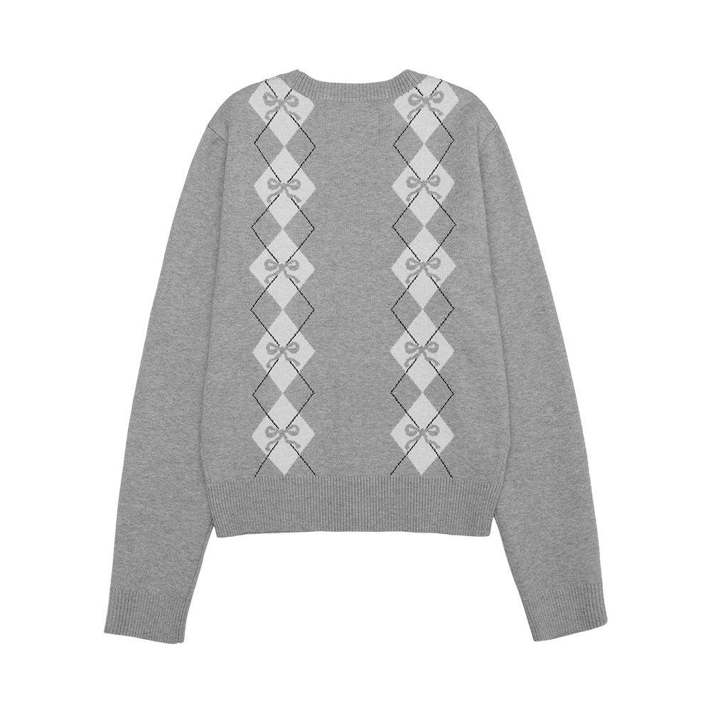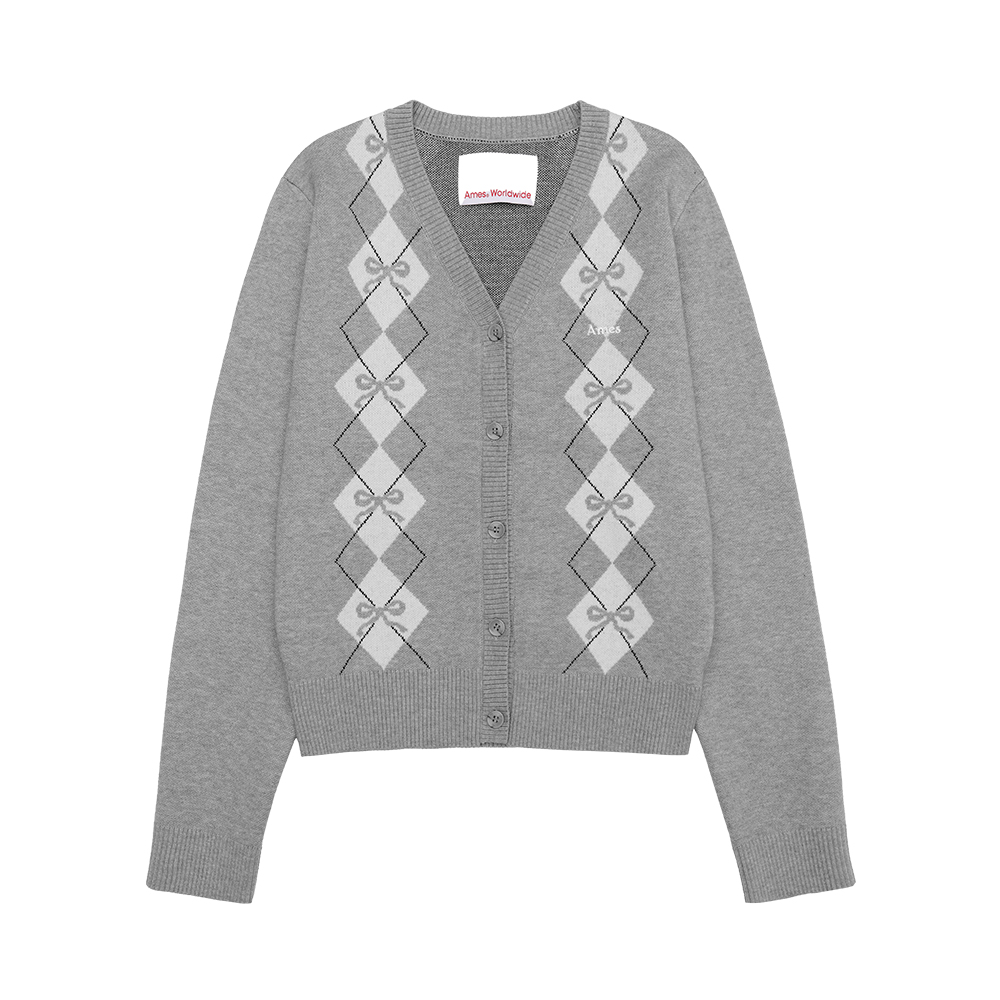 CROP V NECK ARGYLE CARDIGAN GREY