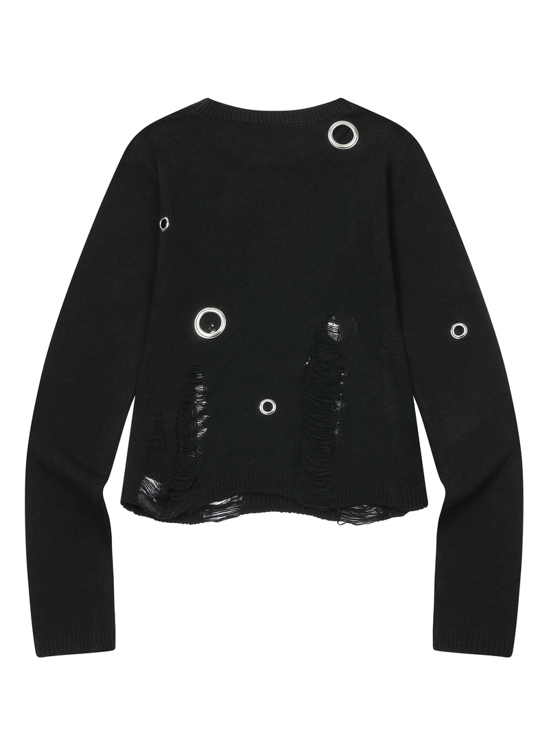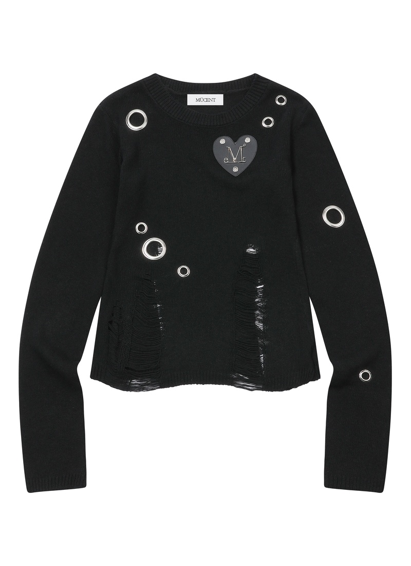 WAGON METAL LOGO HEART PATH EYELET DAMAGE KNIT