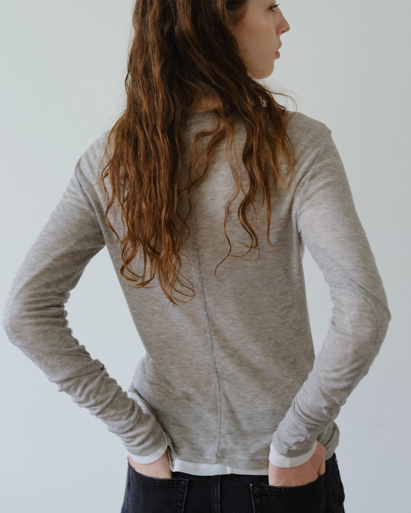 -リヨセル×ウール混紡糸で編み立てたレイヤードTシャツ