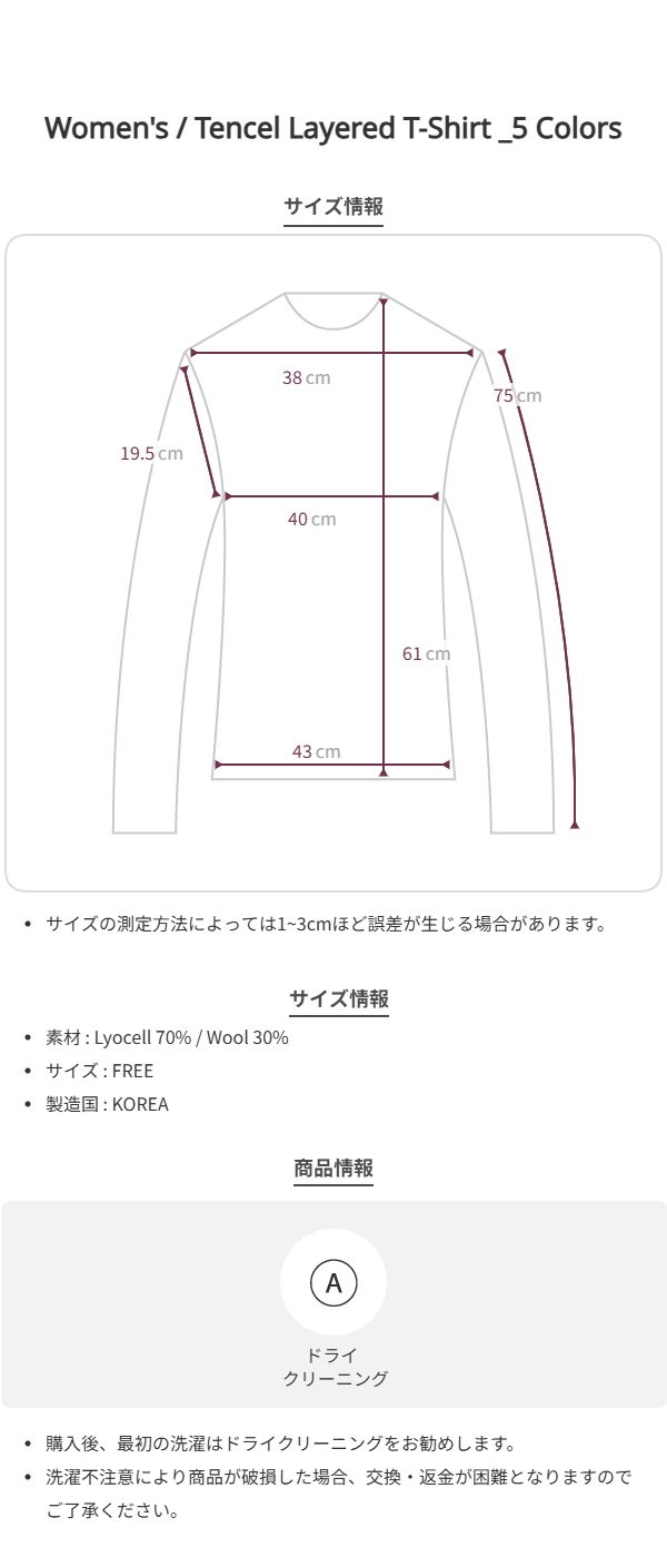- 豊富なカラーバリエーションで多彩なレイヤードスタイルが可能