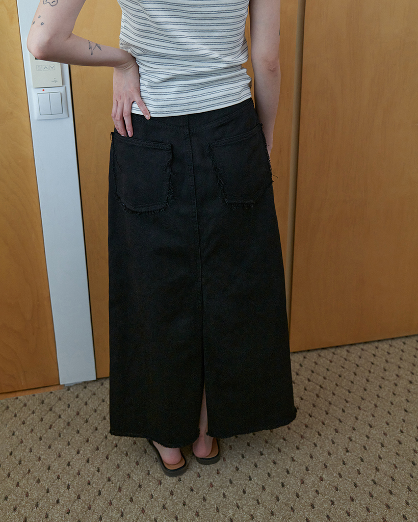 Raw edge A-line denim skirt_BLACK