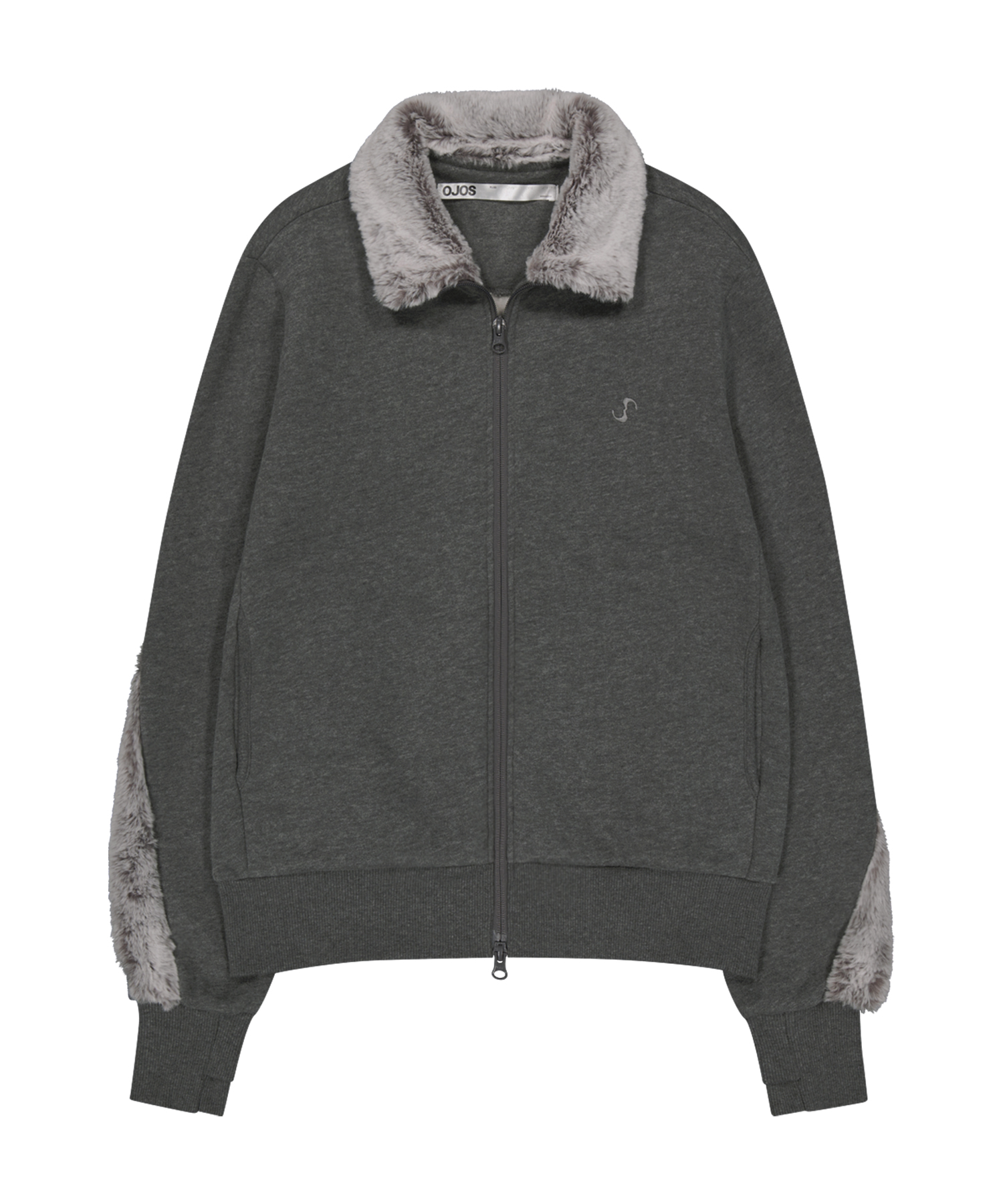 ファーのディテールと暖かい起毛裏地付きジャージジップアップ